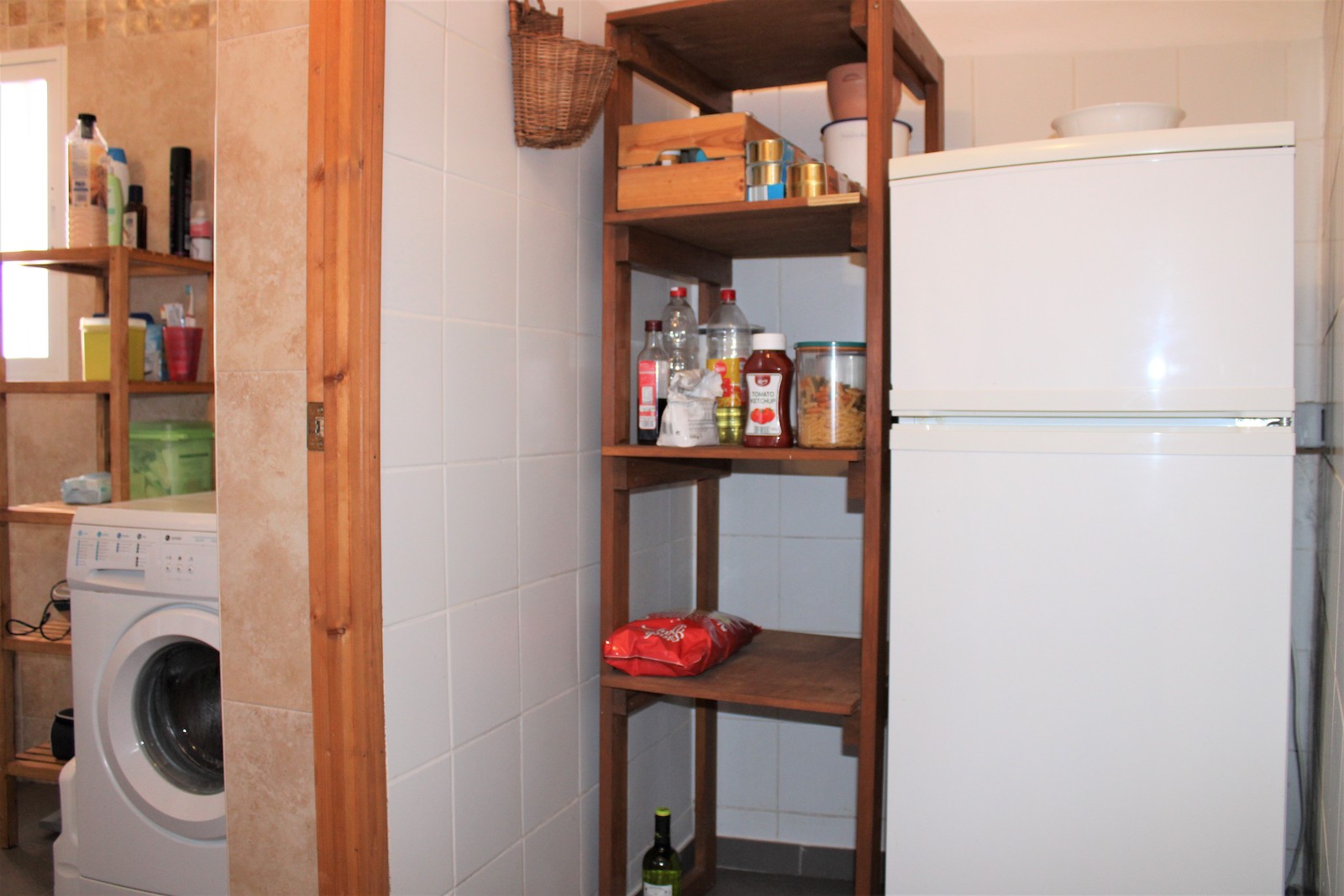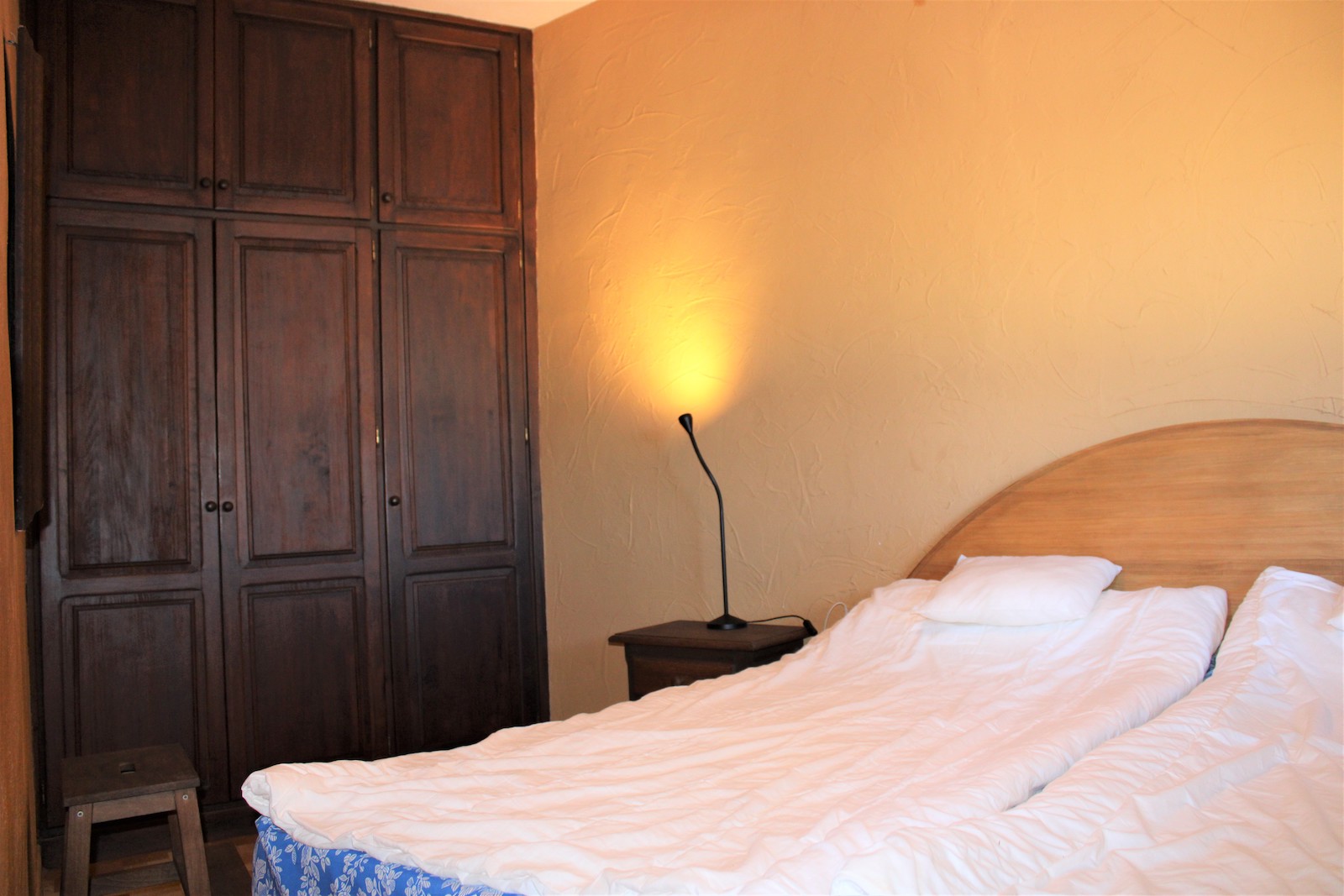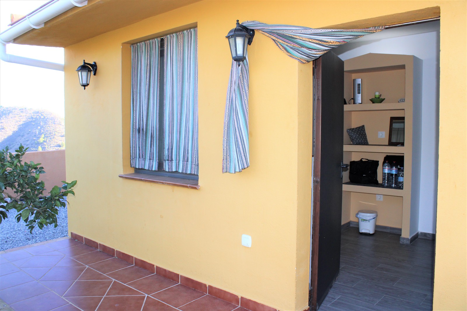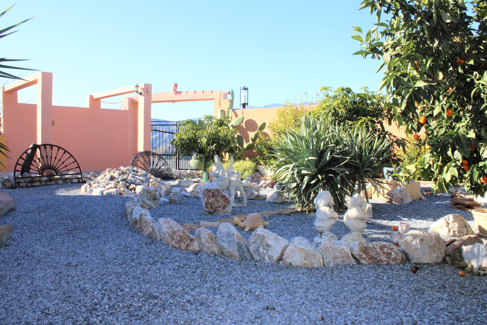 Vi går nerför trappan och hittar den första av två, välskötta fruktträdgårdar. Här ligger det andra boendet, med ett sovrum och ett badrum med dusch. Ni hittar även en stor källare med stora möjligheter och förvaringsutrymmen, här har ägaren påbörjat en spa-avdelning. Väl ute ur källaren, går vi ned en trappa till och hittar där den andra välskötta fruktträdgården.