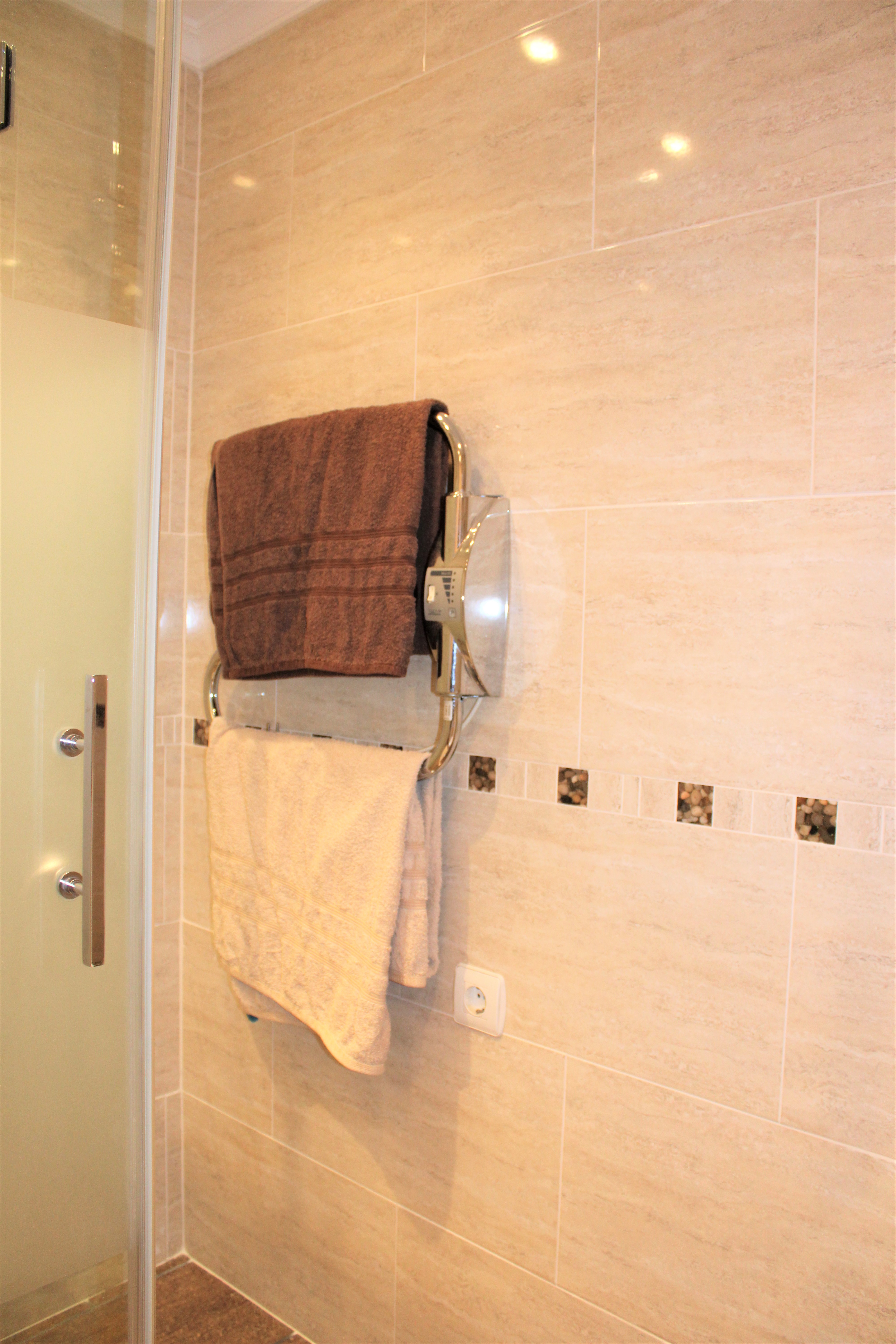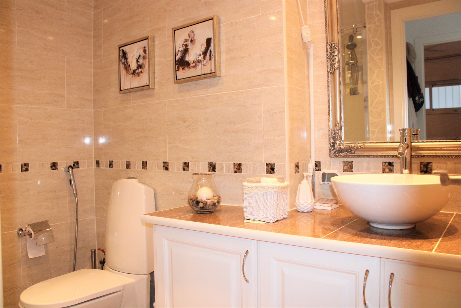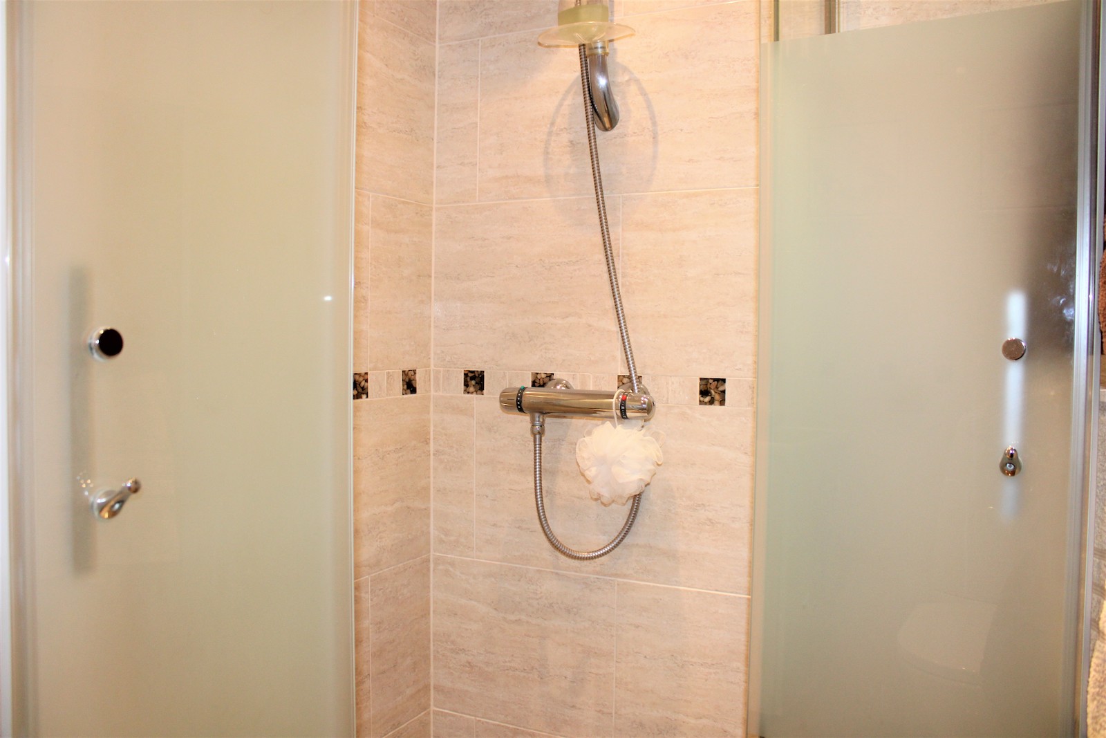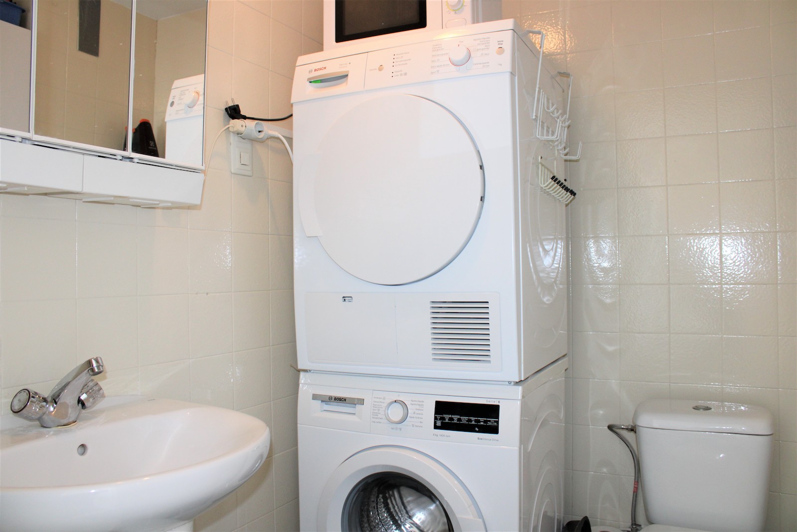 Lägenheten har två sovrum med inbyggda garderober, garderoberna har skjutdörrar. Två badrum, där det ena badrummet har både tvättmaskin och torktumlare. Fullt utrustat kök med induktionshäll, samtliga vitvaror är max 5 år gamla. Ett stort ljust vardagsrum med matplats och soffa med tv-fåtöljer, här finns även plats för ett litet kontor. Dörrarna i lägenheten är nyligen utbytta och samtliga fönster har termo-glas, utförliga uppgifter på alla årtal kan fås vid önskemål