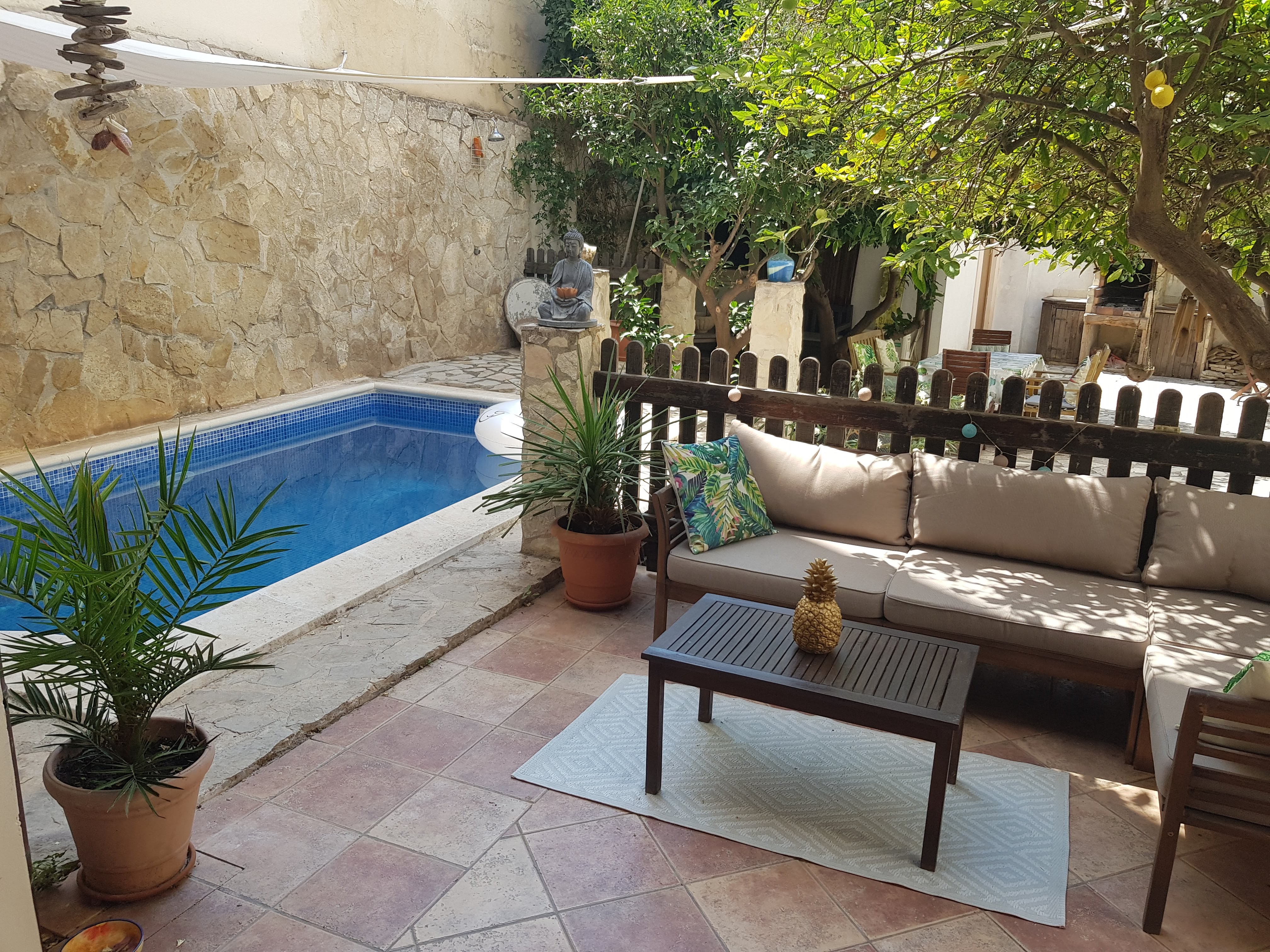 If you have always wanted to live in the centre of Palma, surrounded by all the facilities of the city, but with the tranquillity of the outskirts, this is the place for you. It is special in all its aspects; there is no other flat like it: with its terrace, its more than 100 metres of patio, its fruit trees, the private swimming pool and its rustic style, you can be sure to have a unique and different flat than anyone else!