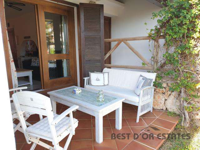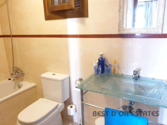 Modern townhouse in pretty community near the marina + beaches. 118m2 living area splitted in 2 apartments + separate entrances, Total: 3 Bedrooms, 2 Bathrooms, 2 Lounge/Diners + Equipped Kitchens, Utility, Terraces, Private Garden, New A/C, Parking Spot, Communal Swimming Pool.