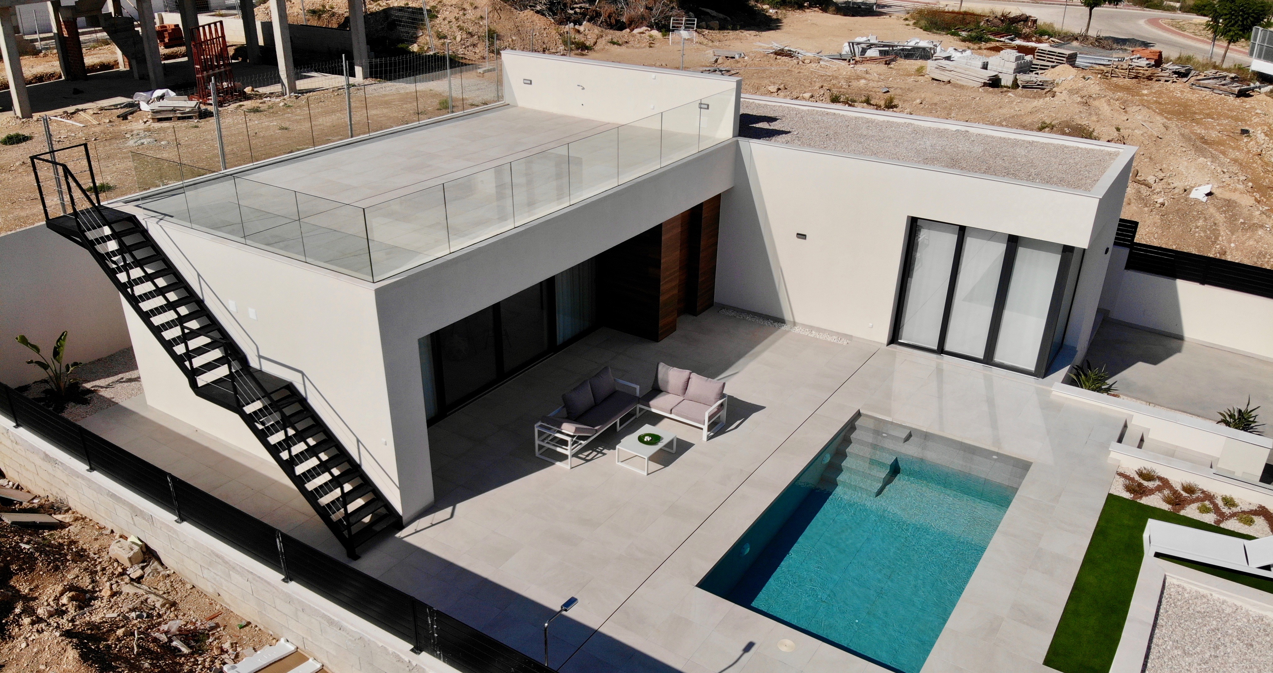 K’AAN VILLAS is a single-family house distributed on two floors, located in “La Alberca” neighbourhood, in Polop de la Marina. It is part of a 4 houses project built on plots between 434 and 467 square meters.