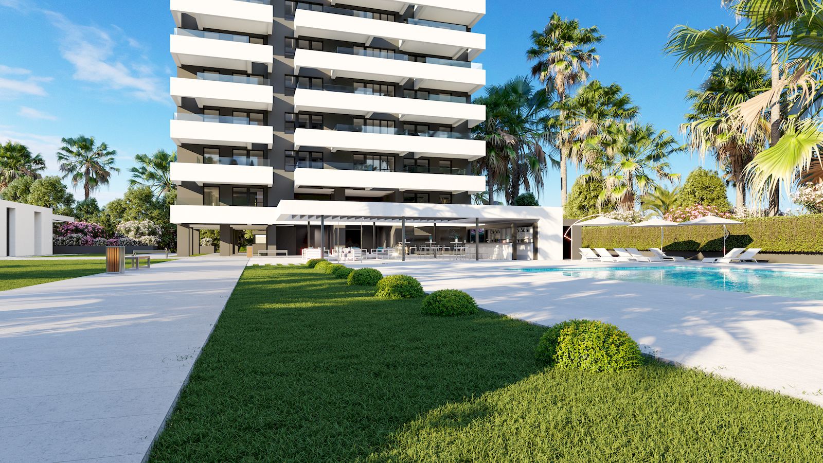 Two new buildings located a few meters from the beach, overlooking the salt lakes and the Peñón de Ifach, surrounded by all desirable facilities such as restaurants, supermarkets, shops, bars, banks and very close to the Avenida de los Ejércitos Españoles.