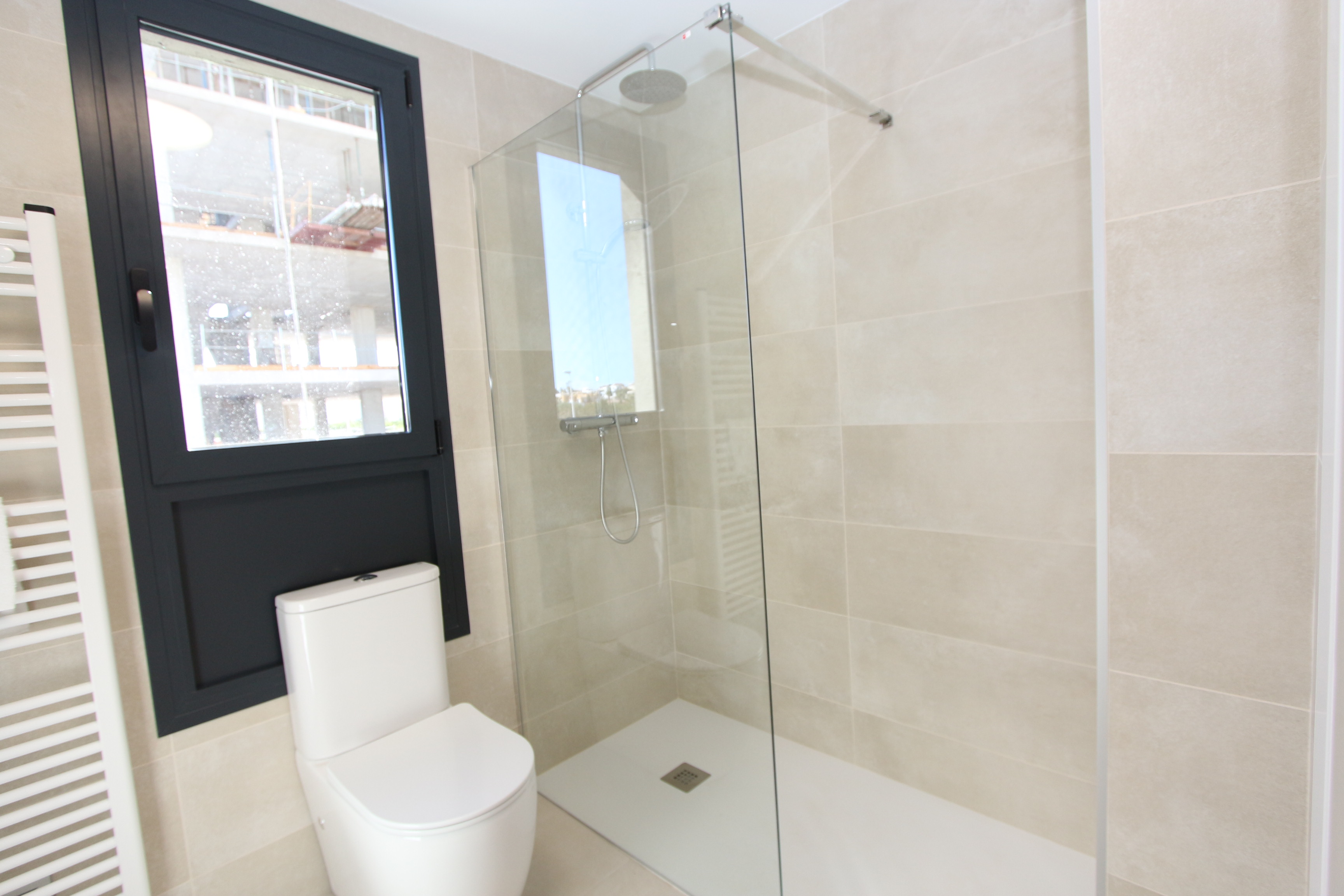 Both buildings will have 15 floors and there will be 85 apartments with two or three bedrooms, two bathrooms, living-dining room with a fully fitted open kitchen, large windows and partially covered terraces with sea views from half of the height of the building. You can customize the apartment to your taste by choosing between several materials.