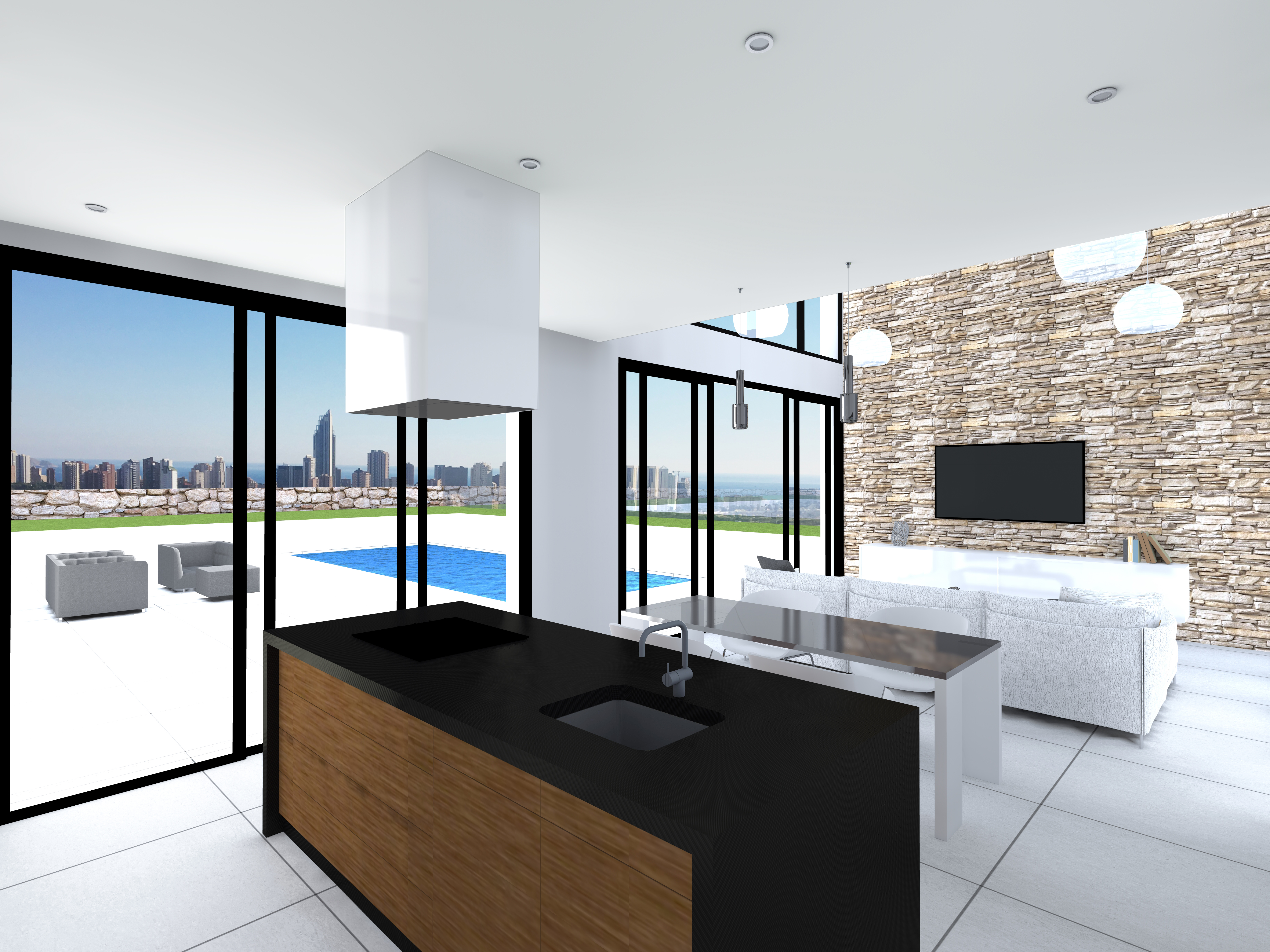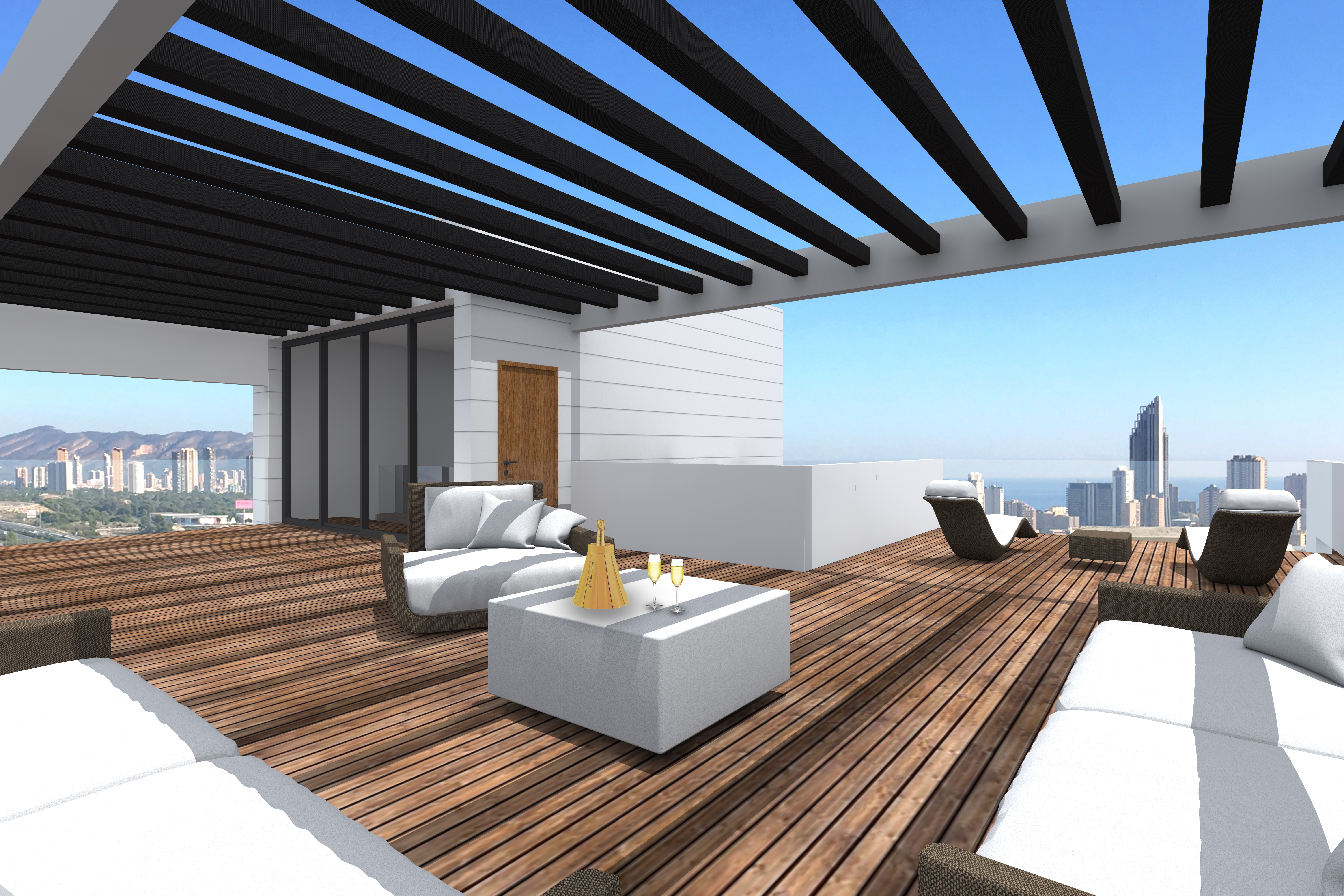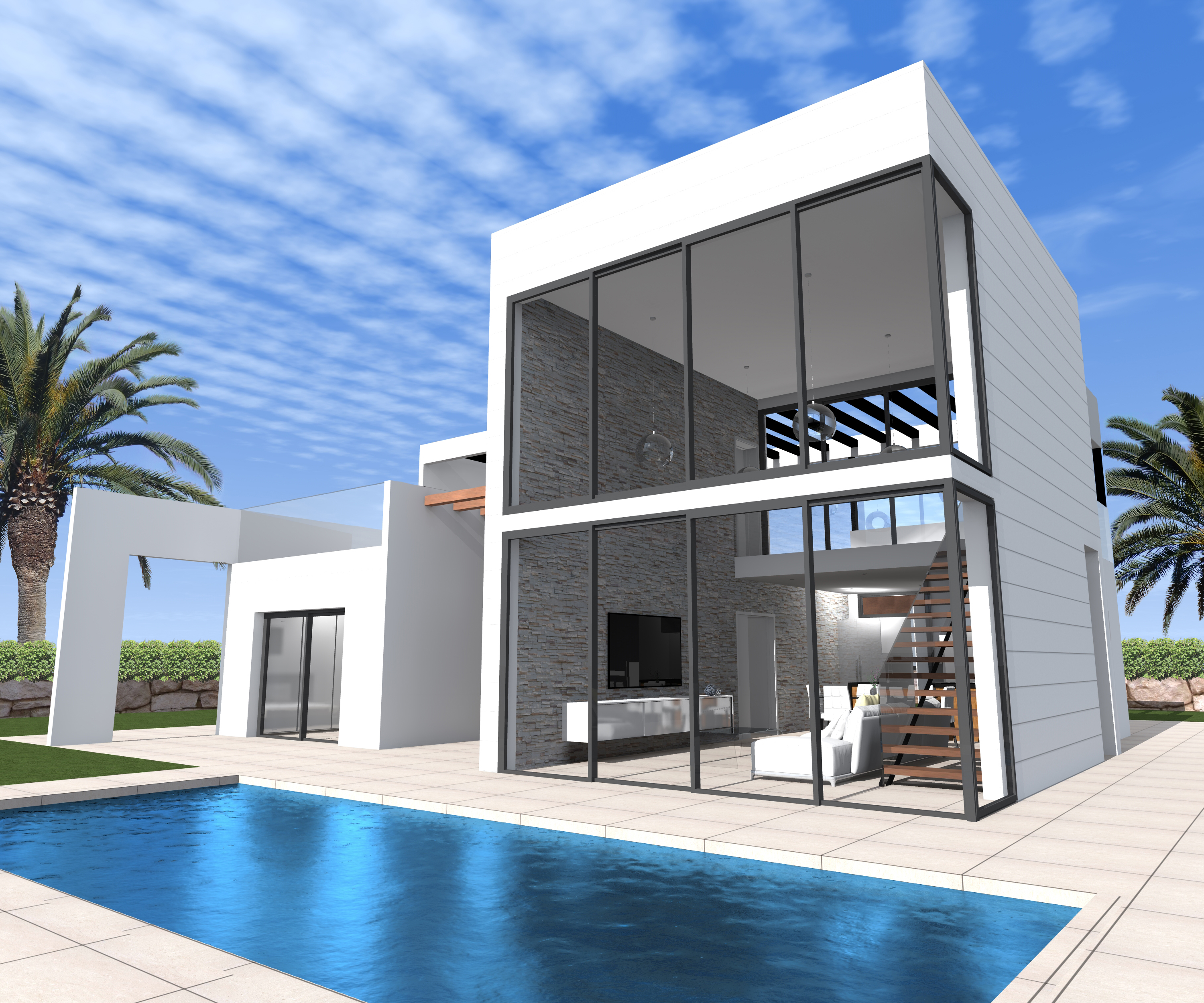 Our 11 modern style villas, all of them with garden and which right down to the last detail respond to the strictest quality standards, have 3 bedrooms, 3 bathrooms and a courtesy toilet. Its large living room with open kitchen and large windows and large solariums, at least 90m², will offer panoramic views of the Mediterranean Sea which will make you feel the luxury that anyone would want.
