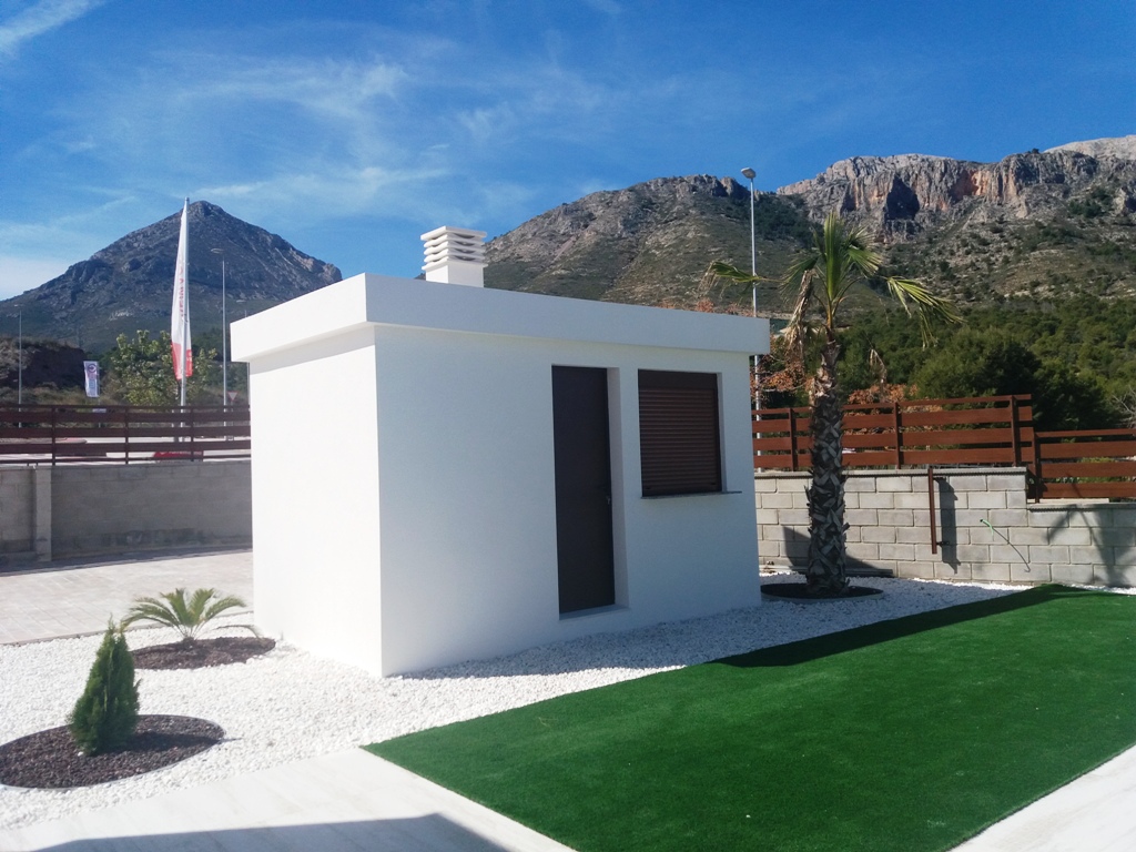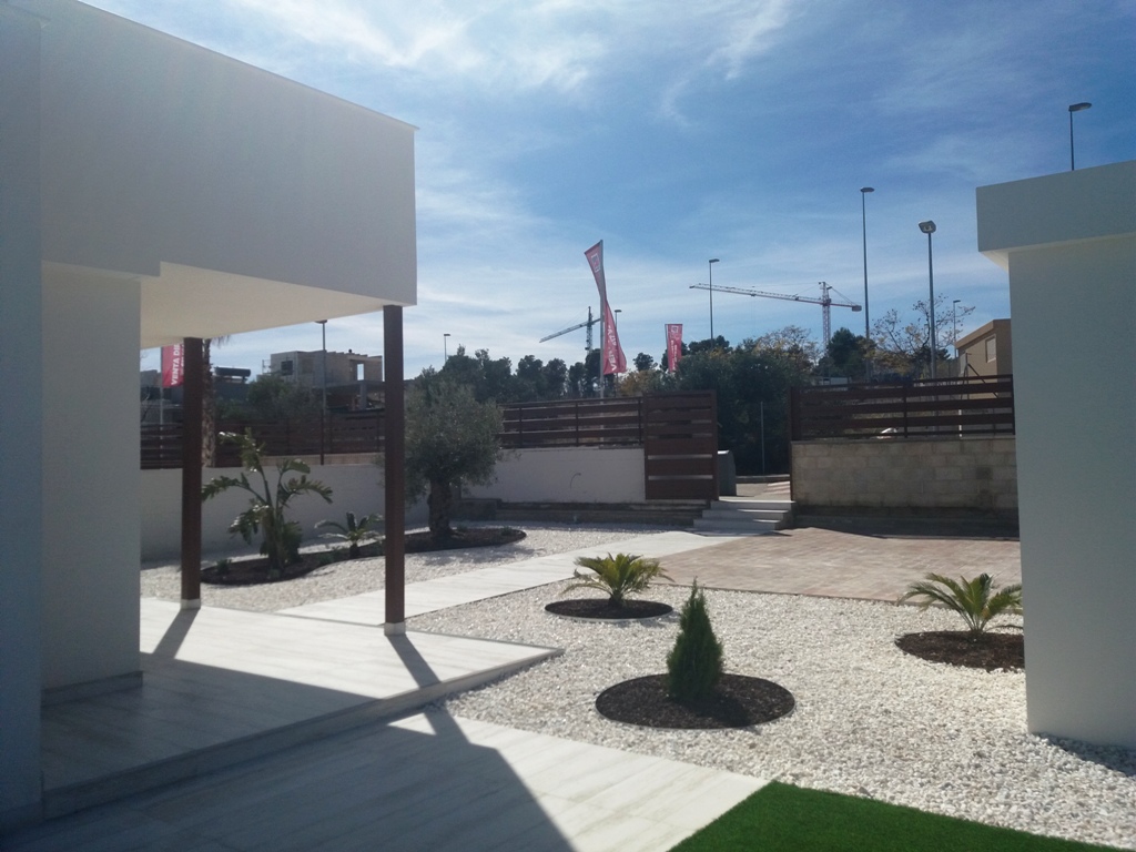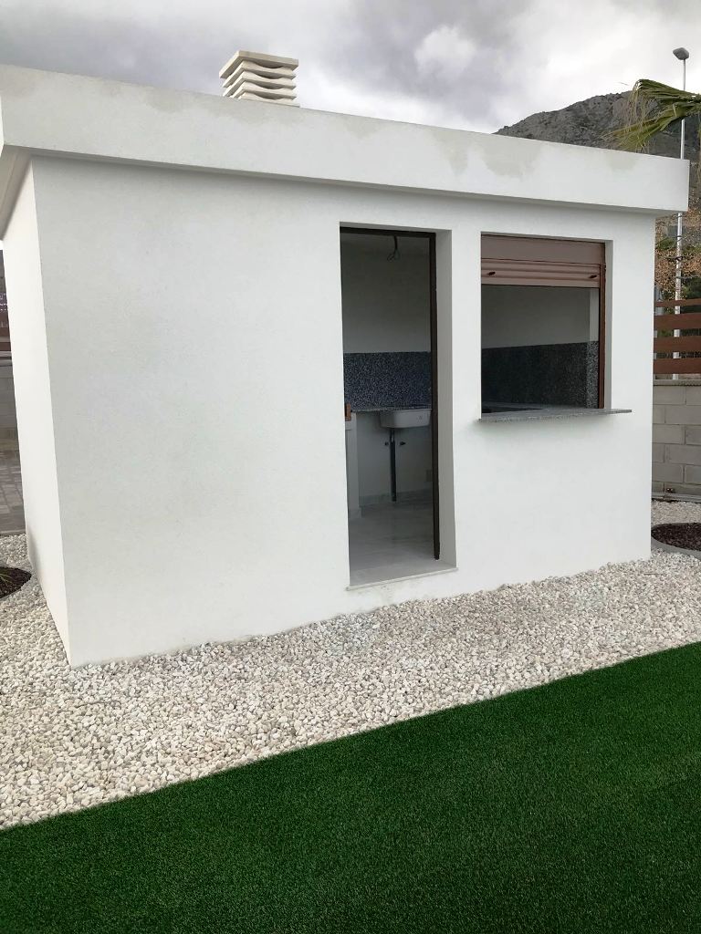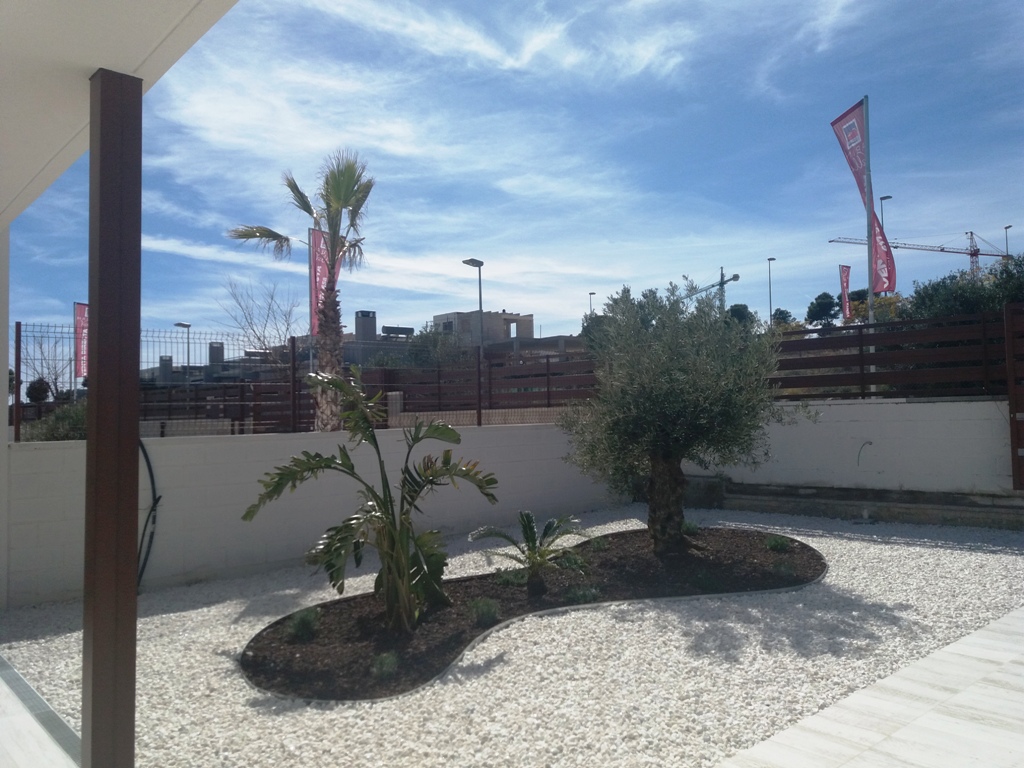 Exteriors: terraces, private gardens, barbecue shed, parking area.