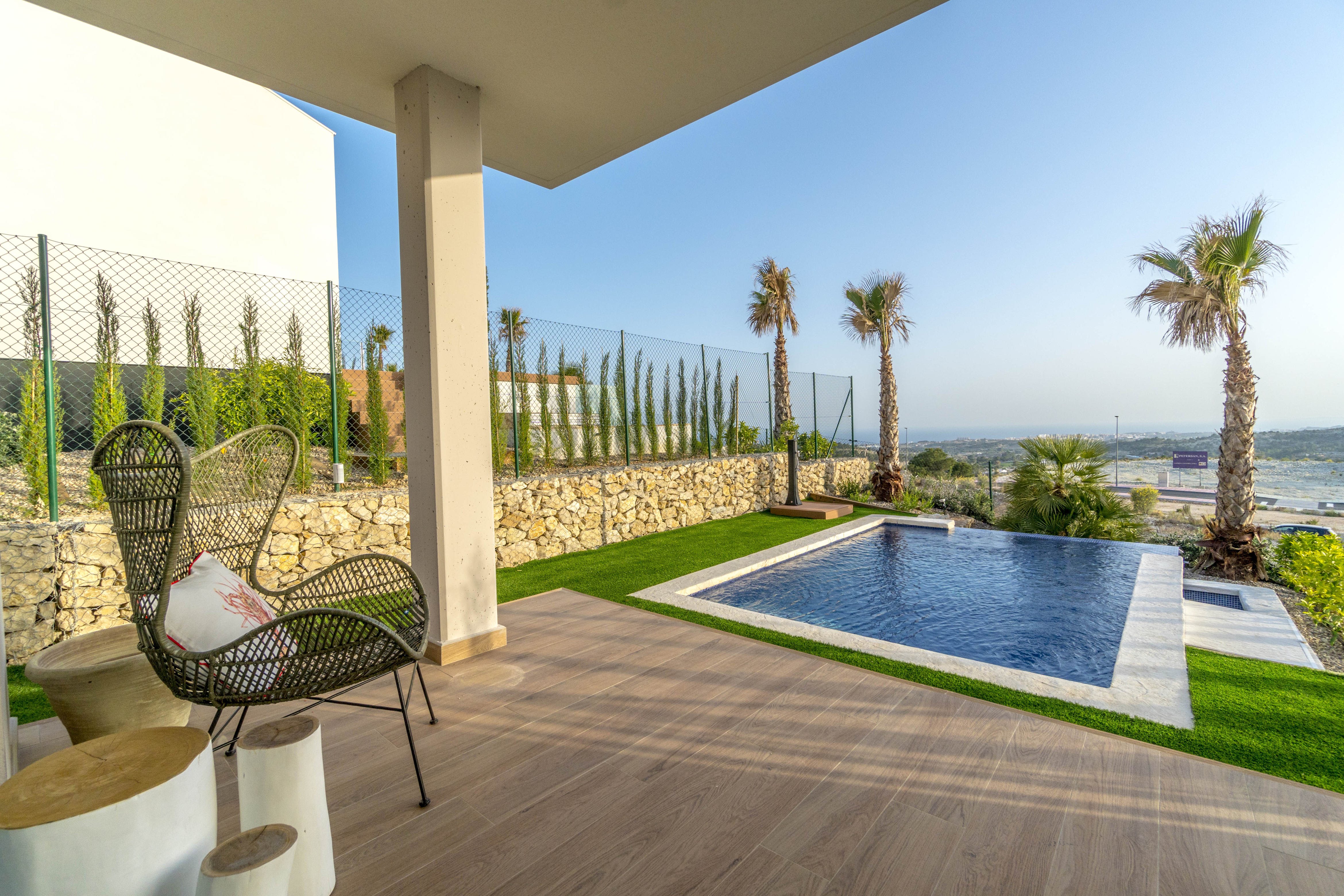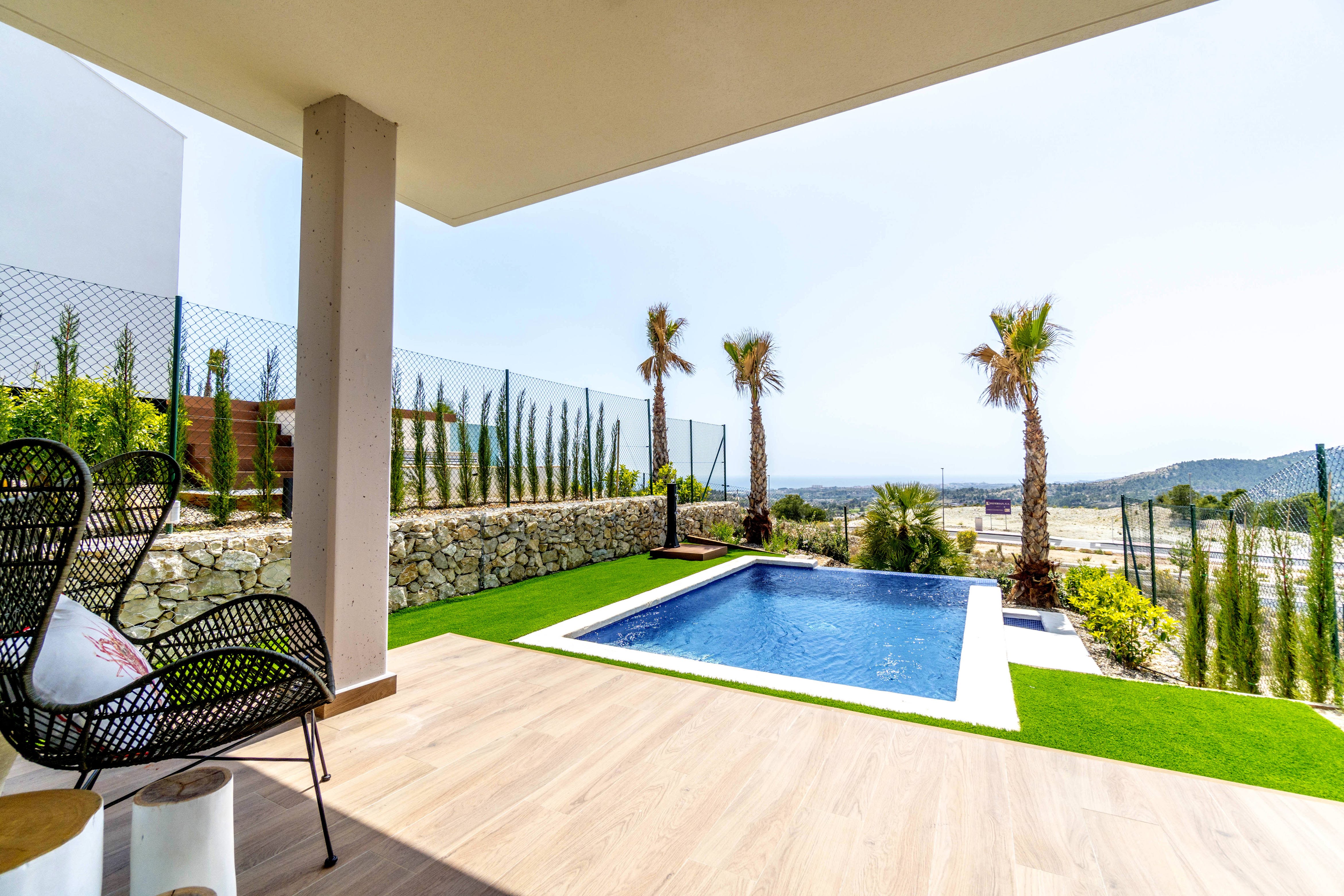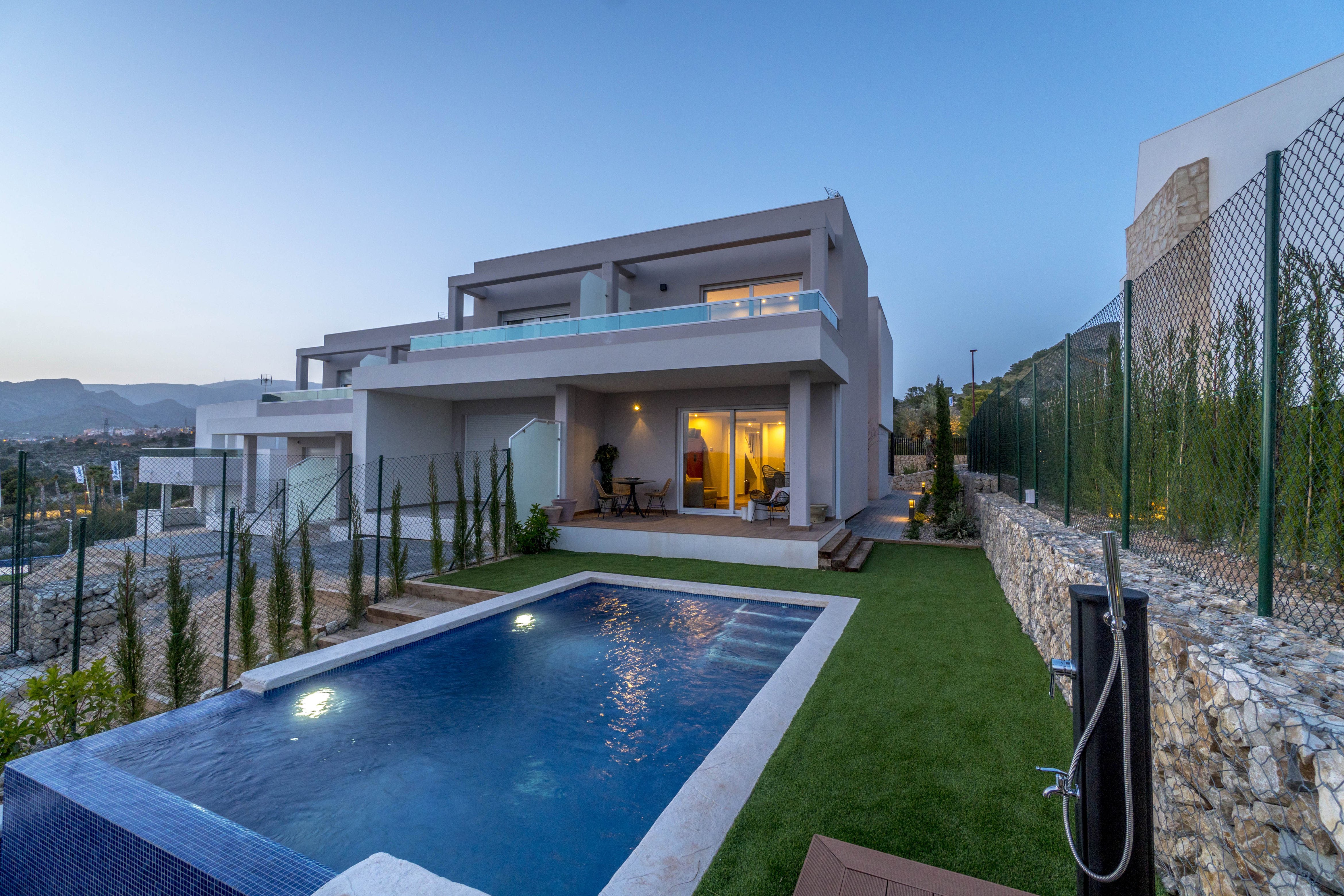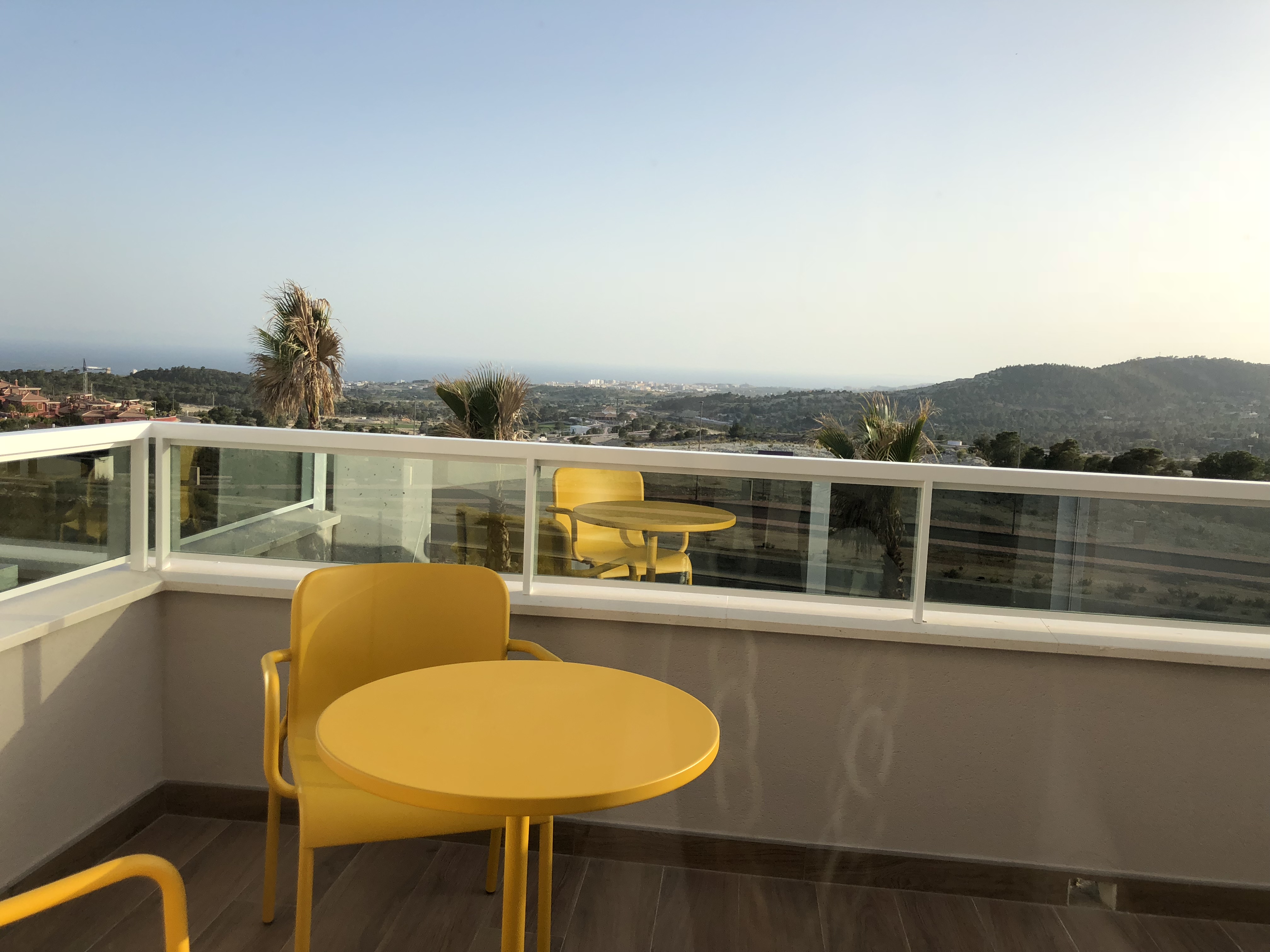 Attractive 2-floor semidetached house offering stunning views over Costa Blanca and Puig Campana from every room. Next to the golf course “ Alfarella”.