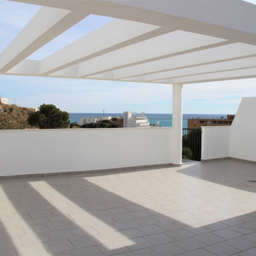 With the Mediterranean at your fingertips, we welcome you to this amazing new building! The complex is located in Cala El Torres, a unique place on the Costa Blanca on an unspoilt beach with crystal clear waters, surrounded by greenery to the beach. The complex is a private and closed residential area consisting of 71 accommodation units with 1 to 4 bedrooms. The construction project is based on a detailed thorough study for the purpose of creating optimal views of the sea in all directions. Innovatively designed homes are available with a large number of variations: townhouses, duplexes, apartments and penthouses, all coexisting in a unique complex with large terraces facing the Mediterranean Sea. The complex is built of high quality material and with exclusive equipment like complete air conditioning, carefully selected floor coverings and wall coverings, kitchen and bathroom equipment with reputable brands. Garage / parking and storage are included. In these properties you will enjoy comfortable accommodation in a quiet and natural environment yet close to all services with Benidorm and Villajoyosa within easy reach. By car you will quickly reach Alicante Airport. Forget noise and city voltage; Welcome to our unique preserved area; We offer a crystal clear Mediterranean as part of your home. Prices 140.000 € up to 647.500 €