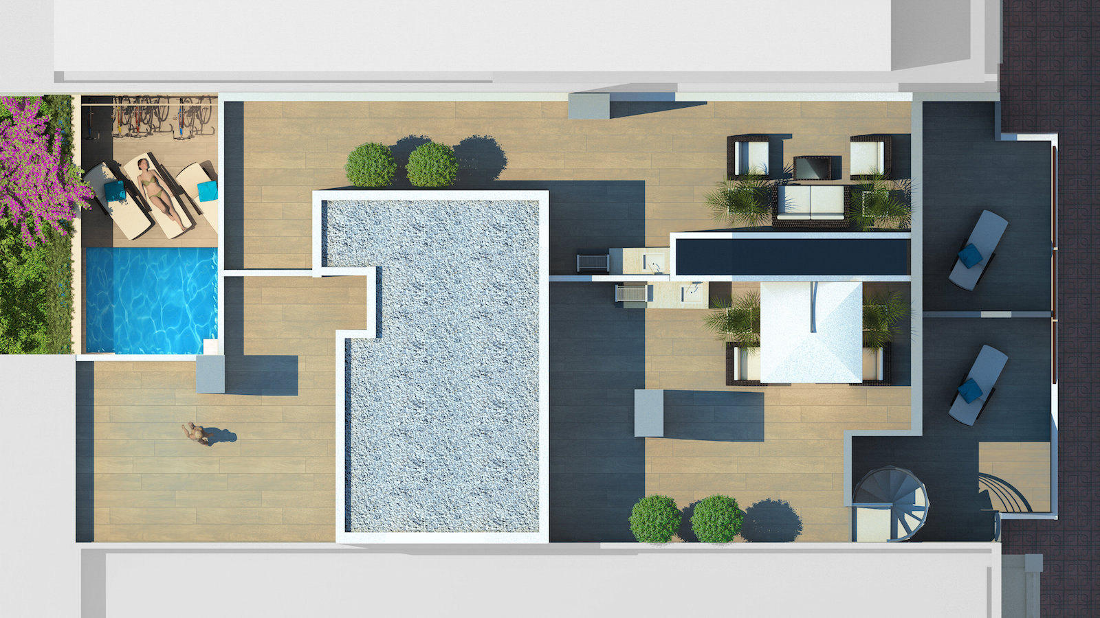 Soon the construction of a magnificent building of 16 apartments will begin. The complex of 5 floors, with a singular and modern facade, includes studio apartments, 1 and 2 bedrooms apartments, chill-out area, climatized pool and finnish sauna.