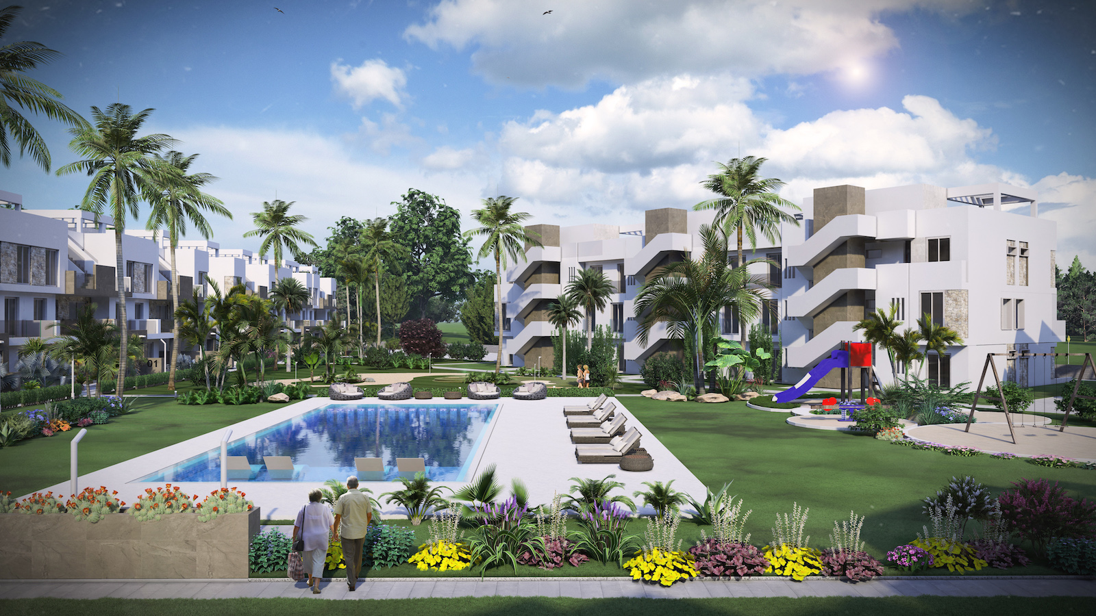 El Raso is a private residential complex, composed of 114 homes with 2 or 3 bedrooms, designed in a minimalist way and with high quality standards, its modern architecture harmonizes with our large open spaces, nature and pool, offering a unique and quiet atmosphere.