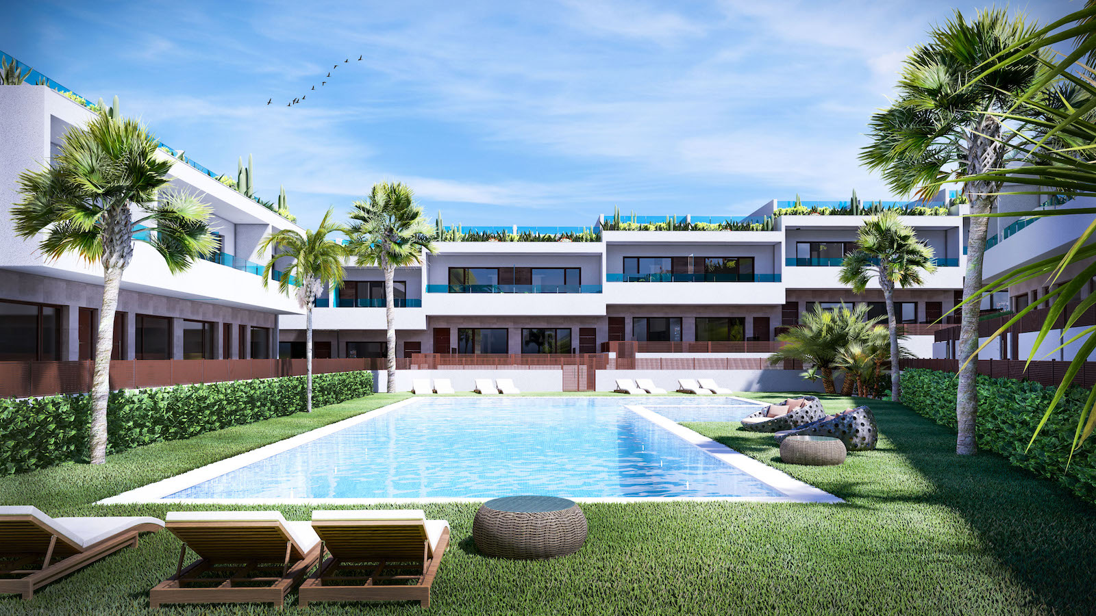 New duplex townhouses with 3 bedrooms + 3 bathrooms, Solarium with sea & laguna views, and a large community pool.