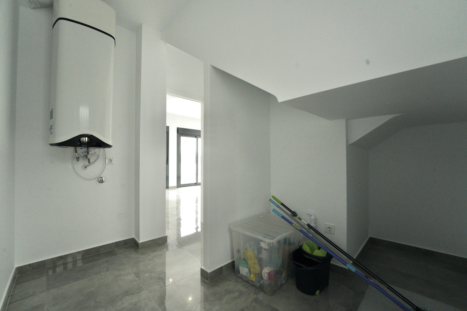 The 3 bedroom, 3 bathroom villas have their own plot and private 5 x 2.5 pool, on the ground floor a luminous open plan lounge and dining area with large French windows leading out to the terrace, garden and pool area. The kitchen separated by a modern design breakfast bar has direct access to the terrace for al fresco dining. A double bedroom and bathroom complete the downstairs level.
