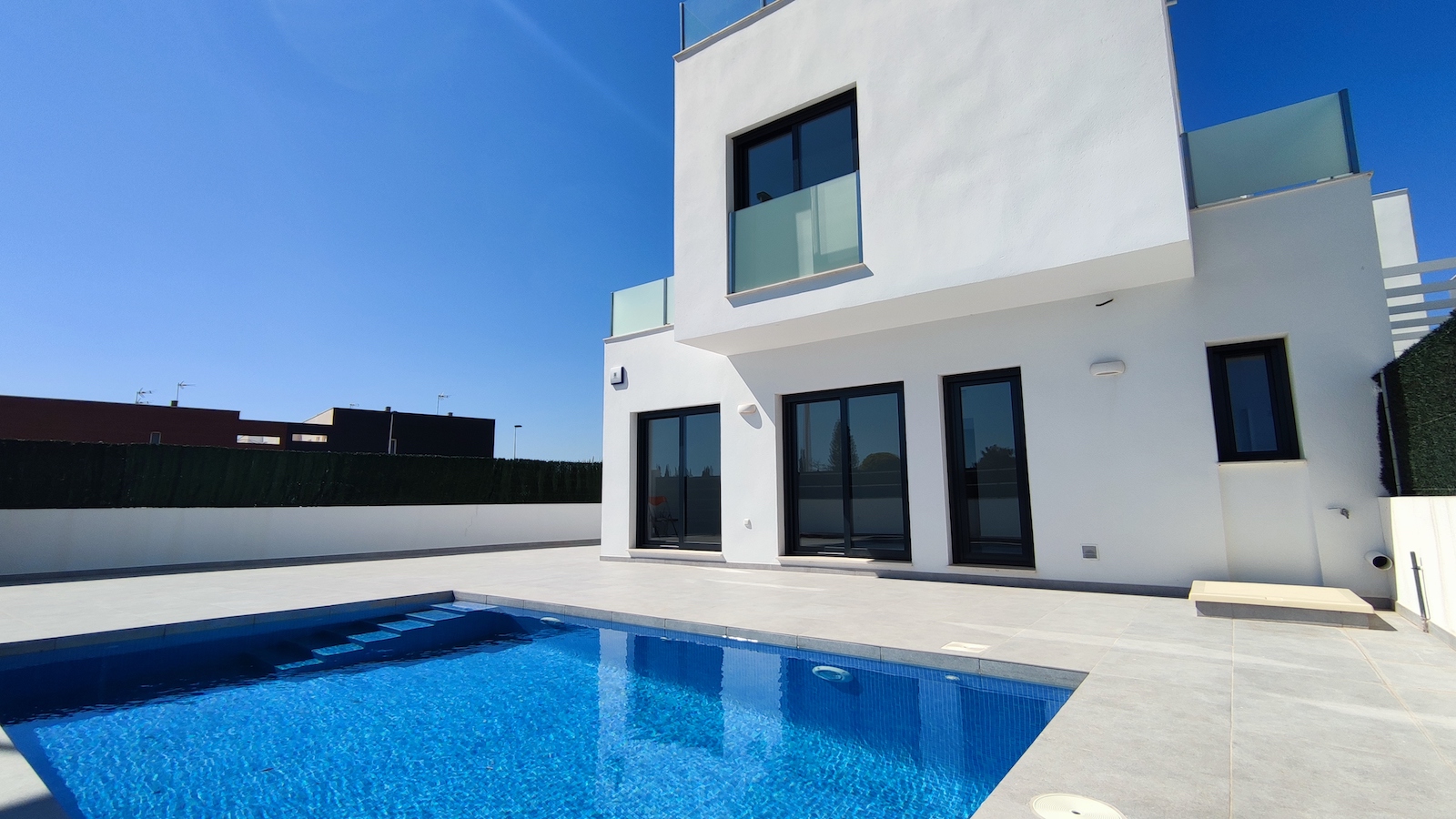 Superb modern new villas in San Pedro del Pinatar are just a couple of minutes drive down to the fantastic Mar Menor beaches of Lo Pagan where the famous therapeutic mud baths are situated, an idyllic area with great all year round warm Mediterranean temperatures.