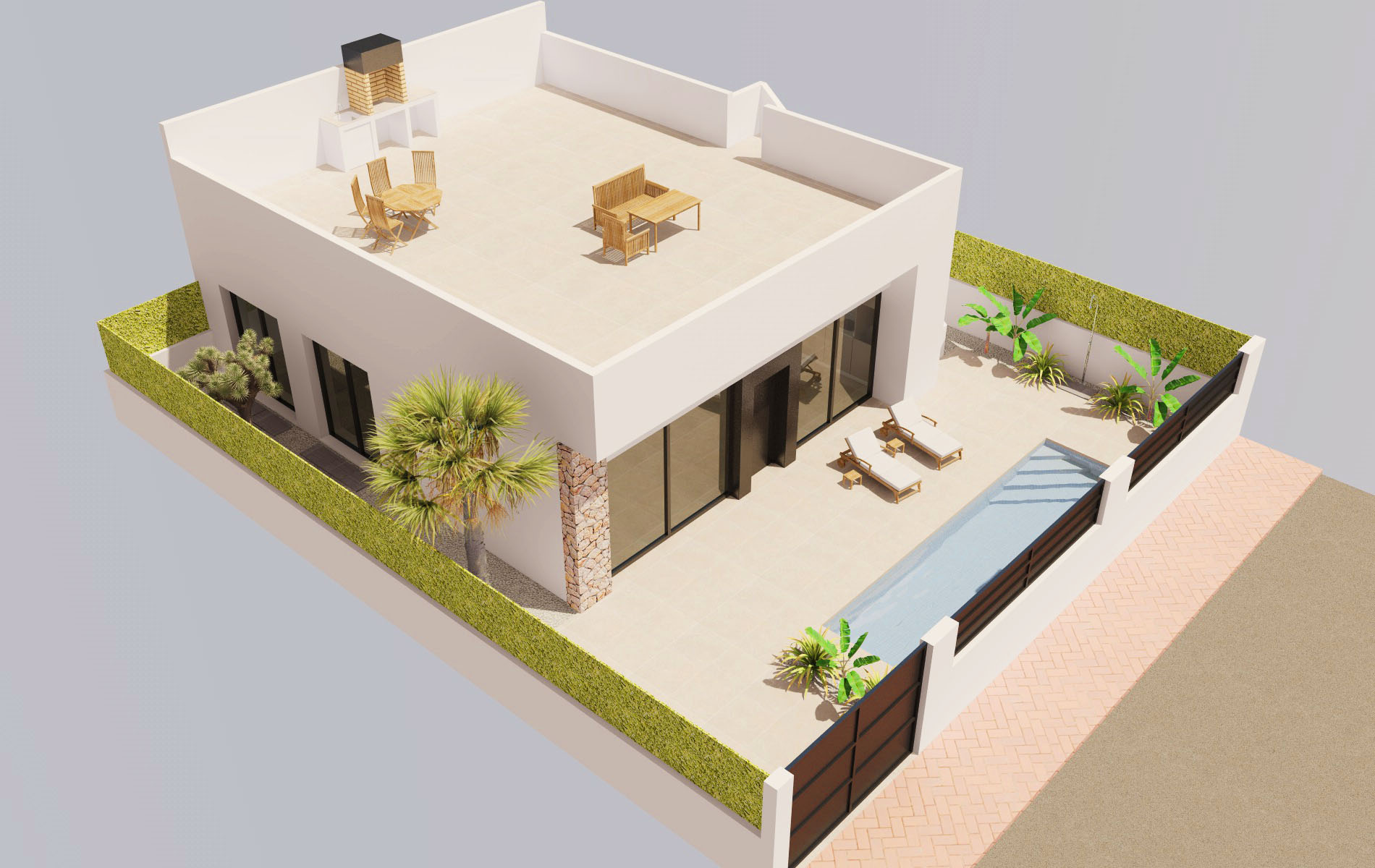 Magnificent Villa on ground floor with three bedrooms, two bathrooms and private pool. In an unbeatable 600 meters from the Dos Mares shopping center and 500 meters from the beach area.