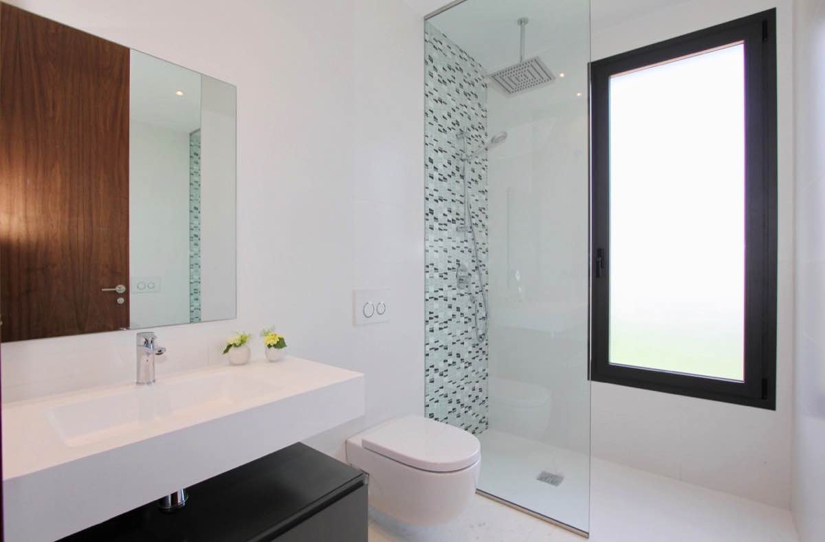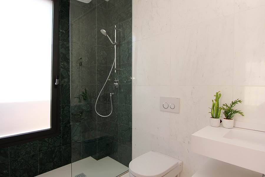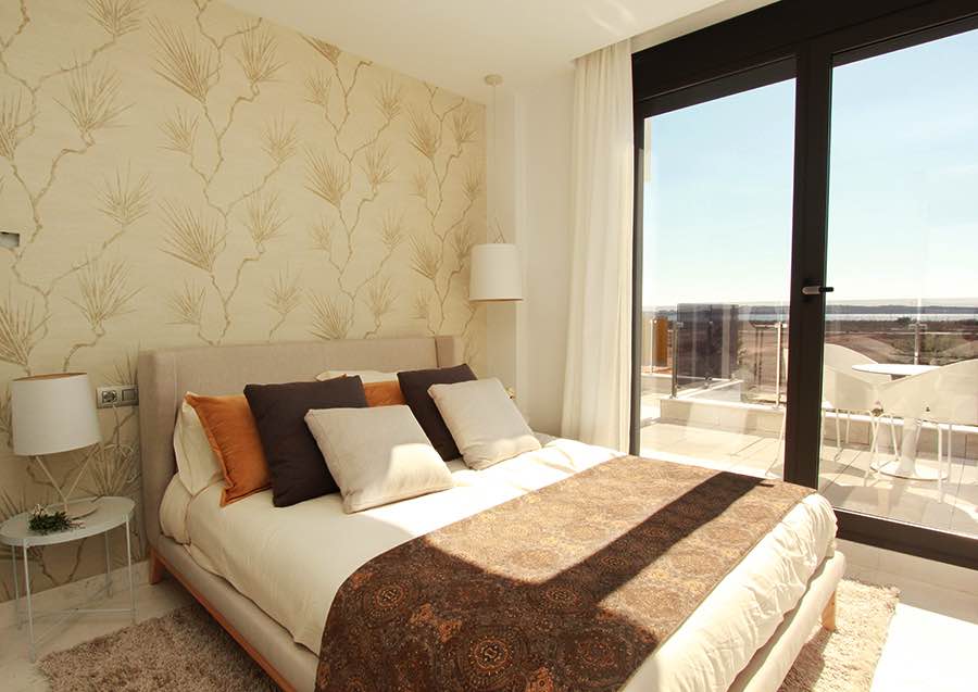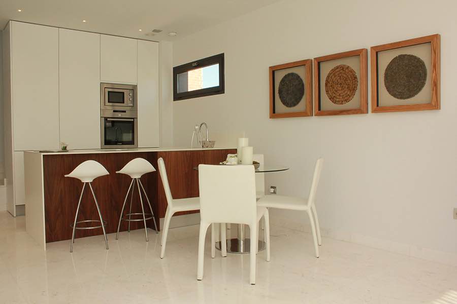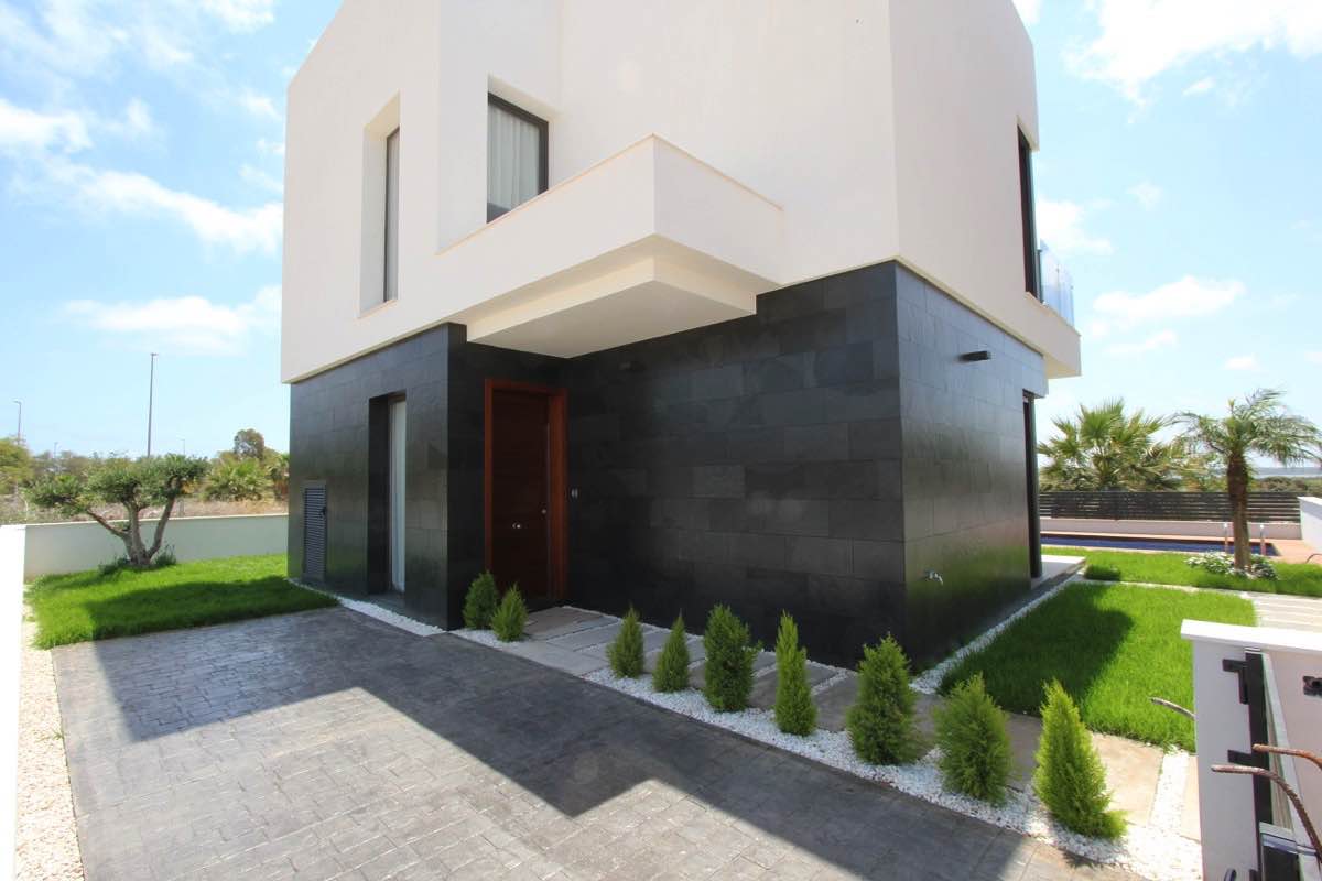 Wonderful modern designer villa distributed over 2 floors as follows; ground floor – large open lounge/dining area with open plan designer kitchen, bedroom with en suite bathroom… upper floor – 2 bedrooms both with en suite bathrooms… The villa has an amazing sun terrace with beautiful views… Only 500m from the Boulevard Shopping Centre in La Zenia and 5 minutes from the beach…Private pool included in the price!!!!