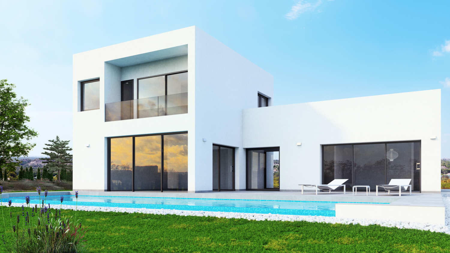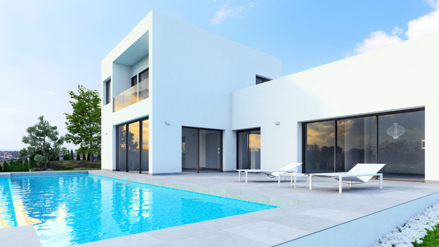On the 1st floor you will find 3 double bedrooms and 2 bathrooms. Master bedroom of 34 m2 with en-suite bathroom and access to a minor balcony. From the master bedroom you have views towards the golf course, mountains, the sea and even La Manga del Mar Menor. On the 1st floor you will furthermore find another terrace of 54 m2 with the same views as the master bedroom as well as views towards the entrance of Las Colinas Golf & Country Club and all the greenery in between.