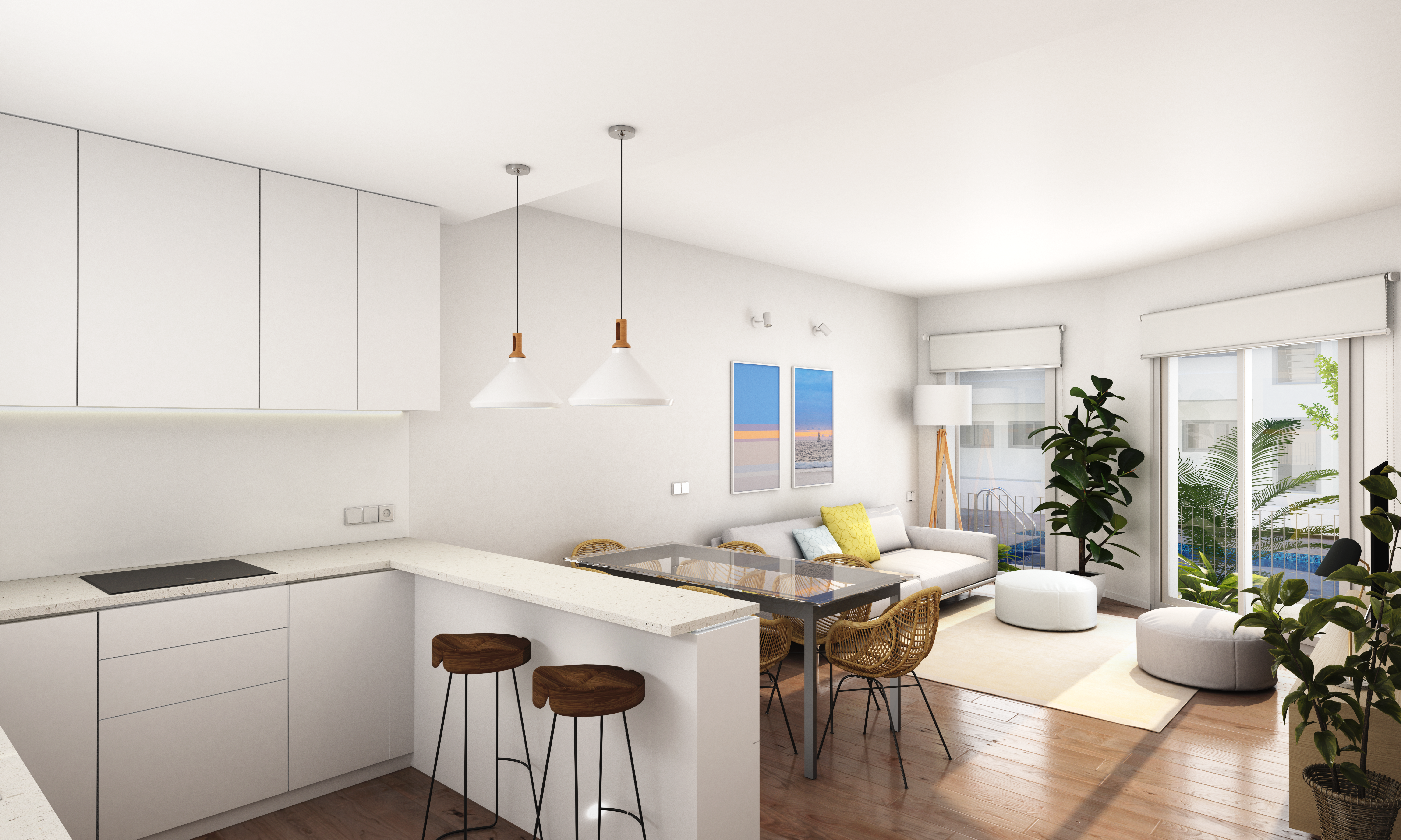 A total of 125 homes. Ground floor apartments with 2 and 3 bedrooms with garden, top floor apartments with 2 and 3 bedrooms with solarium, and duplex with 3 bedrooms, garden and solarium.