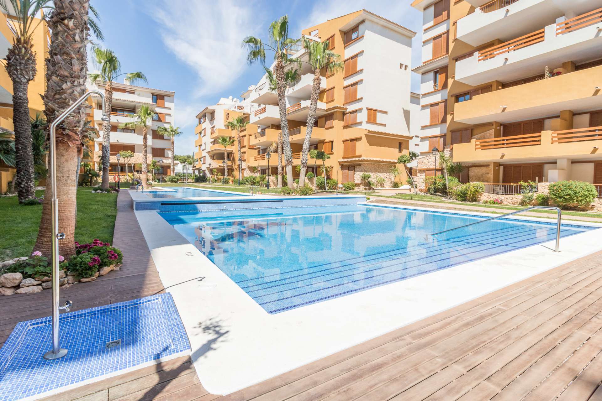 These new La Recoleta apartments are located on a prime location in Punta Prima. This development is near the beachfront with access to the sea and beach just a few metres away. Alicante’s international airport is just an hour drive away. La Recoleta is built in a traditional Mediterranean style, with wide avenues leading down to the sea, immaculate garden areas with beautiful pool areas, making this a perfect place to relax and enjoy the fantastic climate all year around. The apartments These 2 and 3 bedrooms apartments have a well-designed layout, all master bedrooms with en-suit bathroom and each with a private terrace. From the terrace you can enjoy the beautiful views over the sea, the pool and the private gardens of the development. The unique penthouses include solarium with outstanding views. Each apartments also has an underground parking space and a storage room. All the buildings has a lift, that also brings you to the garage. The area The local amenities of Torrevieja and its beaches creates a great location and makes these apartments at La Recoleta a good options, when buying a home in the Costa Blanca. From La Recoleta you are only a short walk from the beach and promenade in Punta Prima, as well as supermarkets and restaurants. A perfect situated apartment in the heart of Punta Prima, only 5 km south of Torrevieja city center.