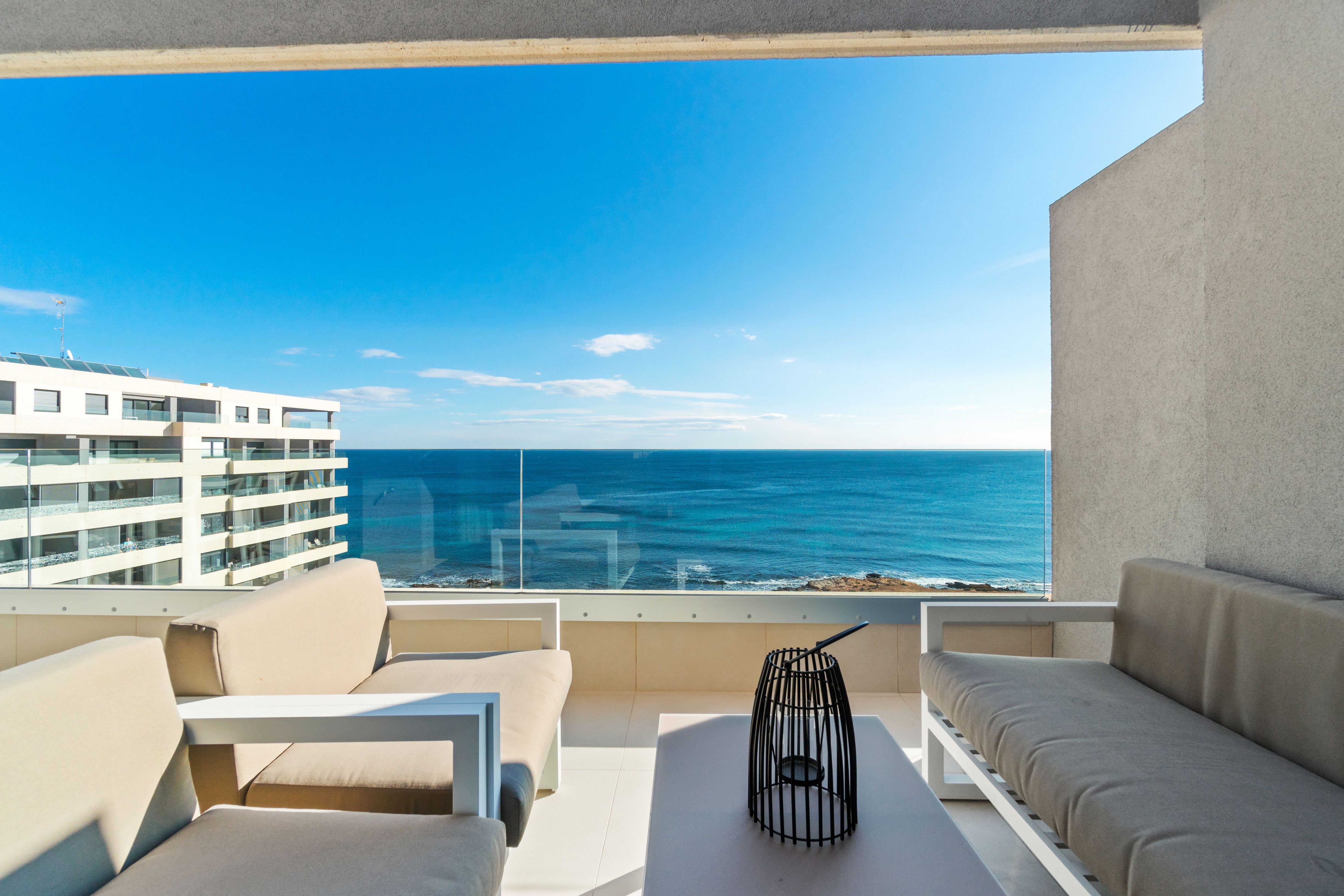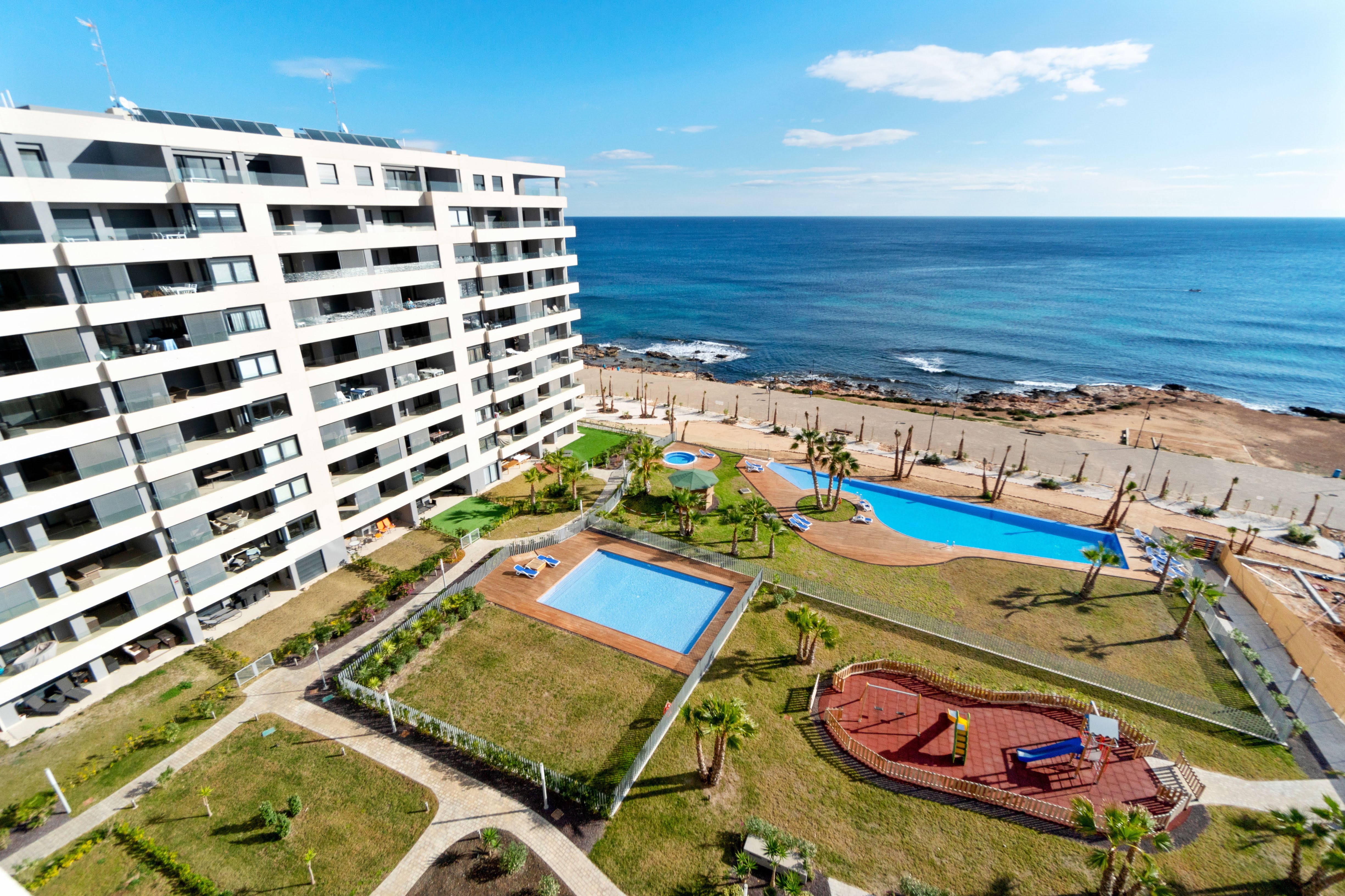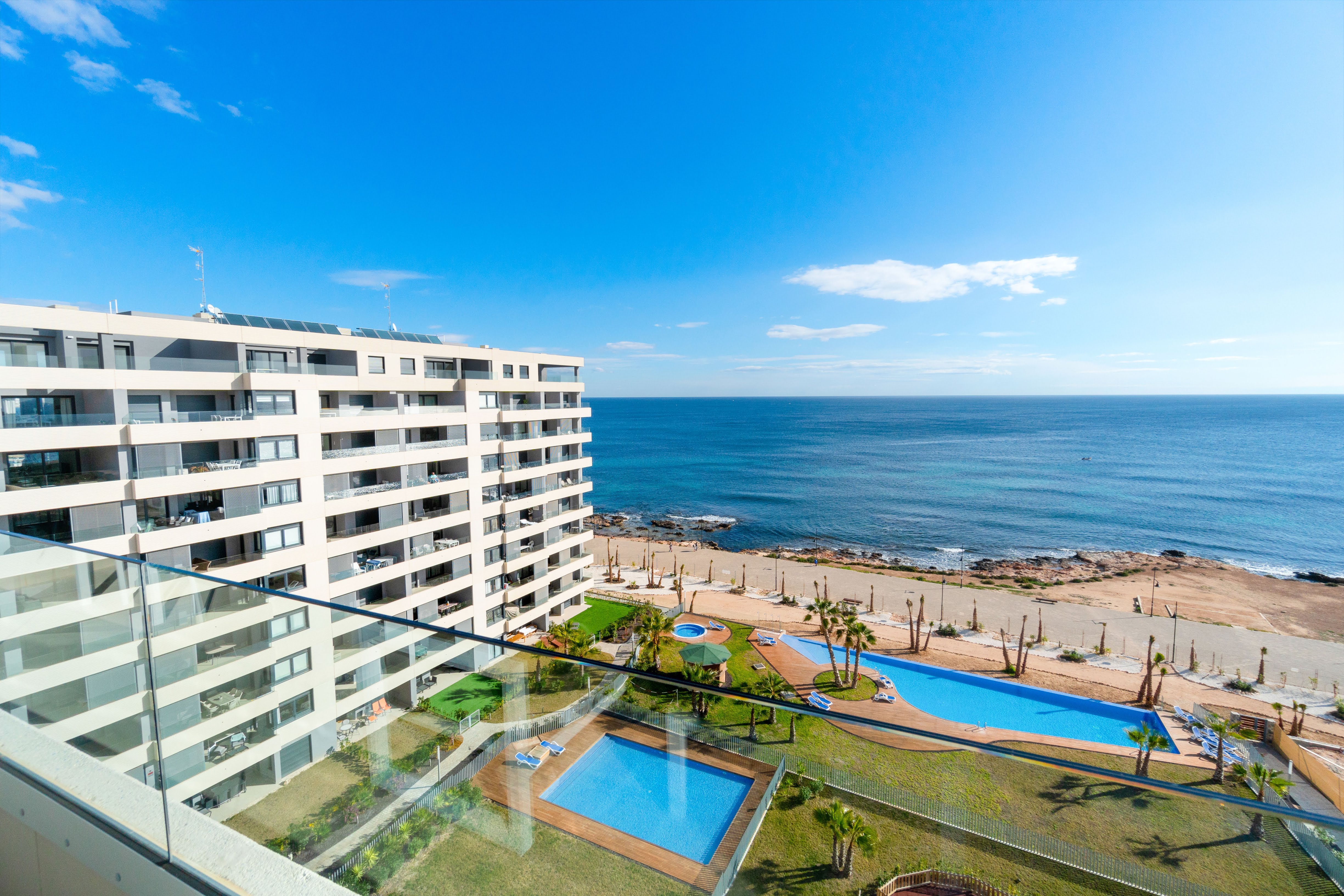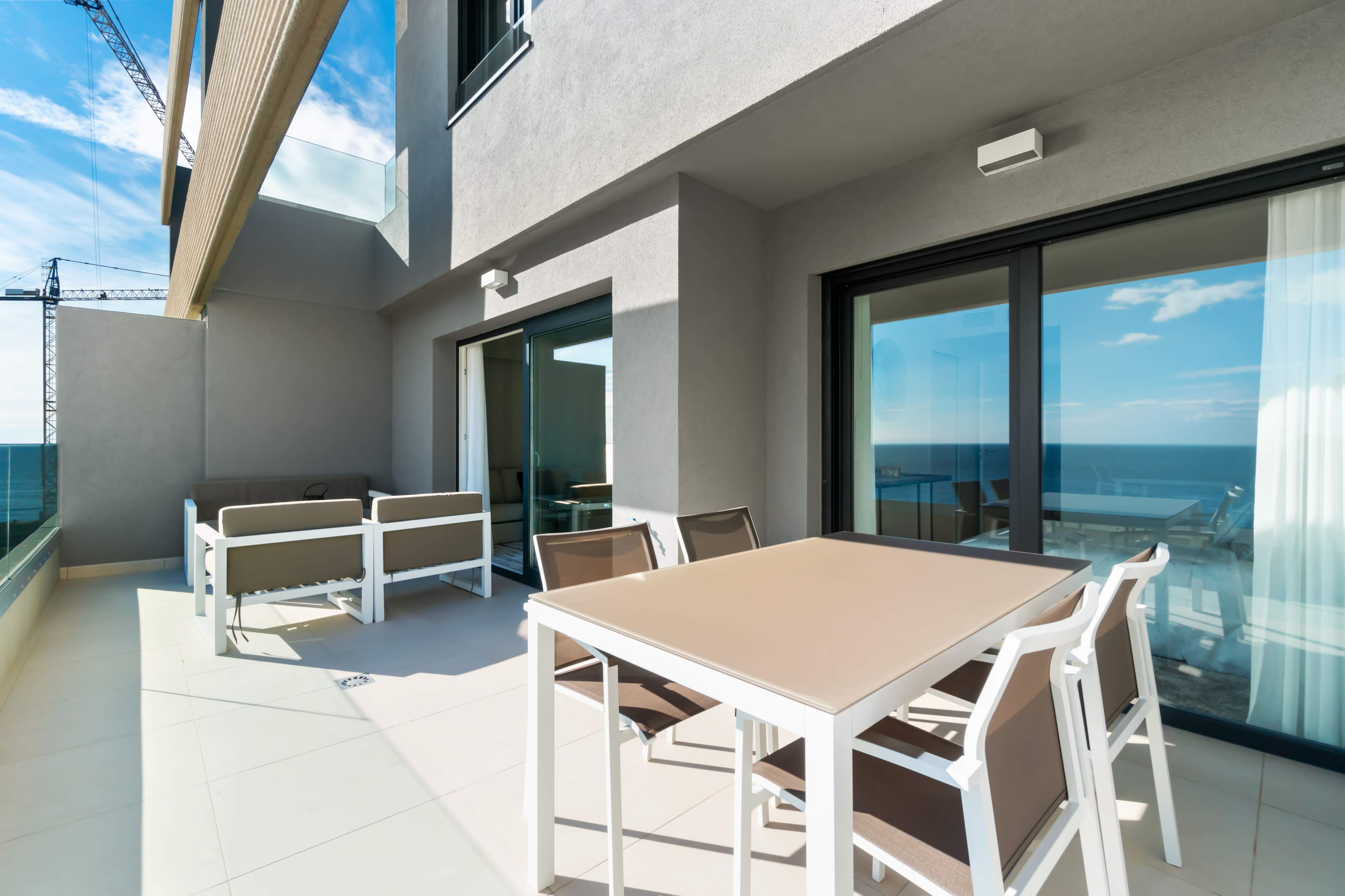 Located with just a promenade in between the Mediterranean Sea and Panorama Mar, it’s hard to find a better location on the southern part of Costa Blanca. Panorama Mar consists of 4 blocks with a total of 185 apartments. All with direct sea views. Phase 1, which also is block 1 consists of 58 apartments. The communal garden and swimmingpool area offers 3 swimmingpools (infinity, bathing and children’s pool), jacuzzi and multipurpose sports court. In addition like the rest of the complexes in Señorio de Punta Prima there will be installed CCTV for monitoring accesses and common areas, connectable to Security Service circuit. All apartments in Panorama Mar come with a private underground parking, storage room, conduct air-condition and heated floors in the bathrooms.