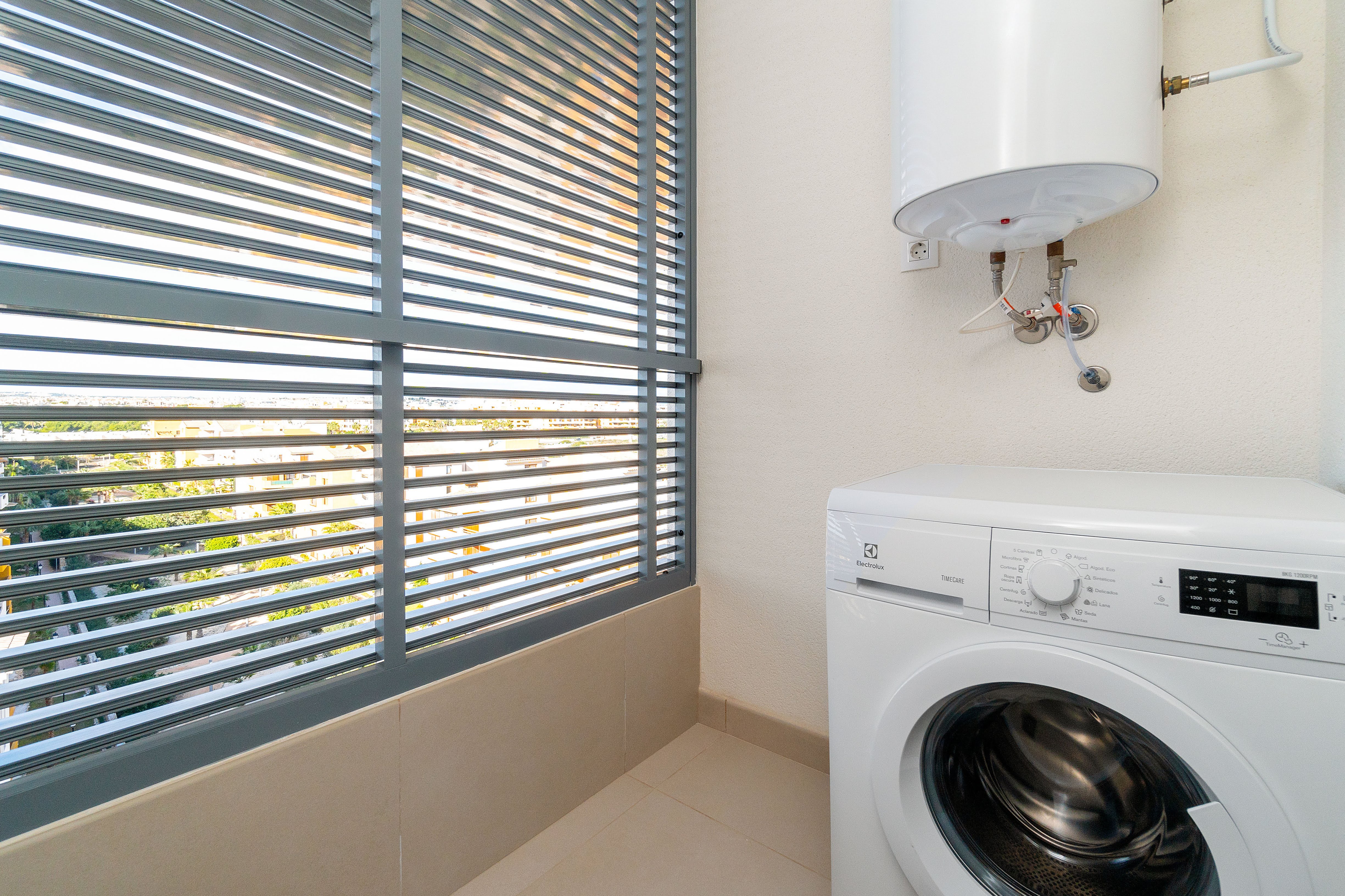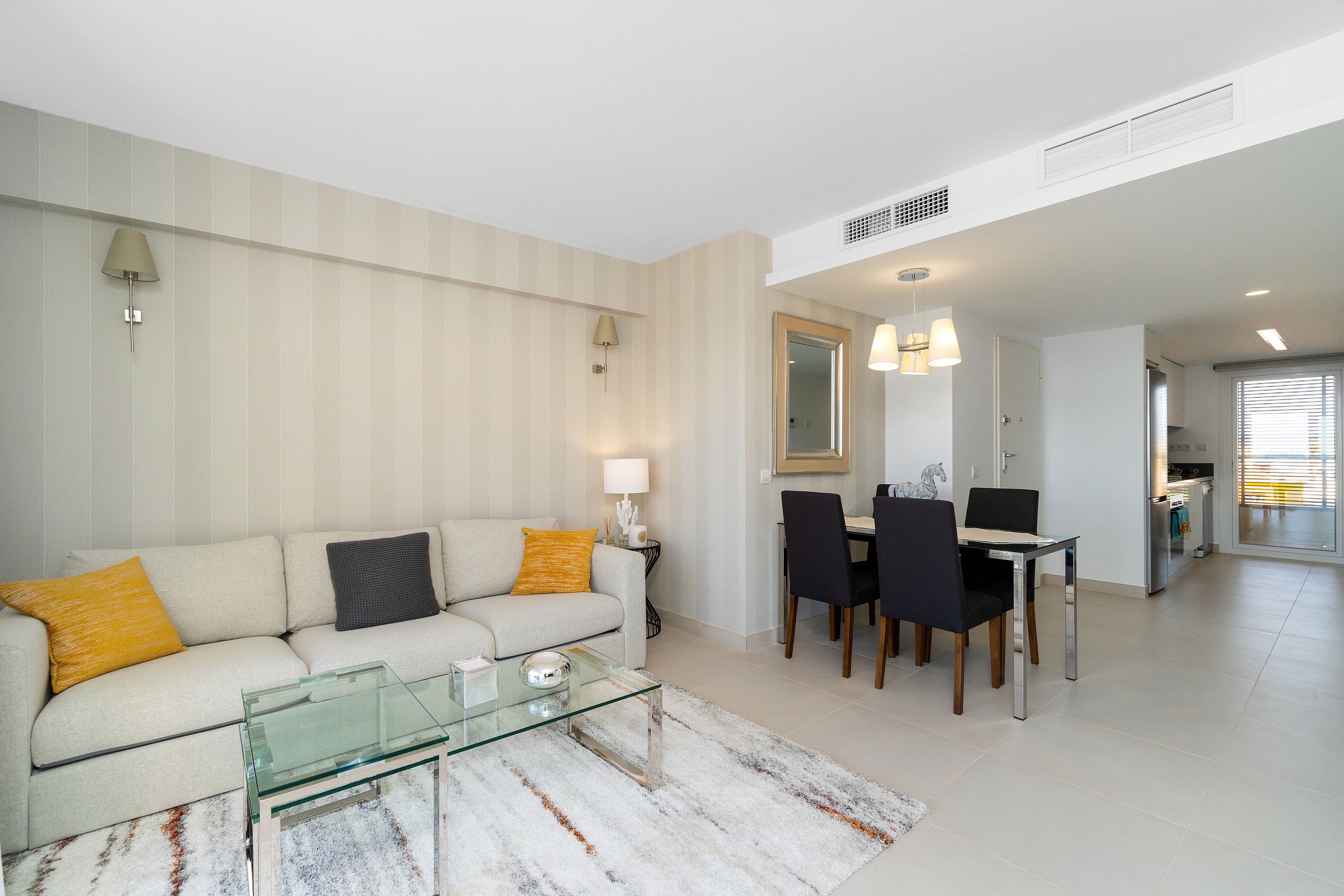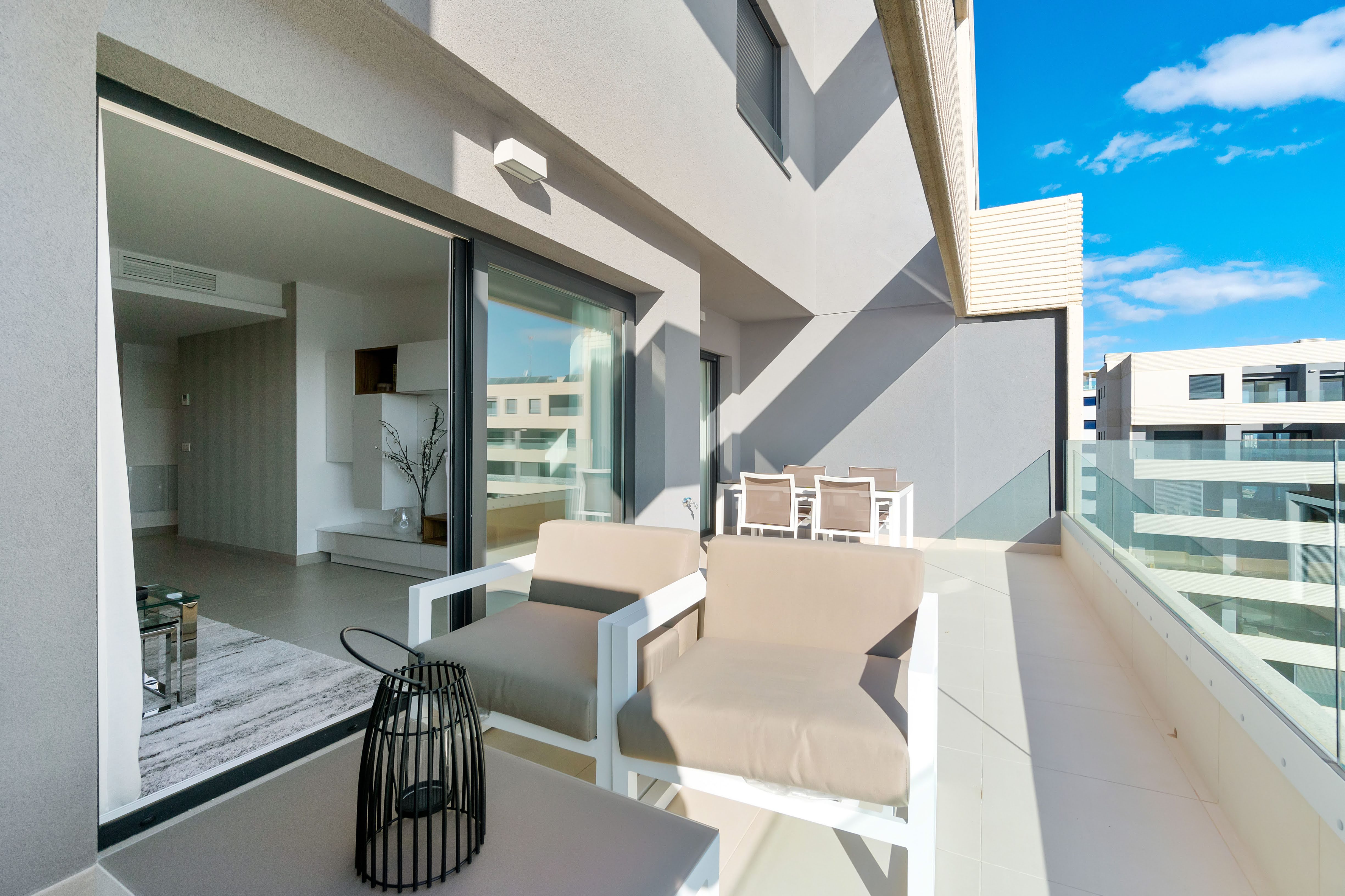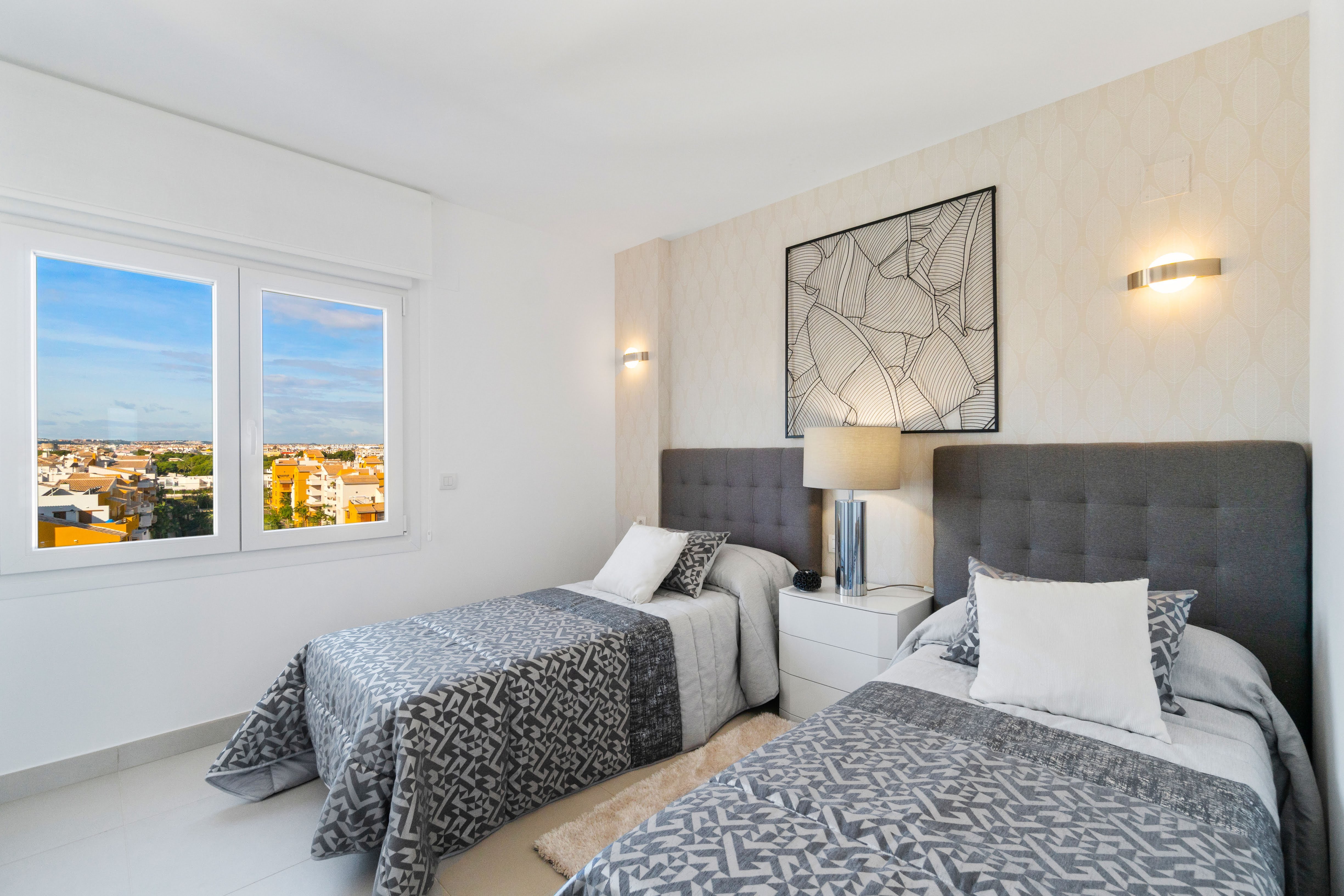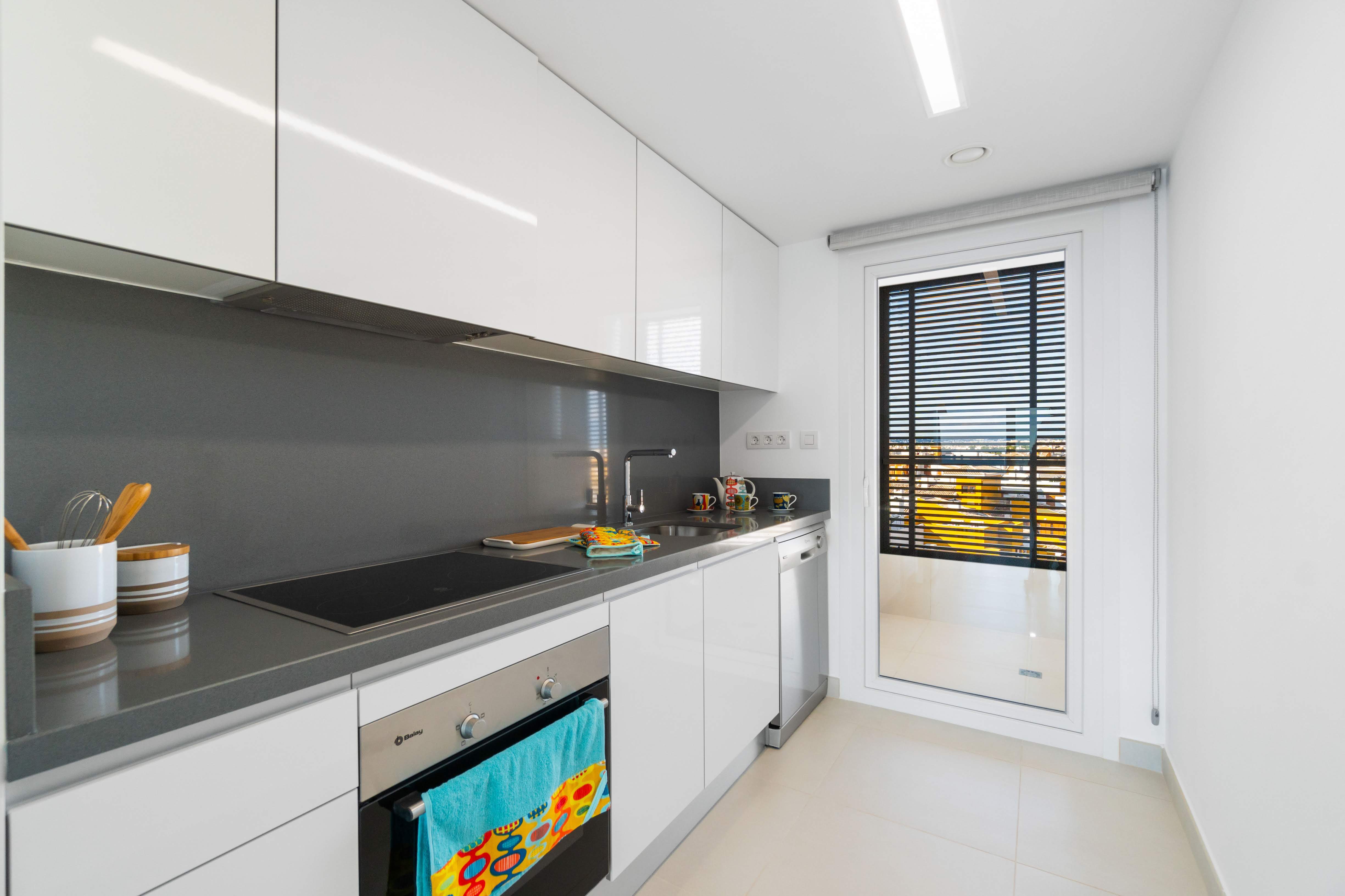Located with just a promenade in between the Mediterranean Sea and Panorama Mar, it’s hard to find a better location on the southern part of Costa Blanca. Panorama Mar consists of 4 blocks with a total of 185 apartments. All with direct sea views. Phase 1, which also is block 1 consists of 58 apartments. The communal garden and swimmingpool area offers 3 swimmingpools (infinity, bathing and children’s pool), jacuzzi and multipurpose sports court. In addition like the rest of the complexes in Señorio de Punta Prima there will be installed CCTV for monitoring accesses and common areas, connectable to Security Service circuit. All apartments in Panorama Mar come with a private underground parking, storage room, conduct air-condition and heated floors in the bathrooms.