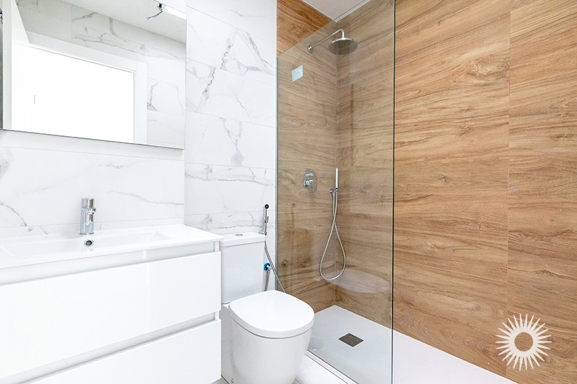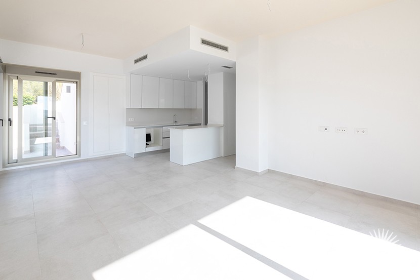 Independent dwelling with pool 7m x 4m and a private parking plot. South facing. Structure made of armed antisytemic concrete. Thermal insulation and sound proofing in all areas of the dwelling. Exterior coatings applied of stonewear, porcelaine and white mortar. Marble or porcelaine staircase. Steel and glass railings on stairs and terrace. Smooth interior paintwork. High and low kitchen furniture with silestone or granite worktops. Vitrivied porcelaine toilets. Bathroom furniture and taps and underfloor heating bathrooms. Niessen electricity supply (or similar), fibre optic, television and telephone. White doors 80 x 2.20 cm with magnetic closure. Armoured security entrance door, aluminum or PVC windows. Insulated and sound proofed windows. Automatic blinds. Panelled entrance and parking door. Energy saving hot water boiler arothermic with 100 litres capacity .Pre- istallation of air conditioning duct in all dwellings. Intercom at entrance to the plot. Steel perimeter, pedestrian access and vehicles. Solarium access, fenced plot and lighting on swimming pool.