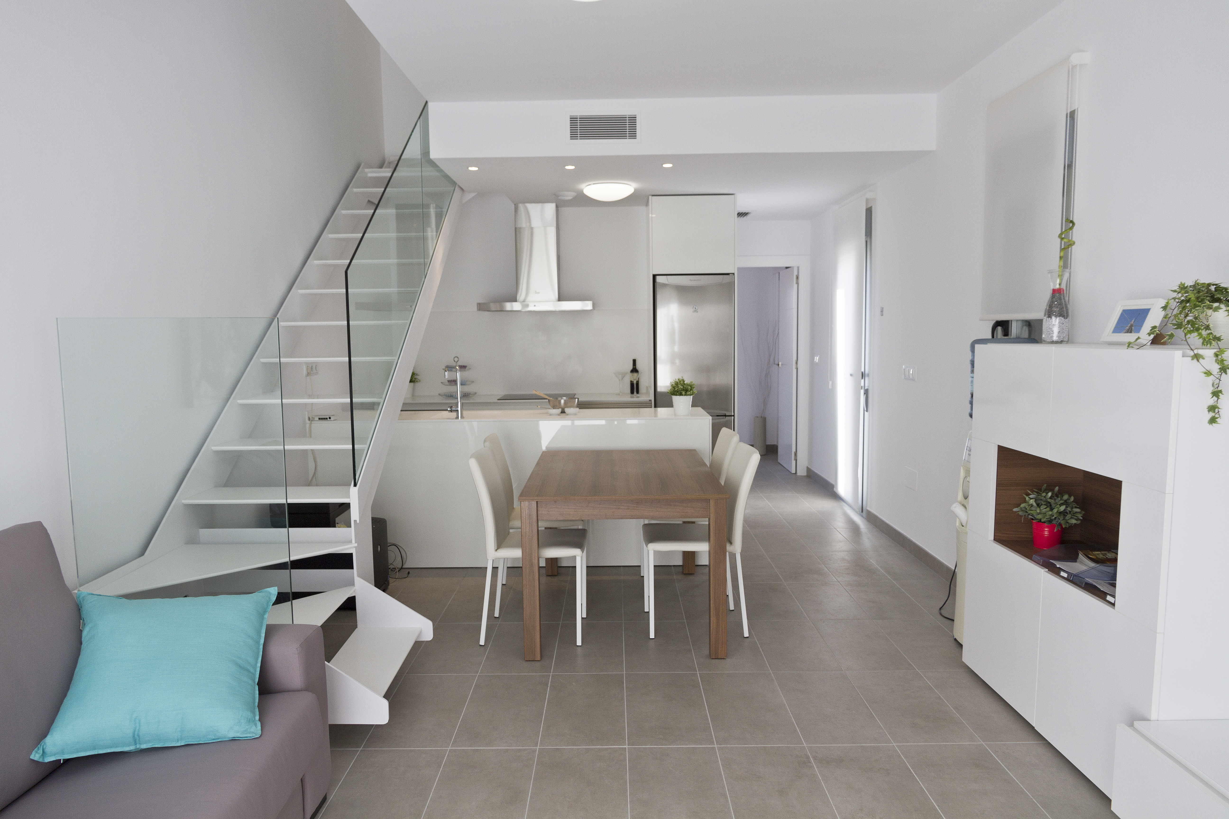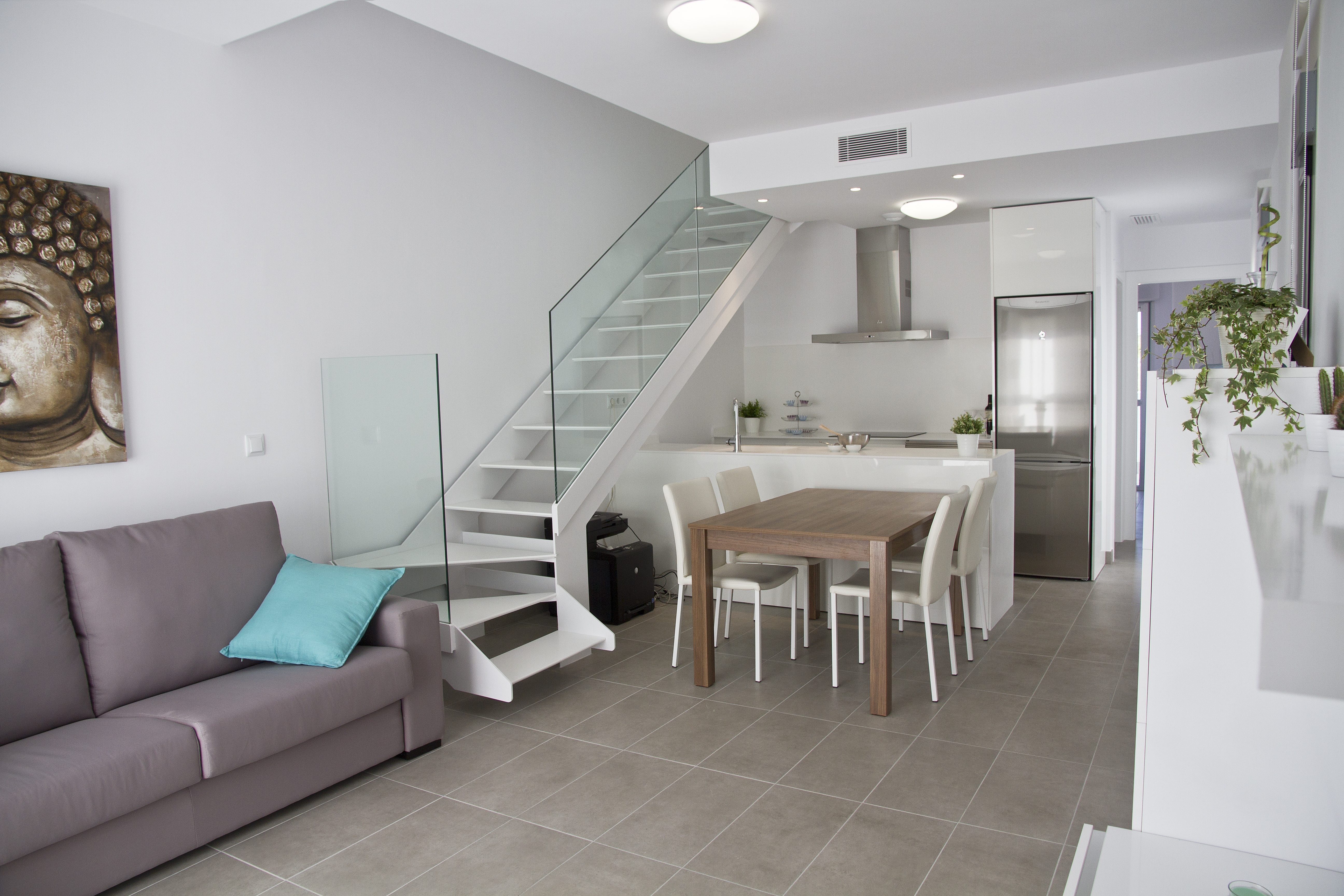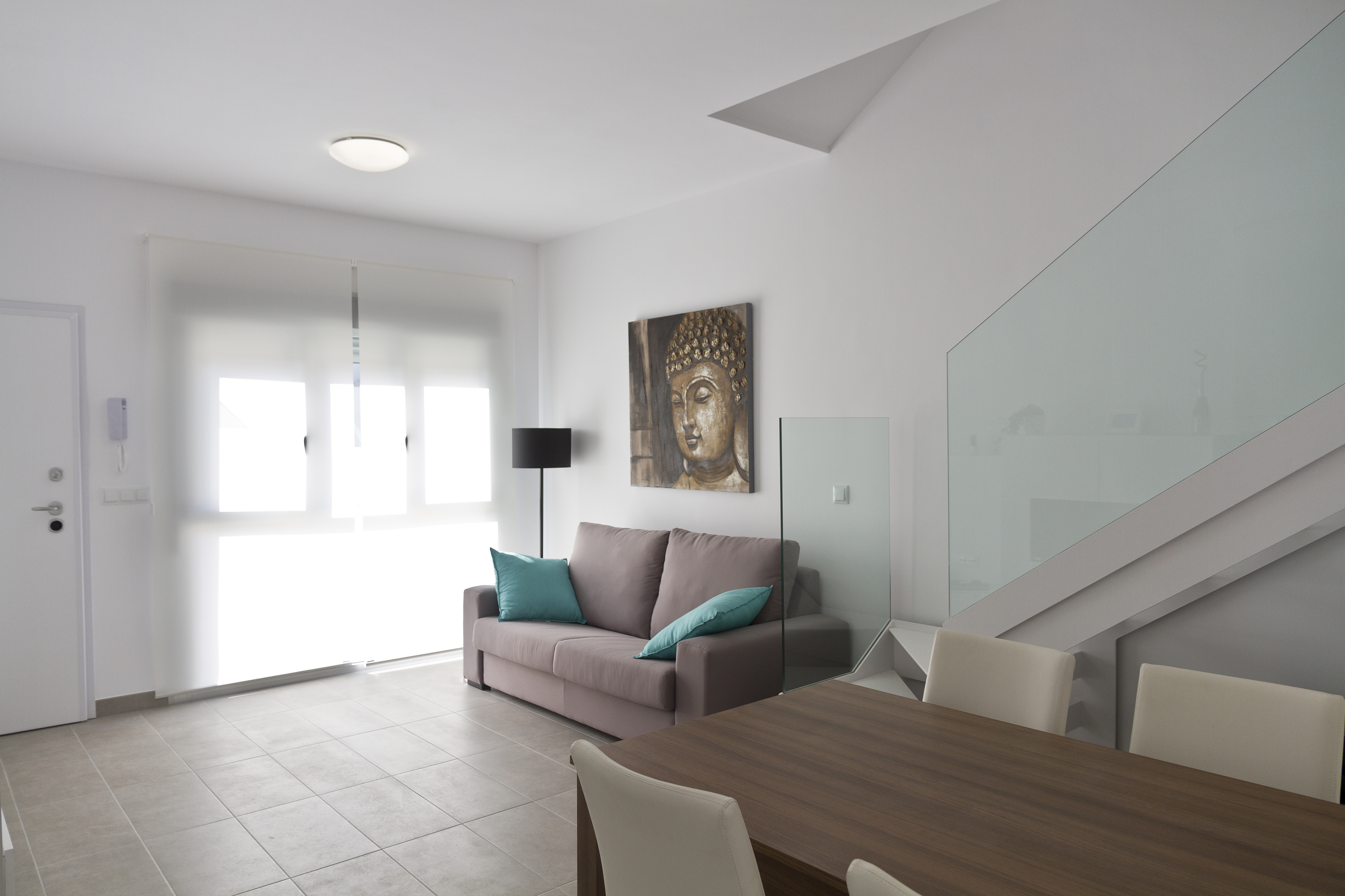 A development of just ten town house style houses, all with 3 bedrooms / 2 bathrooms, each having it's own garden and private roof solarium, whilst there is also a communal pool within the development and underground parking included in the price.