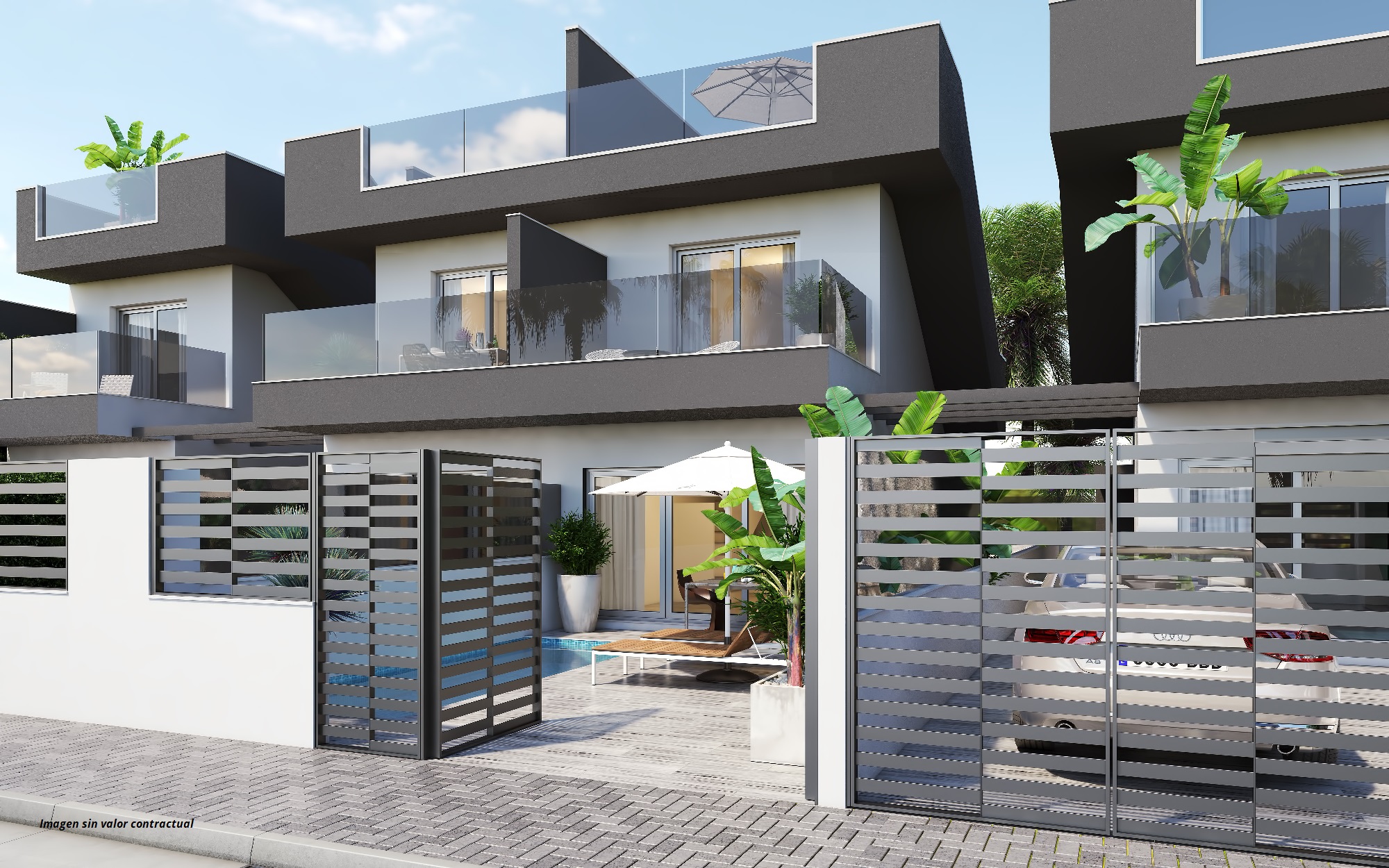 These beautiful 3 bedroom 3 bathroom townhouses come with a private swimming pool and solarium and are located only 150 metres from the stunning sandy beach of Higuericas, Torre de la Horadada.