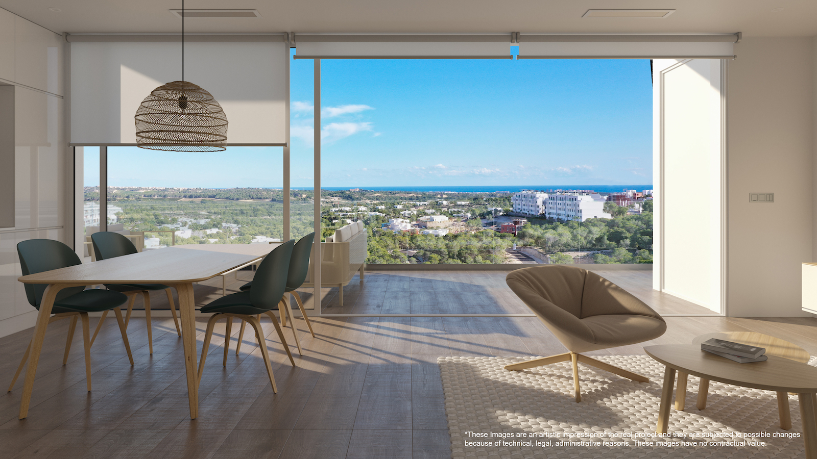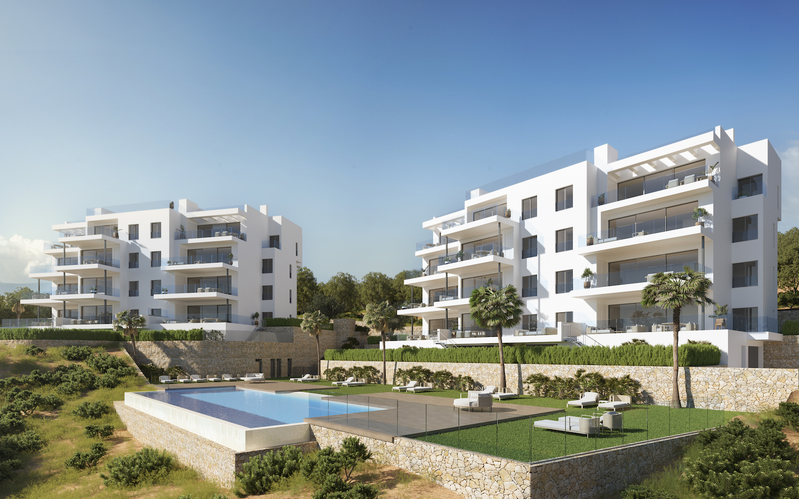 With luxury finishes, you can choose between ground floors with spacious gardens, middle floor apartments with large terraces, or penthouses with terrace and solarium. All homes include underfloor heating in bathrooms, air conditioning ducts, domotic system, osmosis system, bathroom furniture, electric shutters and security door with video intercom, among others.
