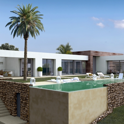 This villa is a design made by the Swiss architect Massimo Di Caudo. An architectural concept based on clear, cubic and functional lines in a unique enclave.