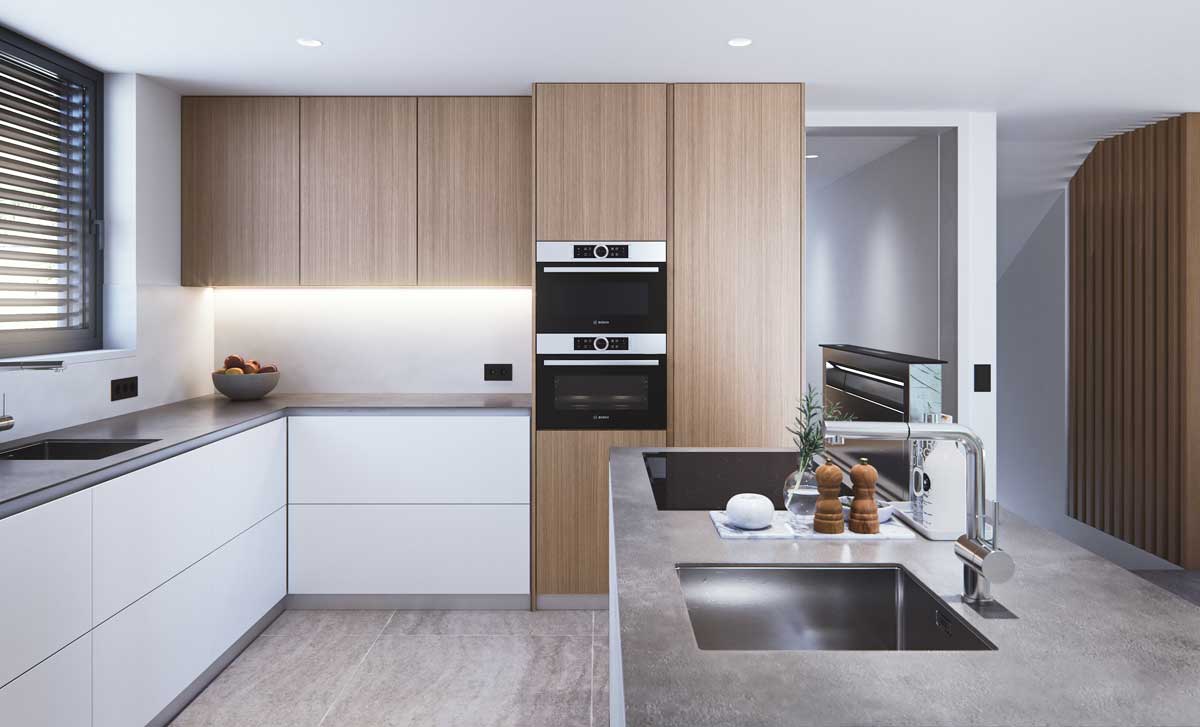 Thanks to large windows from floor to ceiling that make the most of natural light, warm and cozy rooms are obtained. The kitchen is completely customizable, modern and elegant, and it includes high-end appliances embedded in the design, furthermore, It also includes an integrated wine cellar.