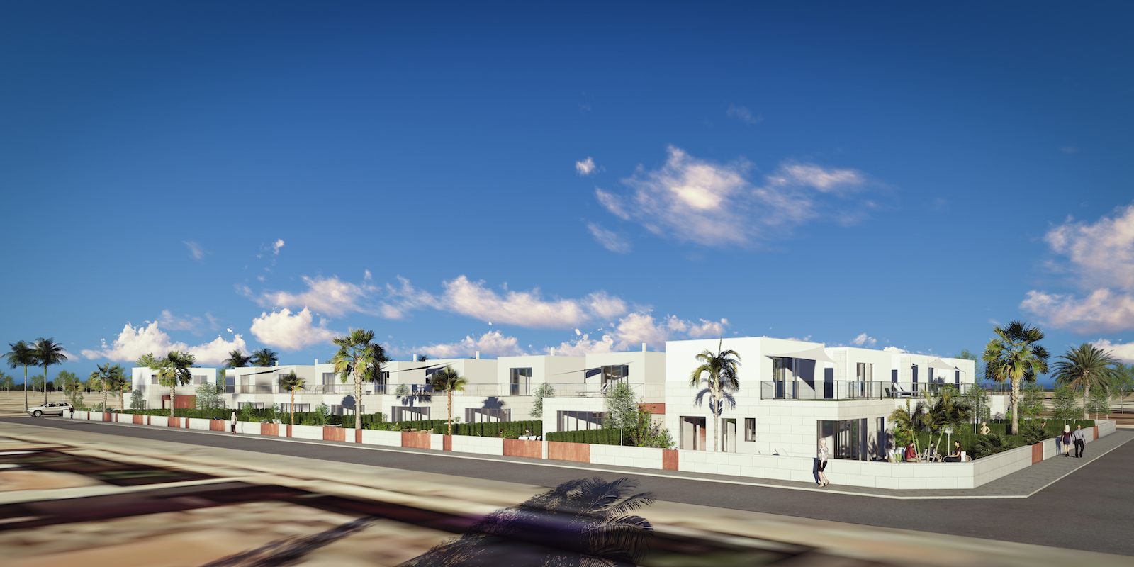 Complex of 22 detached villas in Los Alcázares, Costa Calida. Located in a quiet area near La Serena Golf Course, very close to the beach, sports facilities and the town centre, with all the services and amenities.