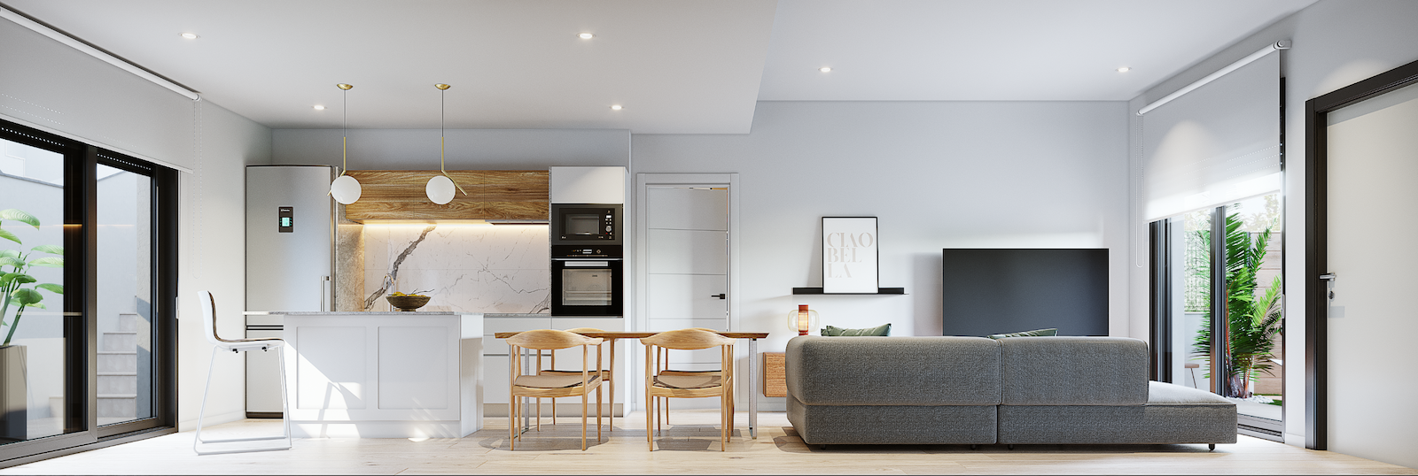 Each property has 2 or 3 bedrooms and 2 fitted bathrooms. Designed with a contemporary style and open plan concept, comprising a fitted kitchen and lounge-dining room.