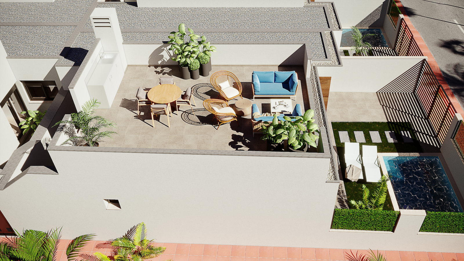 The development is located in Dolores de Pacheco (Murcia), near Los Alcázares, surrounded by services, parks, sports facilities, near several Golf Courses such as Roda Golf and La Serena Golf, plus being 5 minutes far from beach.