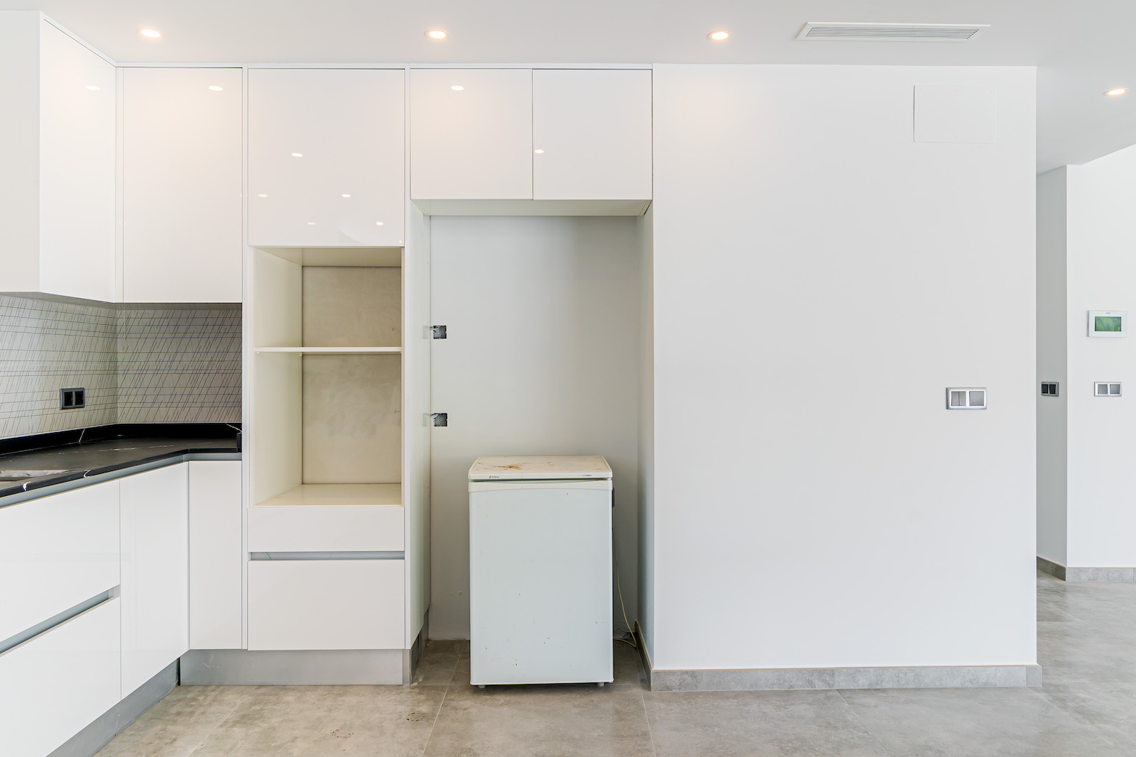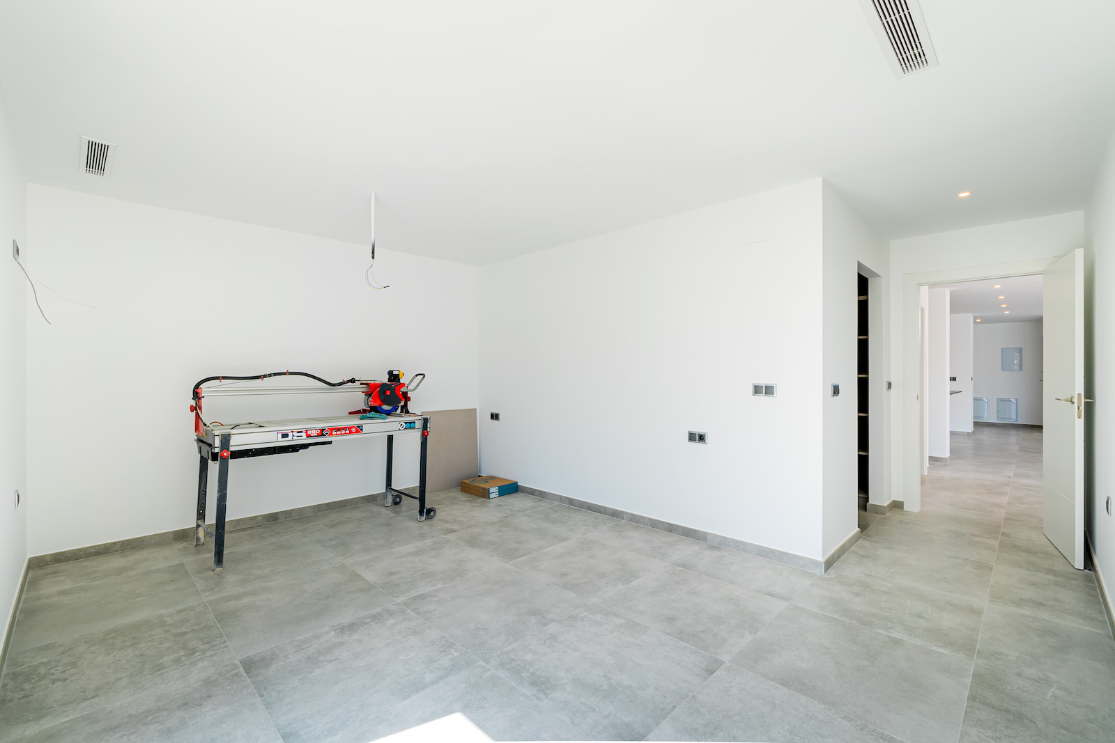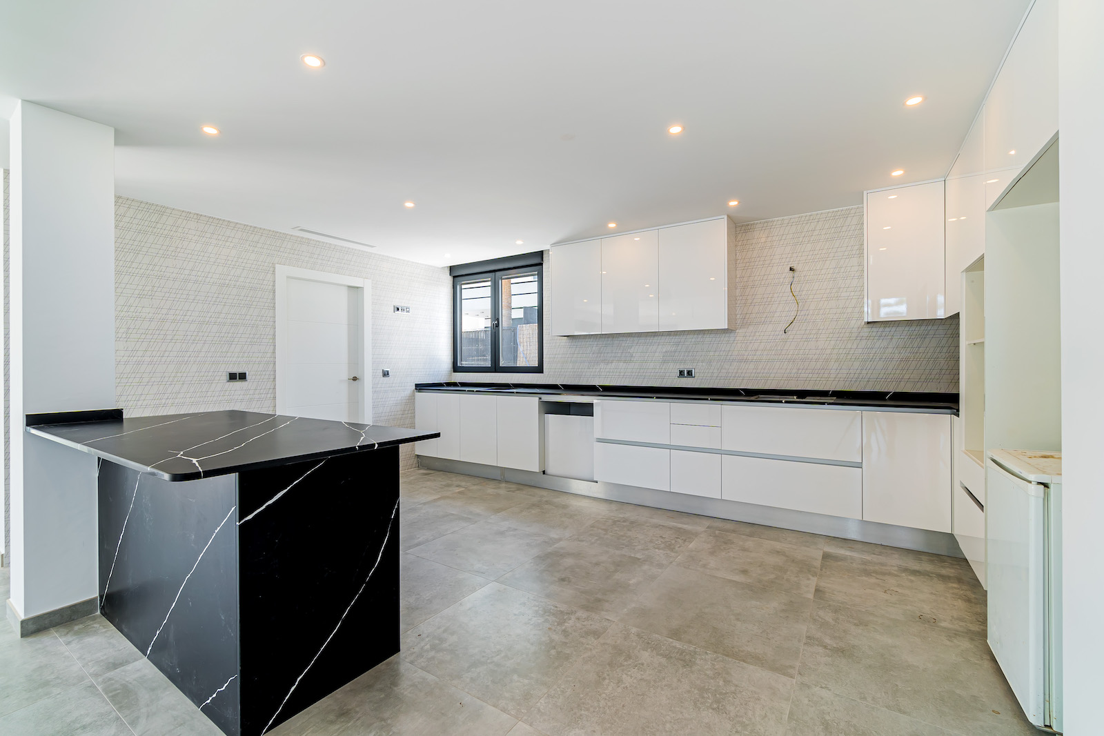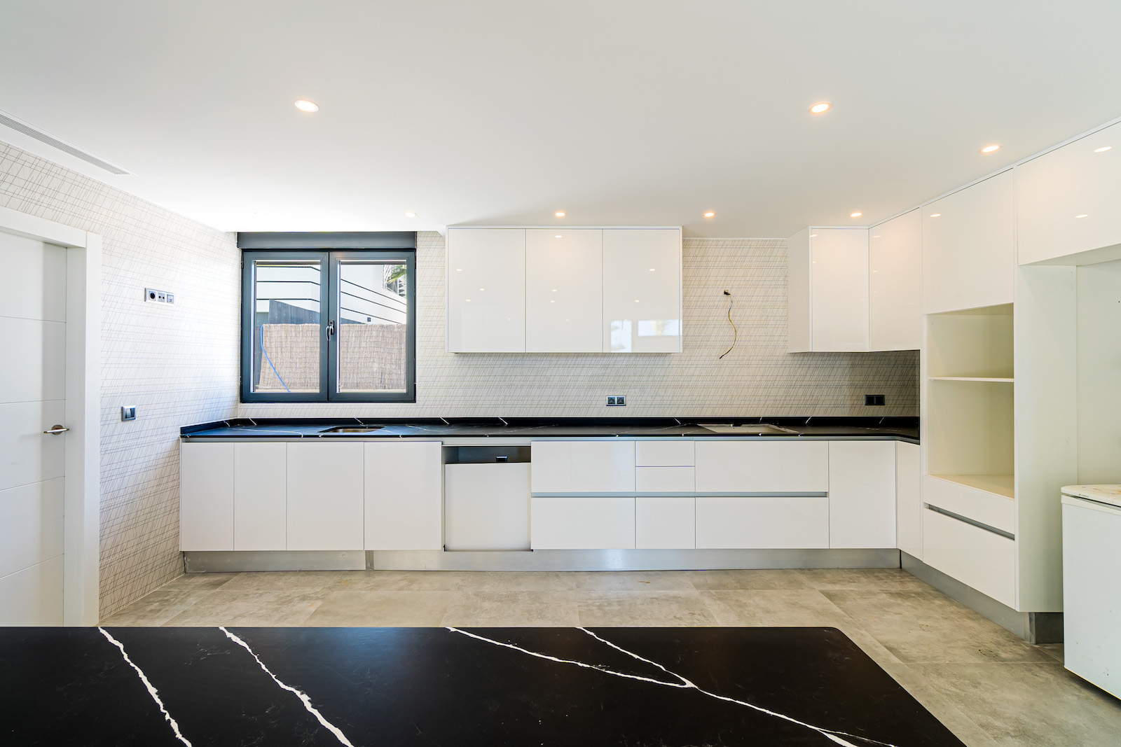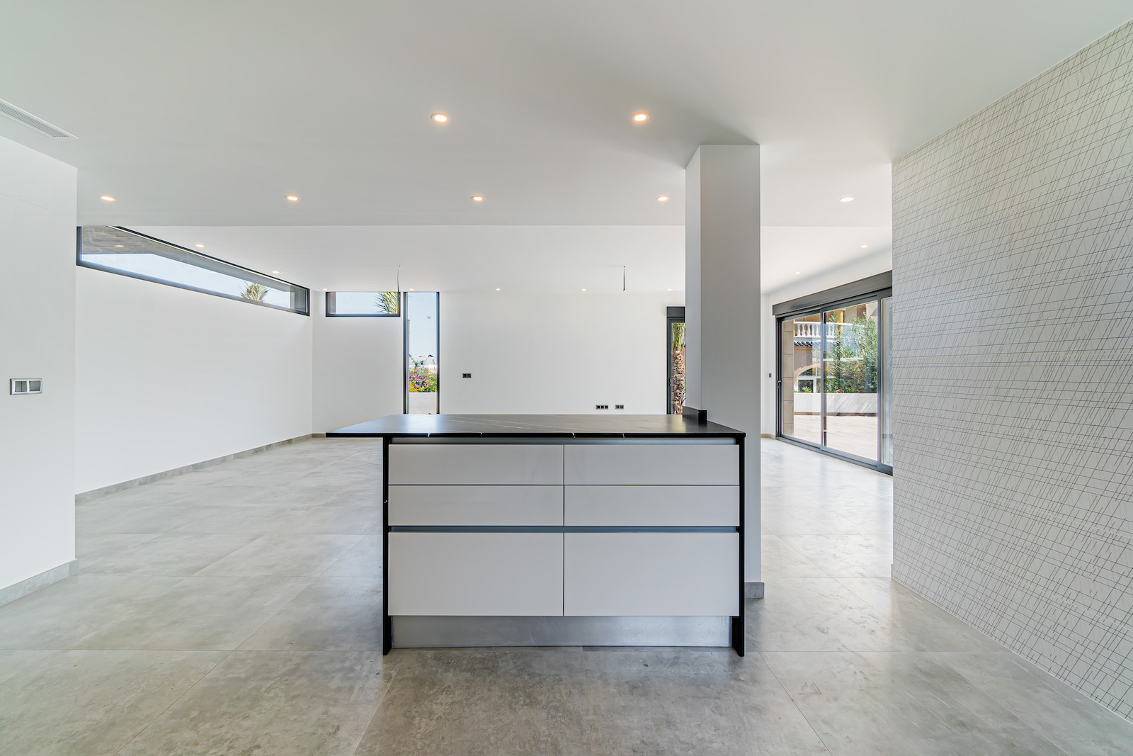 GROUND FLOOR: Ultra modern living room with kitchen, 1 toilet, 1 master bedroom with dressing room and on-suite bathroom, all on the same level, with direct access to the garden & Swimming pool area.
