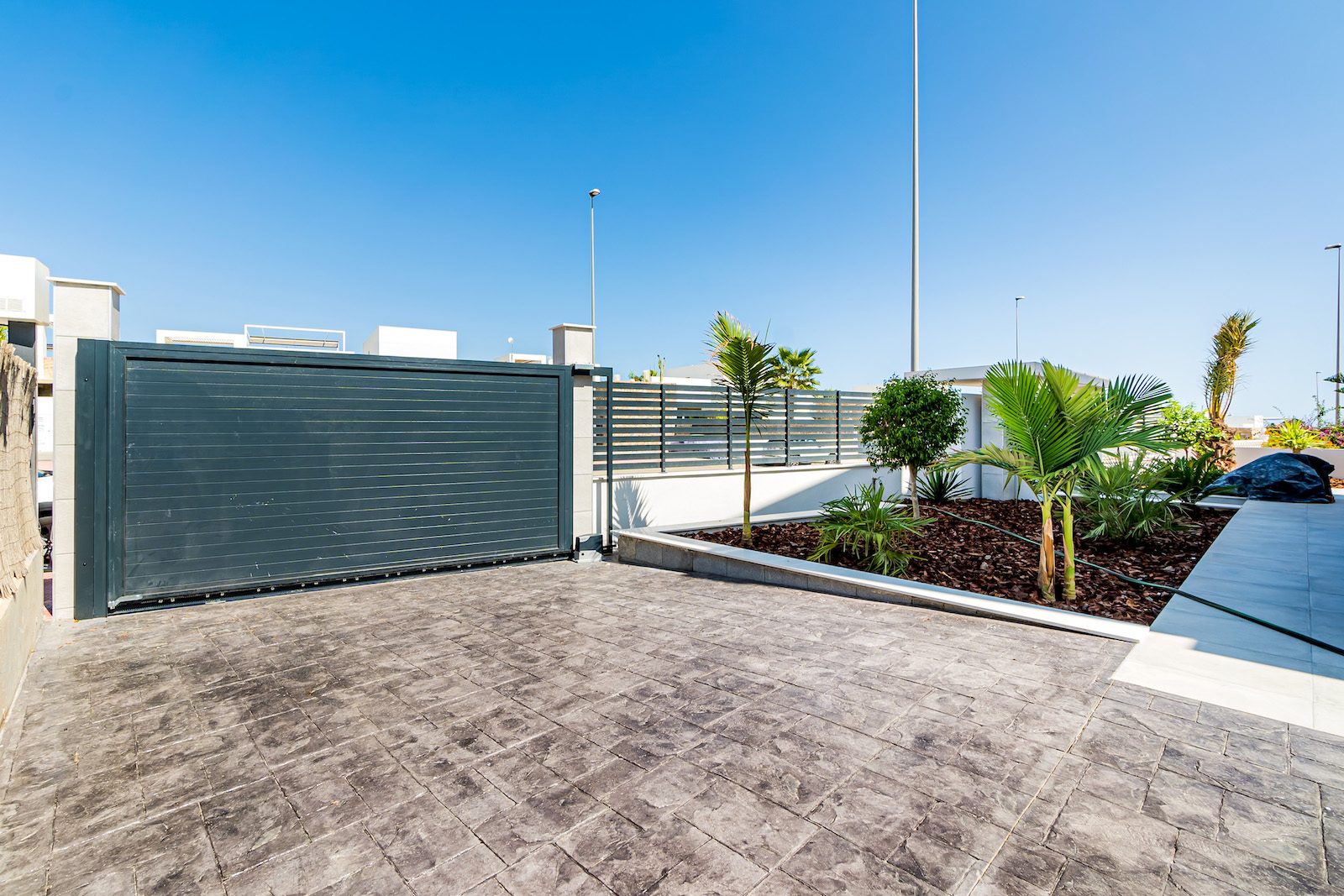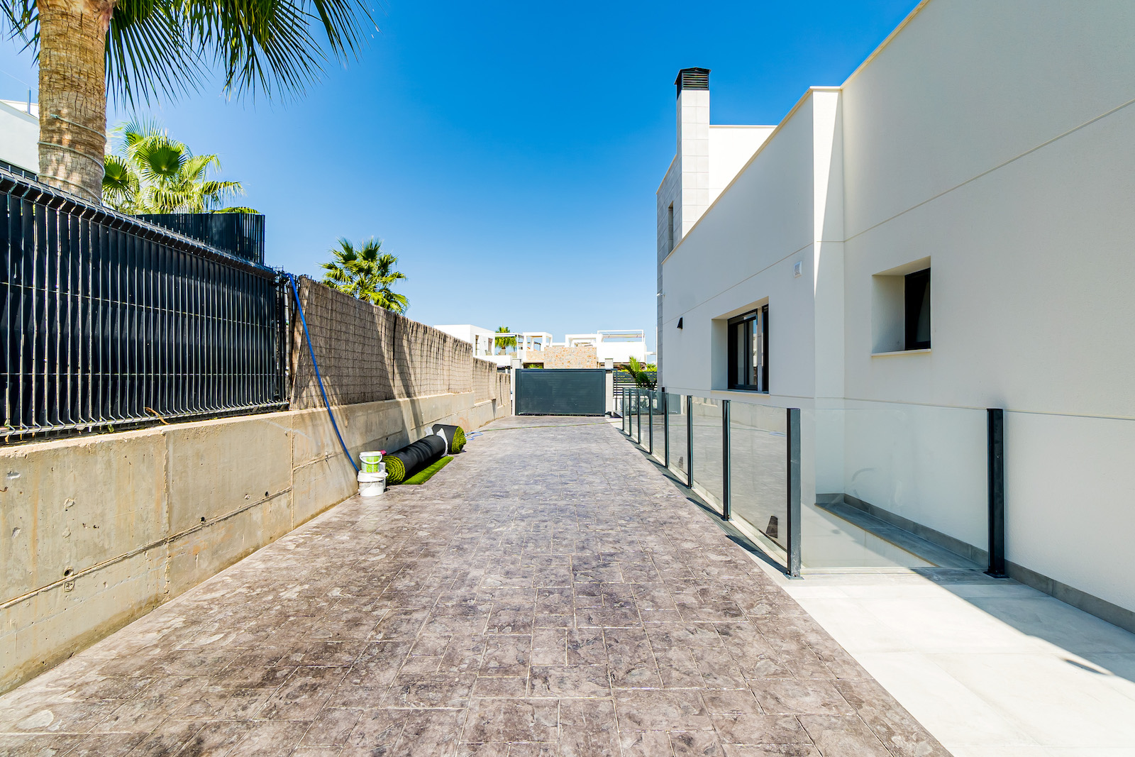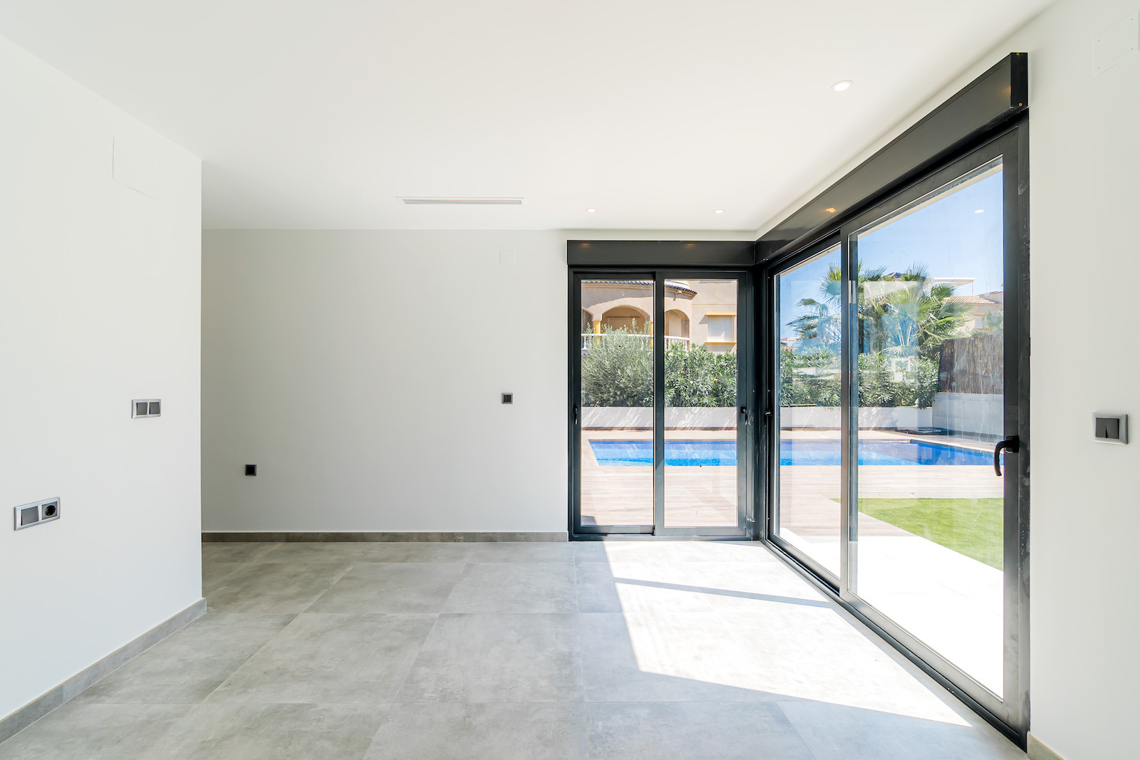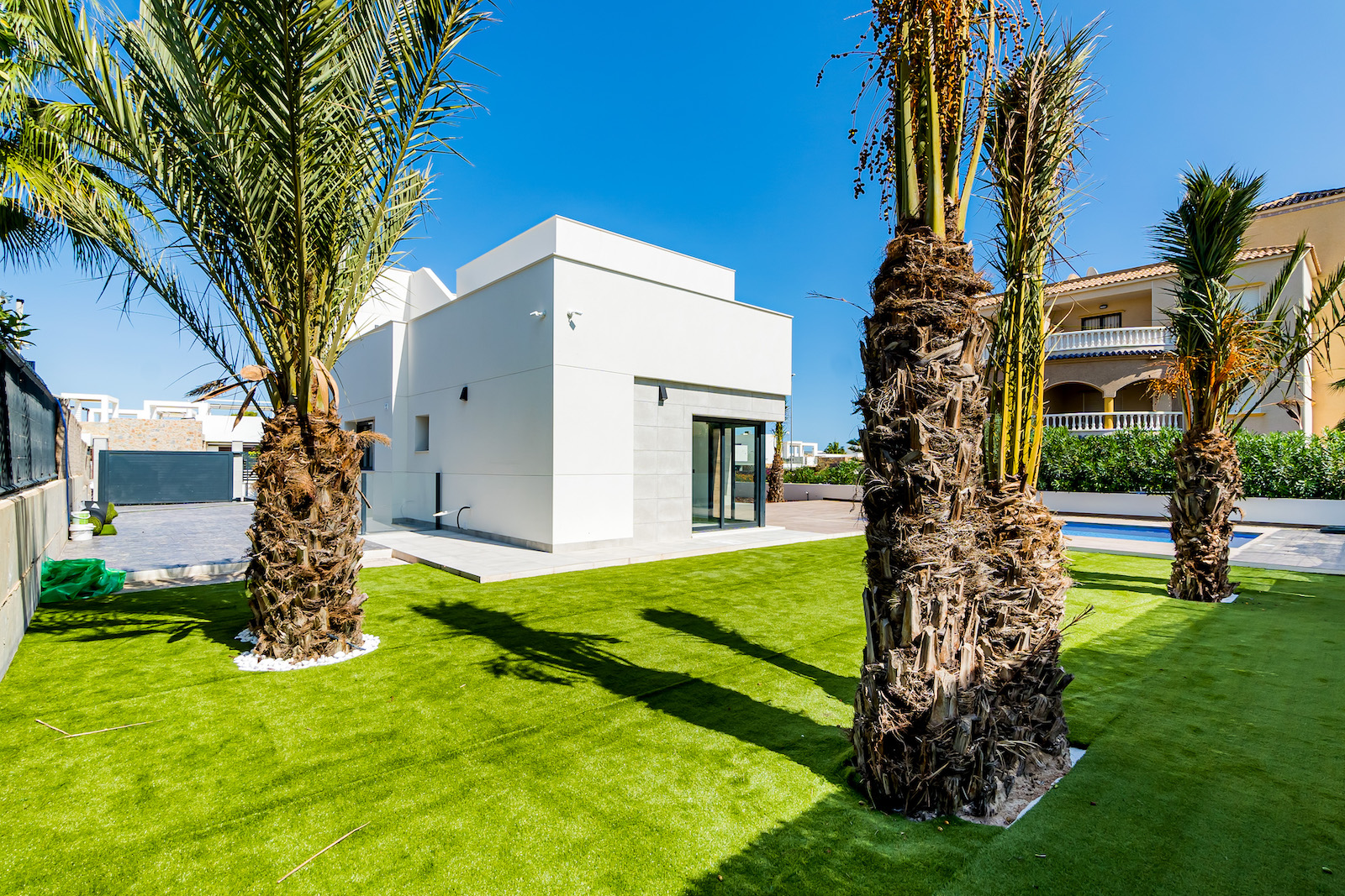 Private parking spaces for 3 cars, sea-views & private swimming pool.