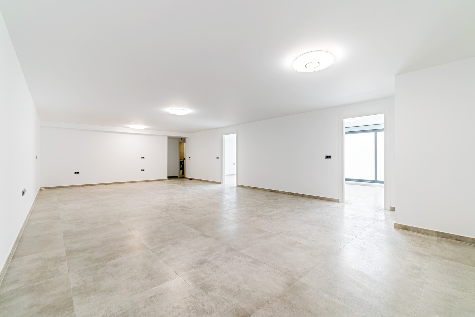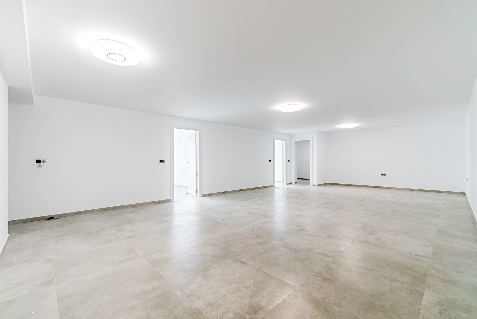 150 Sq m naturally lit basement with various rooms.