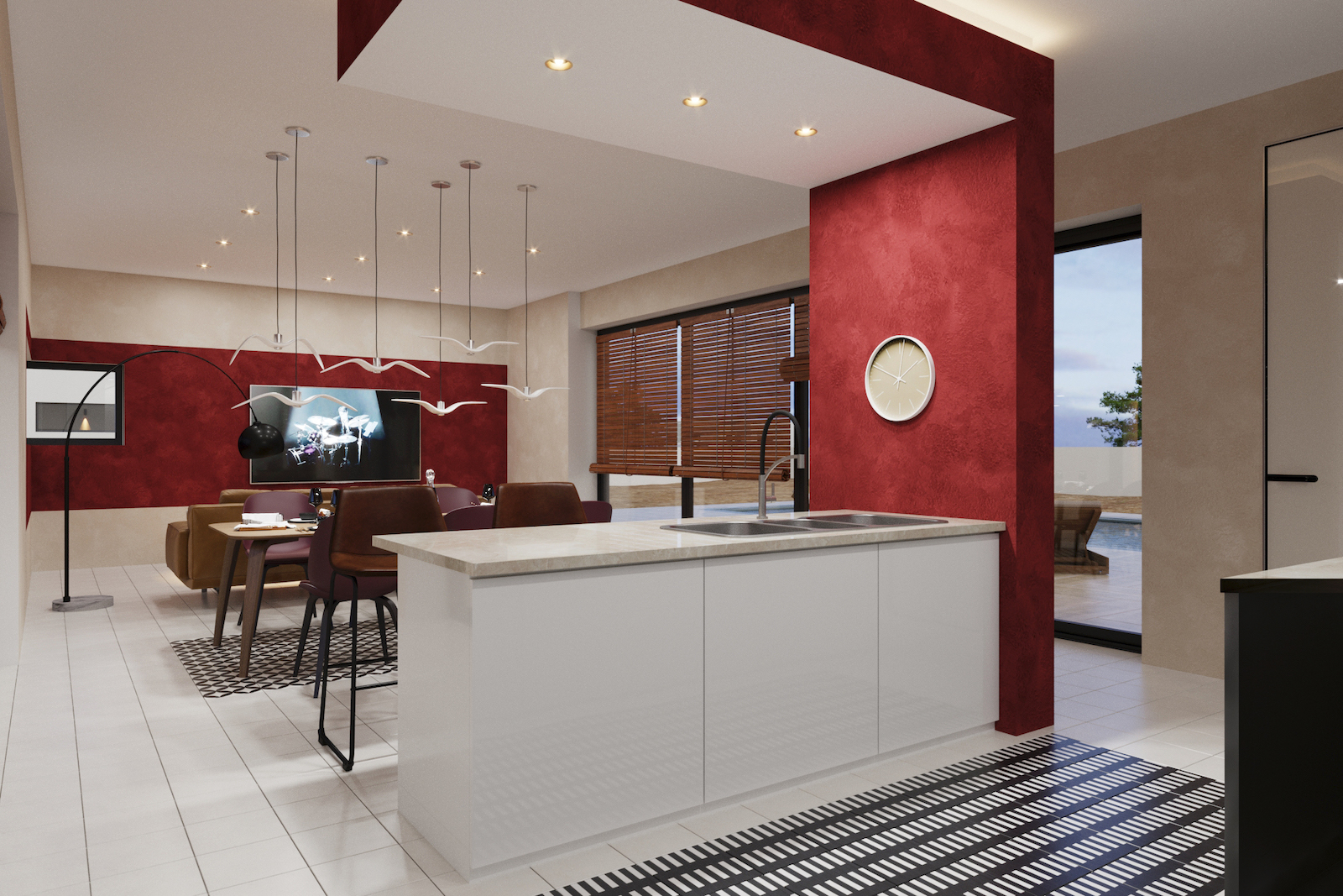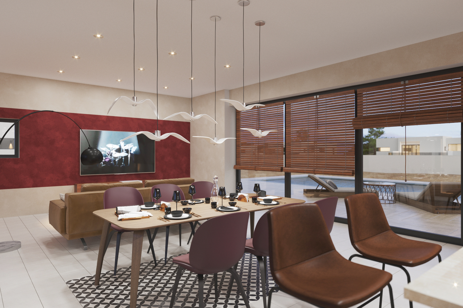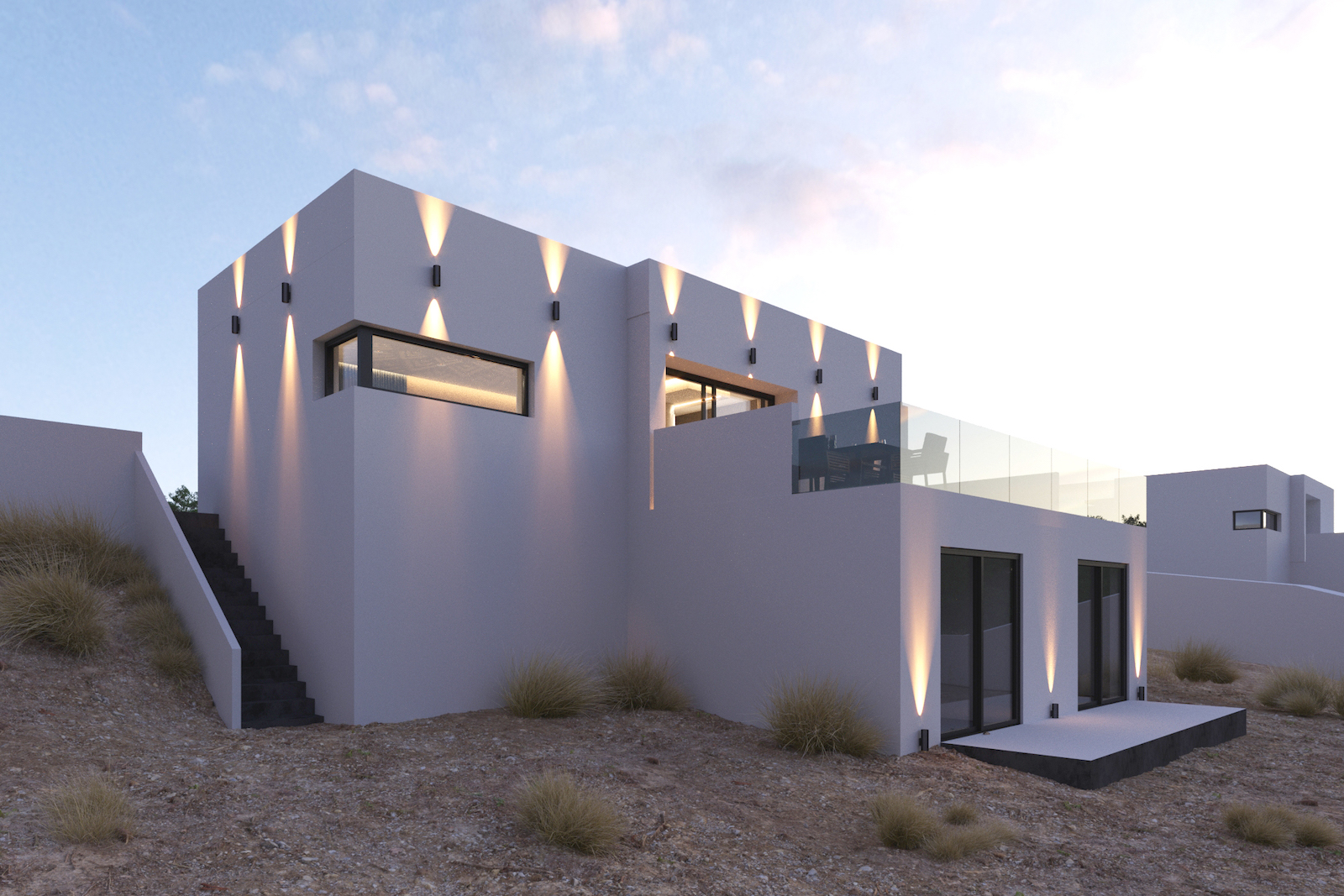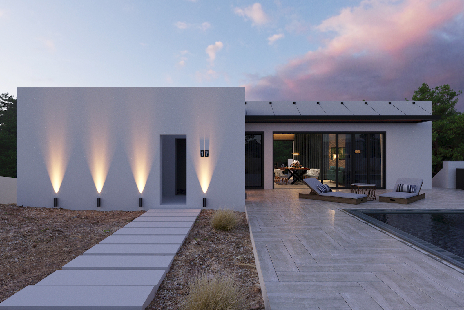 Private parking spaces for various cars, landscape views & private swimming pool.