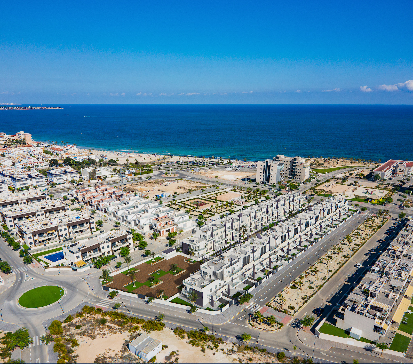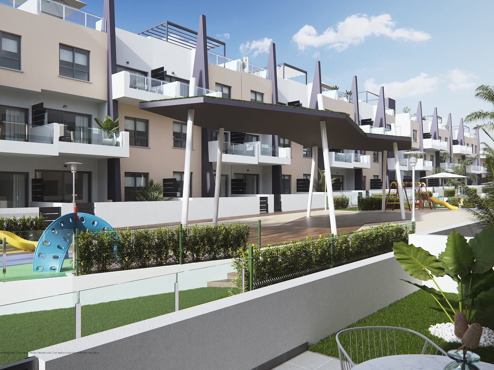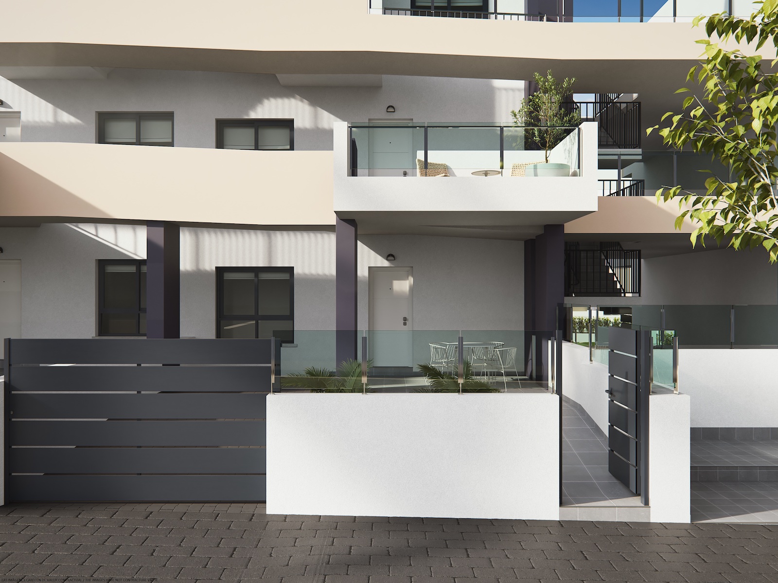 Residential of 104 apartments of 2 and 3 bedrooms with 2 bathrooms. Ground floors with garden and parking, first floor with balcony and terrace and penthouses with private solariums. Houses buildings with high quality materials and innovative design. Residential completed gated with perimetral wall, pedestrian access, wide communal areas with swimming pools, playground and leisure area and circuit healthy machines area for adults. Located in Mil Palmeras site, very near to the beach, surrounded by green areas and close to recreational areas, like golf courses and shopping centers.