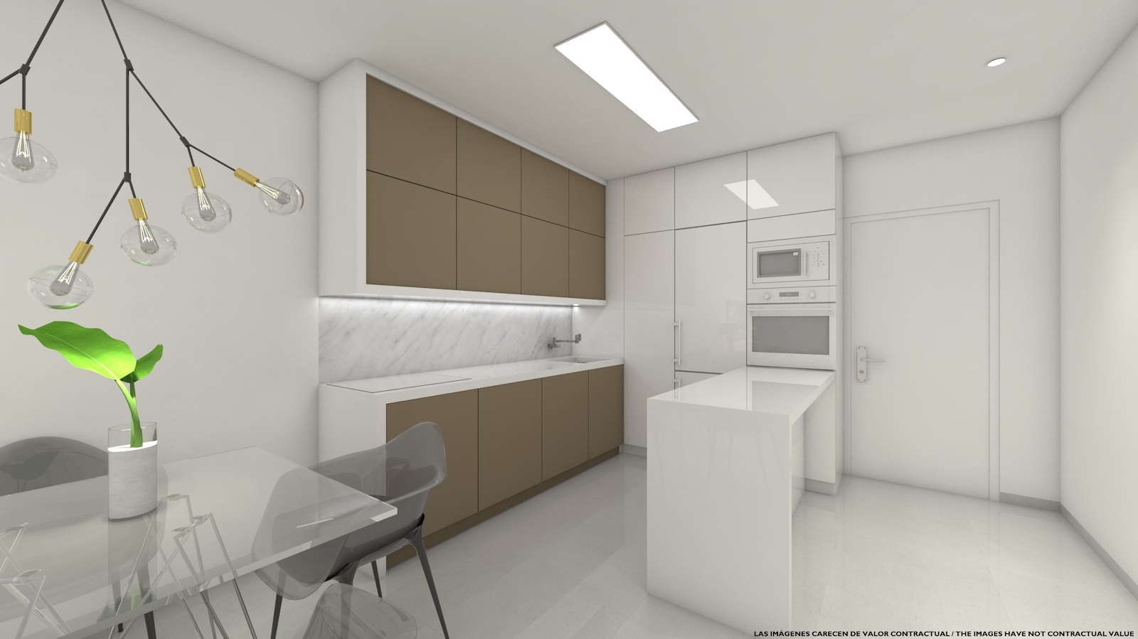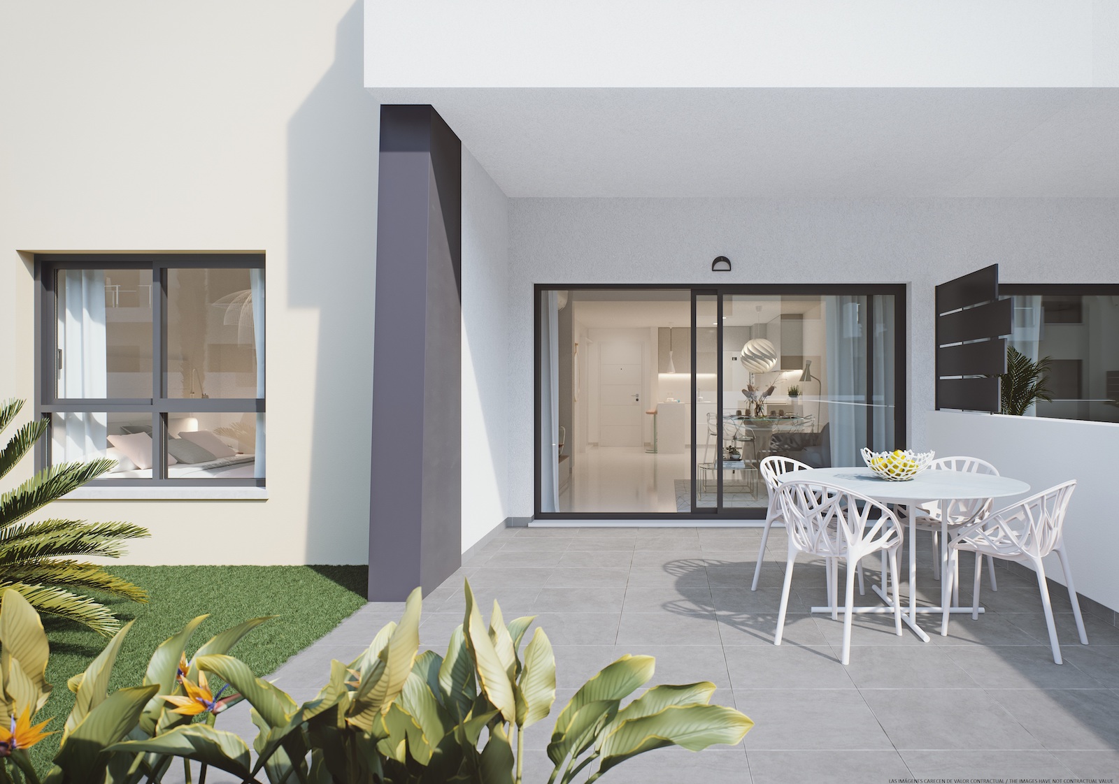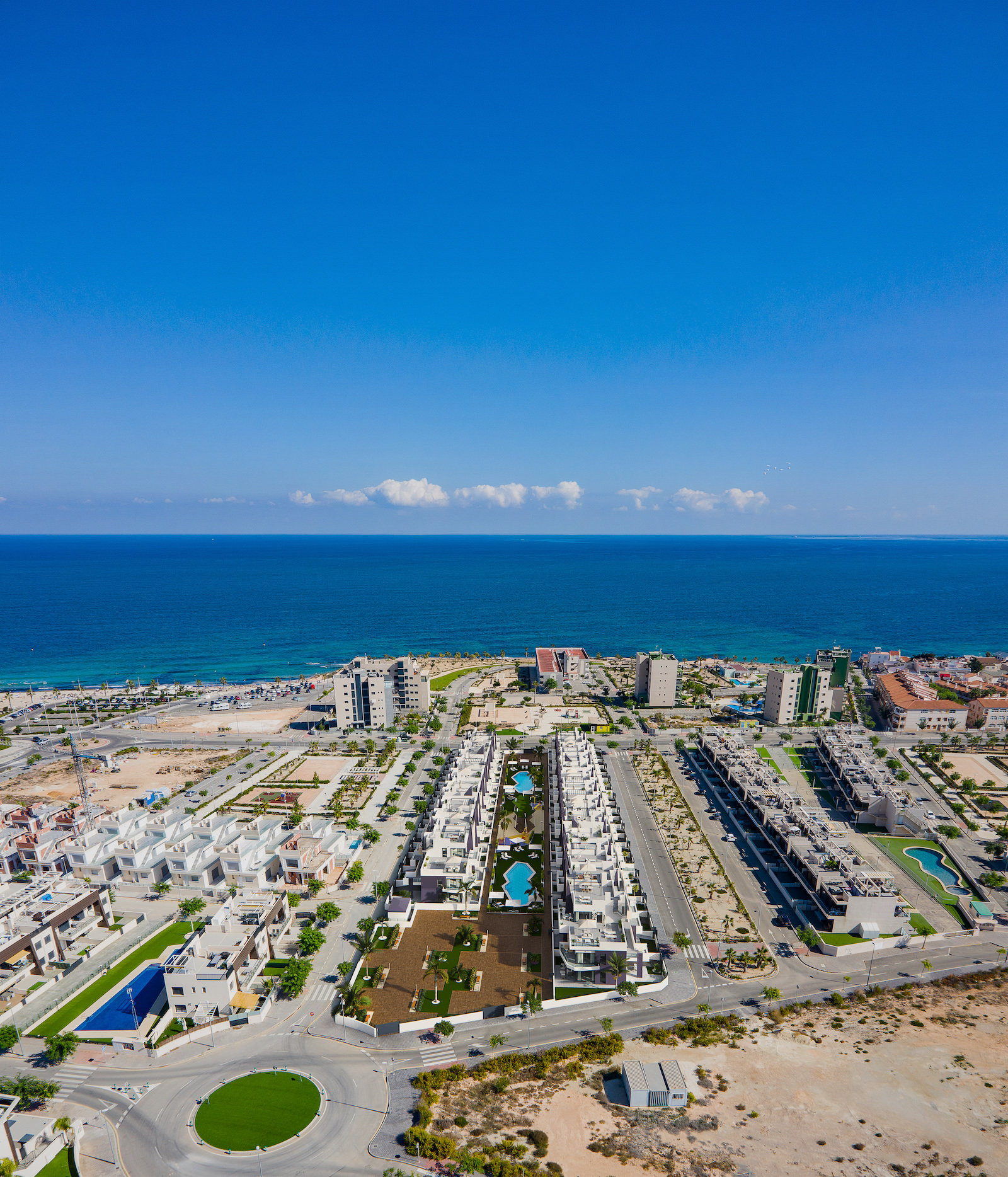 Residential of 104 apartments of 2 and 3 bedrooms with 2 bathrooms. Ground floors with garden and parking, first floor with balcony and terrace and penthouses with private solariums. Houses buildings with high quality materials and innovative design. Residential completed gated with perimetral wall, pedestrian access, wide communal areas with swimming pools, playground and leisure area and circuit healthy machines area for adults. Located in Mil Palmeras site, very near to the beach, surrounded by green areas and close to recreational areas, like golf courses and shopping centers.