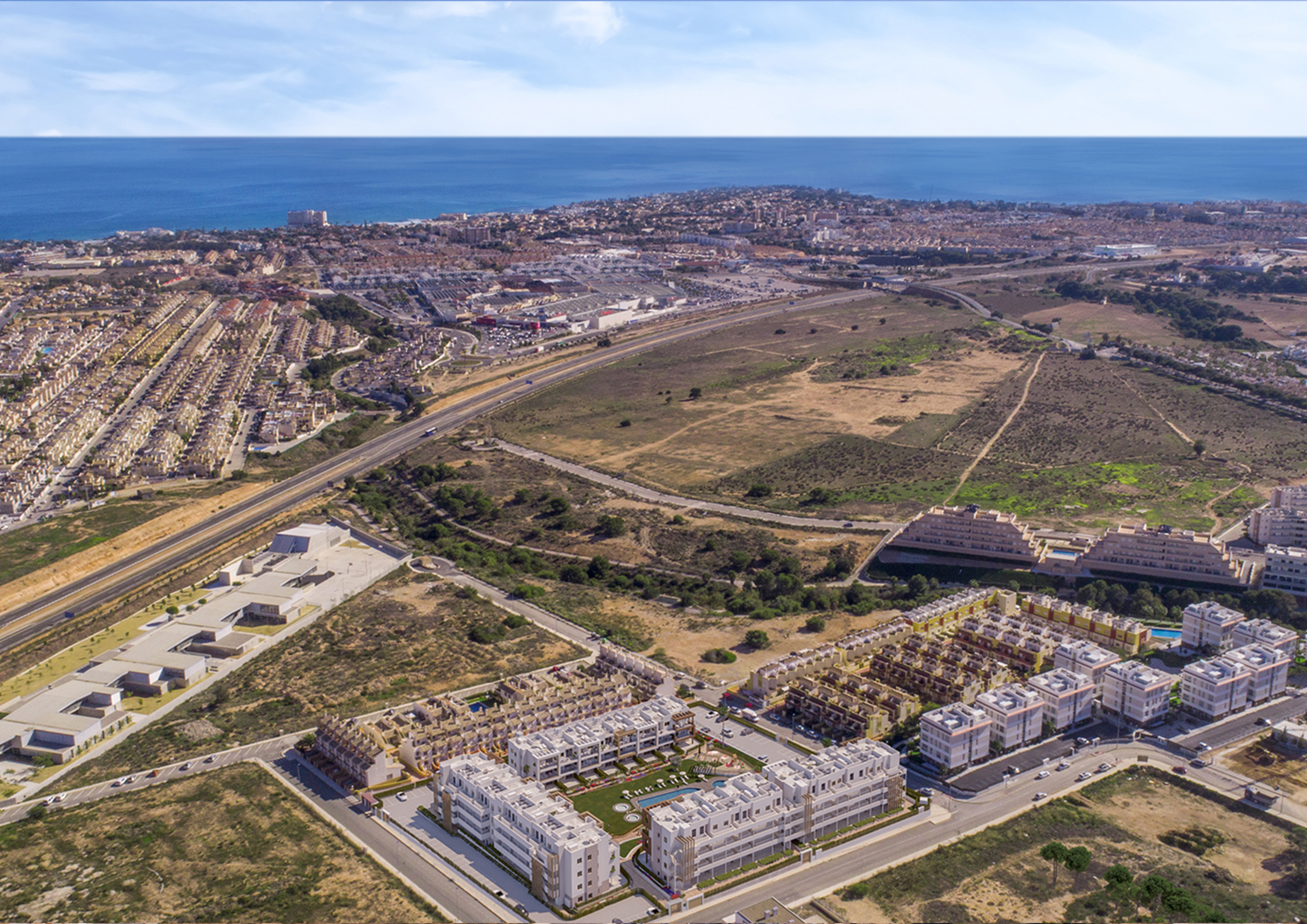 Large cubic terraces dominate this complex, with easy access to the nearby beach. Its modern apartments encircle a large swimming pool for adults, adjoining the kids pool.
