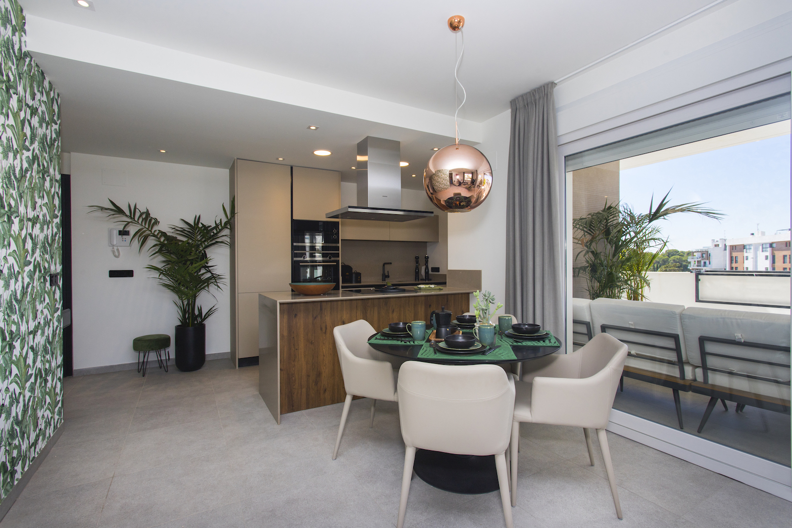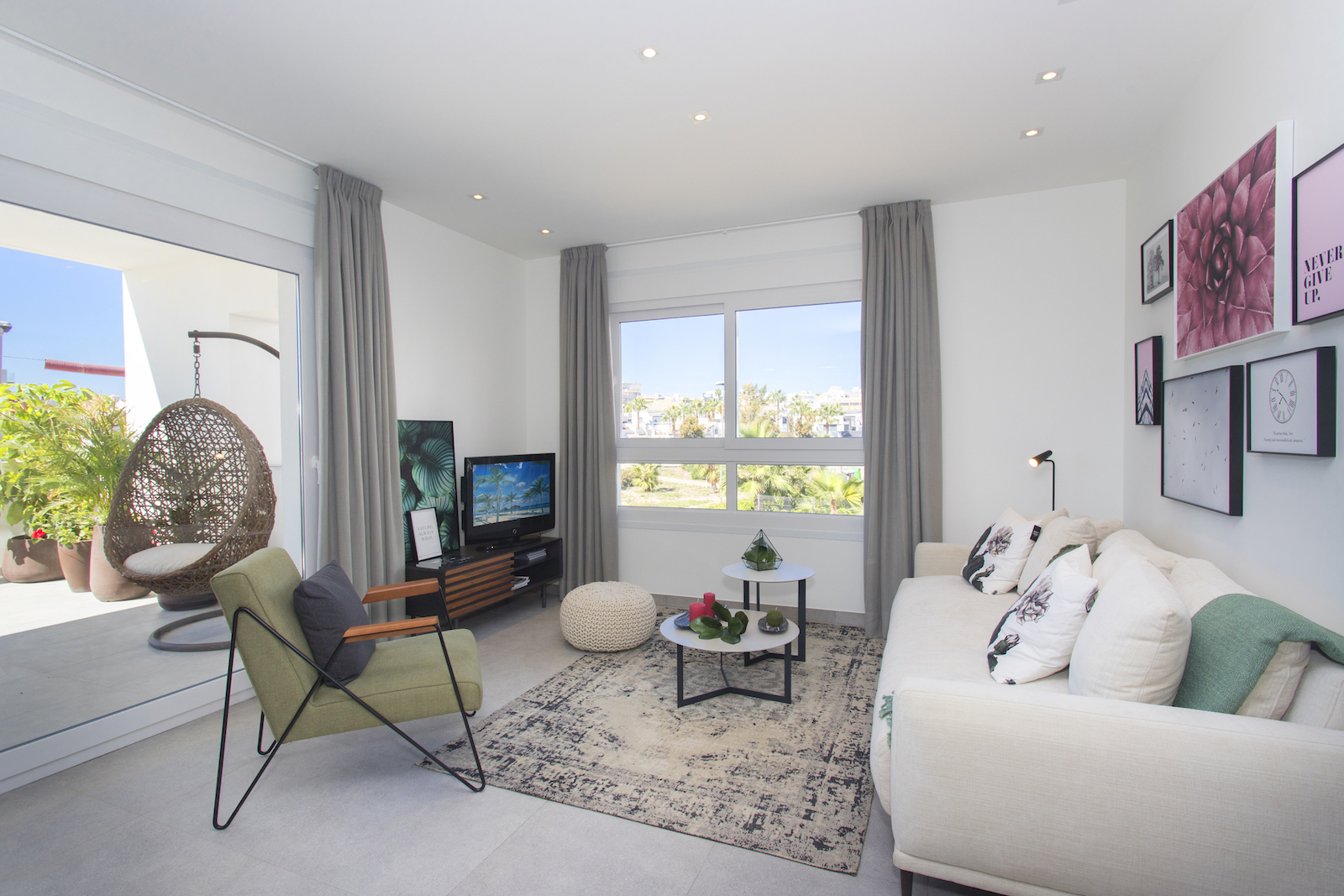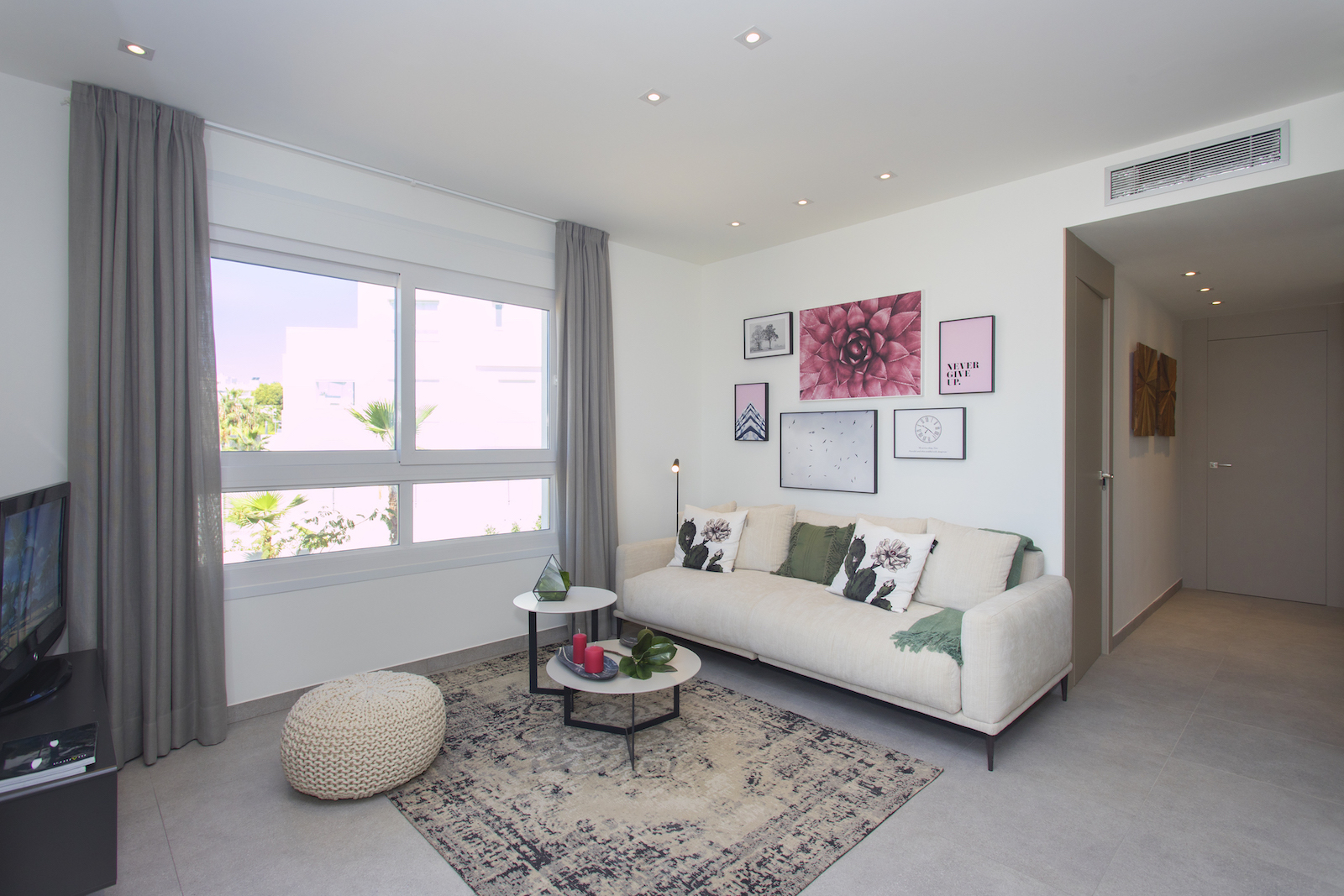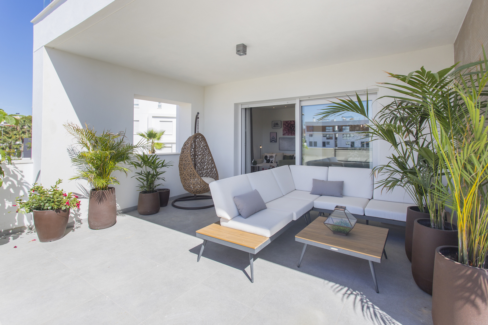 2 and 3 bed Maio Apartments in Villamartin This new development with 3 blocks of apartments is built in one of the most popular areas of Villamartin. The first block of 4 floors is now on sale. It is composed by 13 modern apartments with 2 or 3 bedrooms with a living area varying from 68 to 102 m2. They all offer large terraces from 20 to 66m2, high quality finish and spacious communal green areas with swimming pool. The building also offers two exclusive duplex penthouse apartments divided over two floors and with private roof terraces of 44m2, offering nice views of the surrounding area. You have the possibility to buy an underground parking space and storage room. This project is surrounded by three golf courses, within short walking distance to La Fuente commercial center and only a short drive from the amazing beaches of Orihuela Costa.