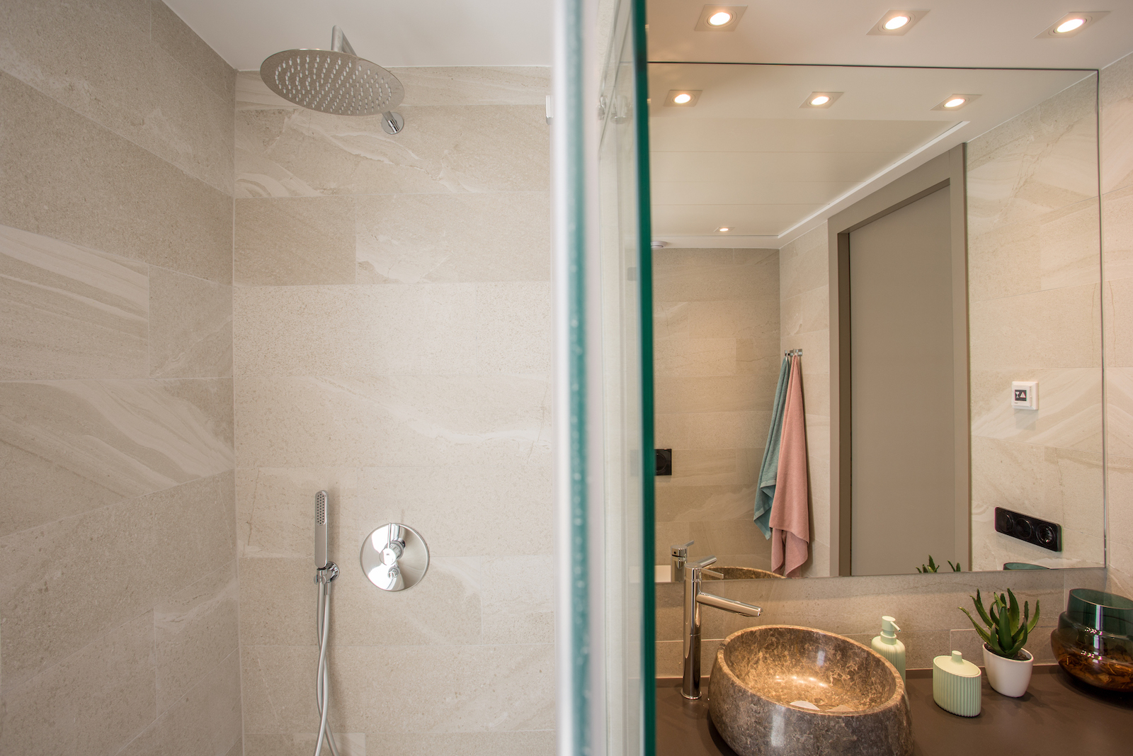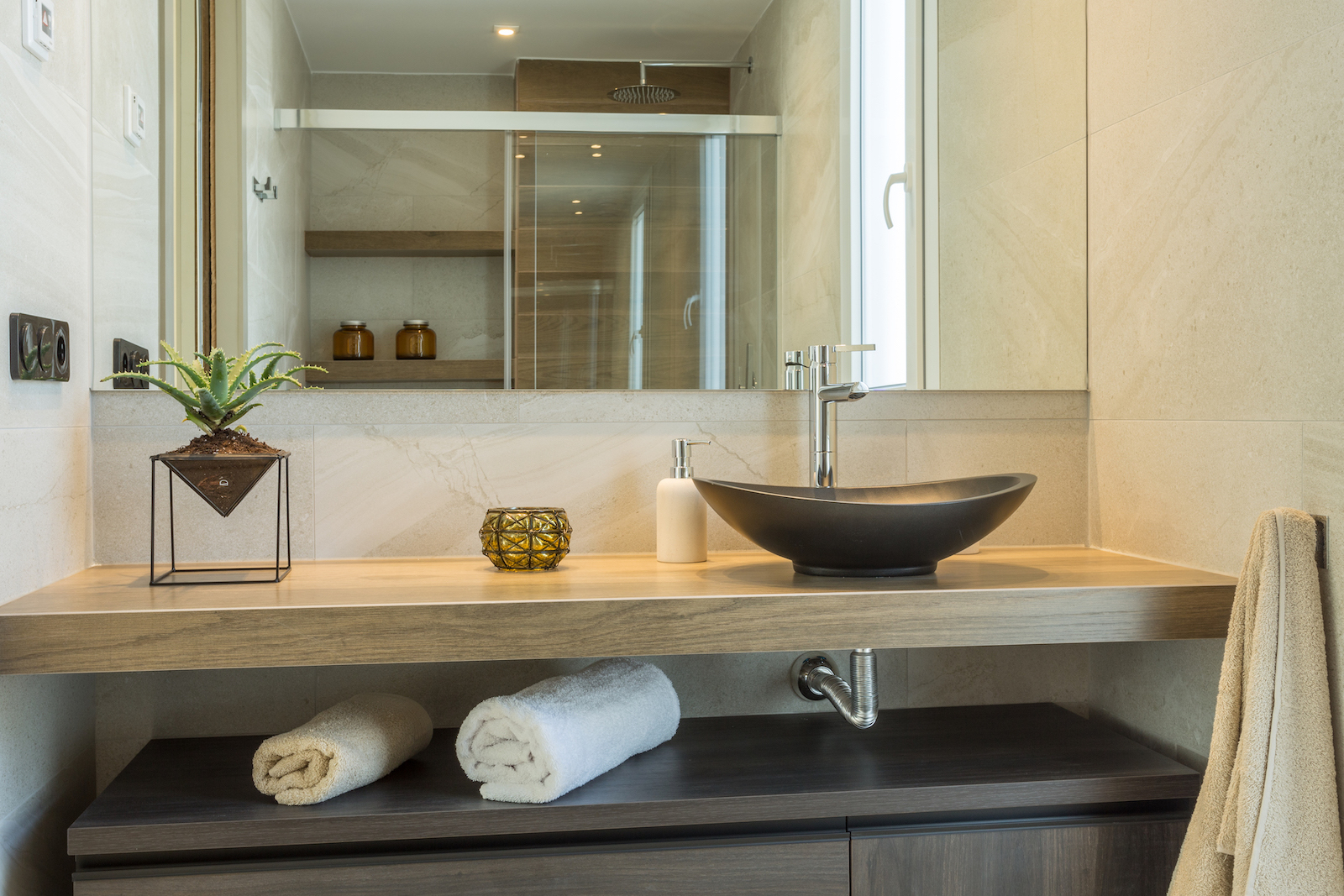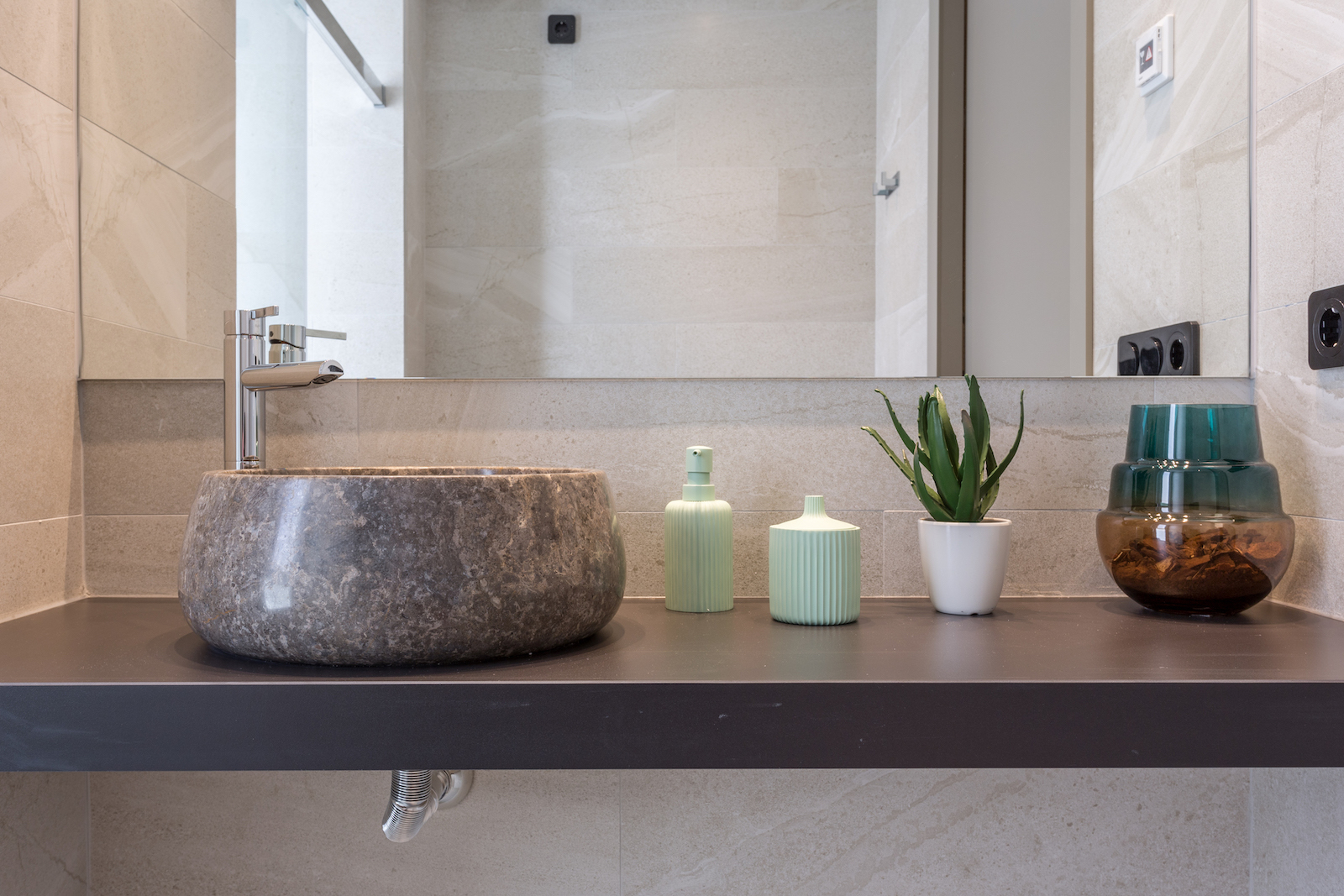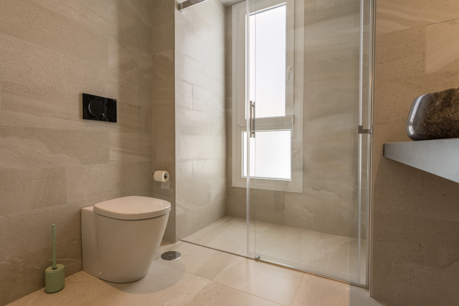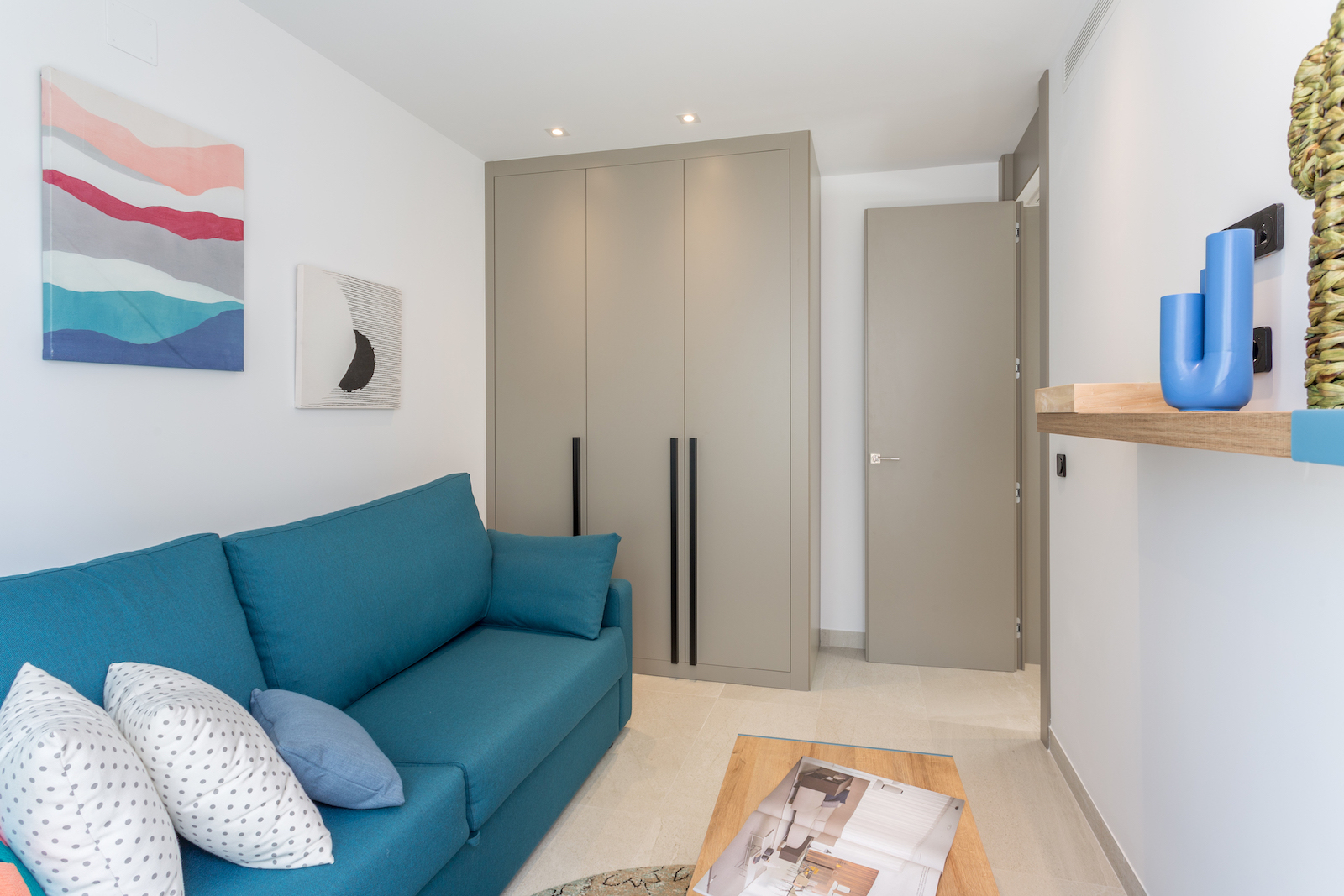 On La Finca Golf you will find this beautiful modern Eua semi-detached villa. The villa offers 3 double bedrooms and 2 bathrooms. Master bedroom with en-suite bathroom. The architecture is modern contemporary style on the exterior, with the interior made with first class materials. The high ceiling windows and big windows towards the terrace gives the spacious living room and open kitchen lots of natural light. The villa has a private parking space. The south facing terrace gives you sun from dusk till dawn. The villa comes with floor heating in the bathrooms, installed A/C system by conducts and whitegoods. The communal swimming pool is located just behind the villa, with a private entrance. La Finca Golf offers one of the most popular 18 hole golf courses on the Costa Blanca, in nice surroundings and breathtaking views towards the surrounding mountains. Apart from the golf course, you will also find a 5-star hotel, with SPA facilities and different restaurants.