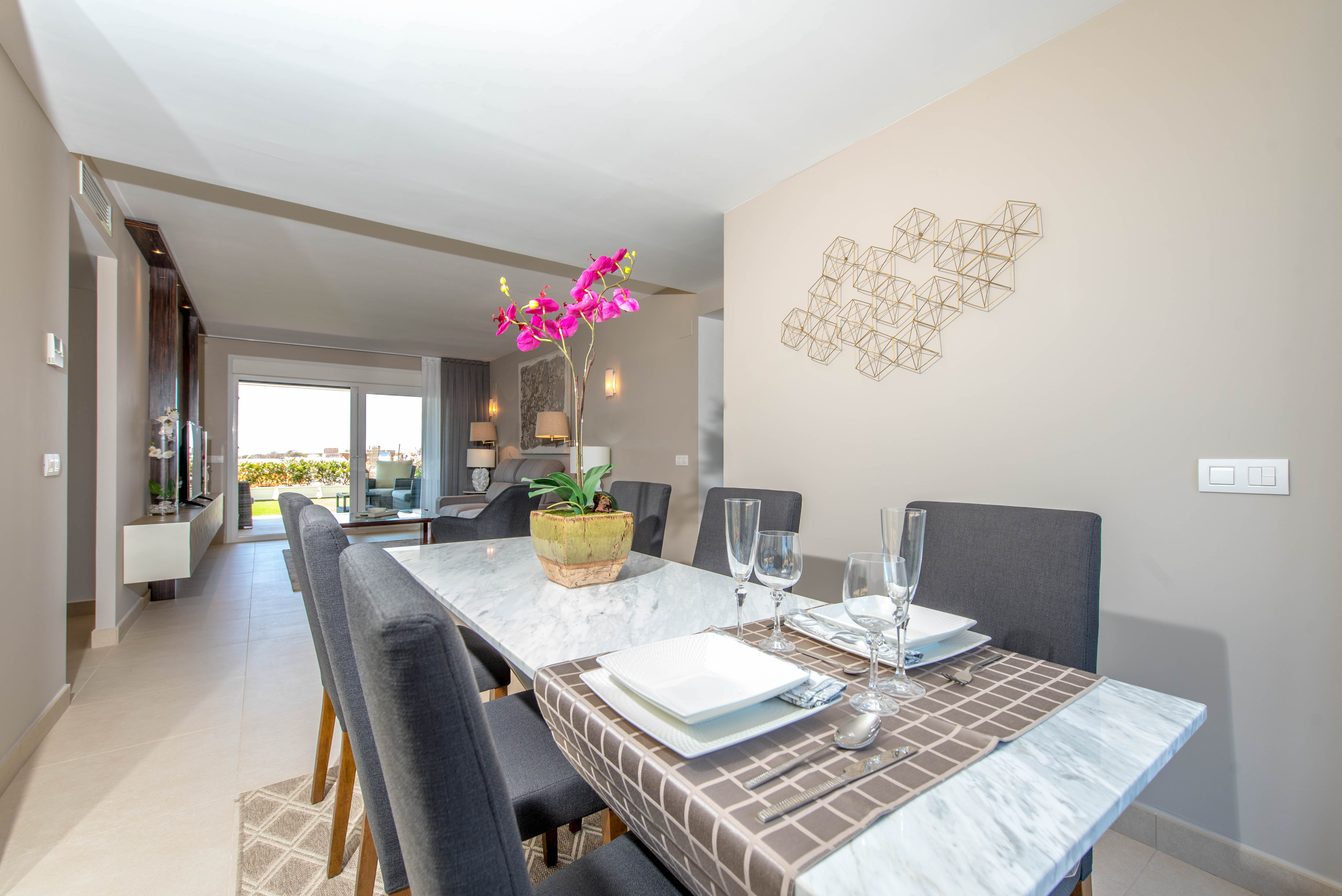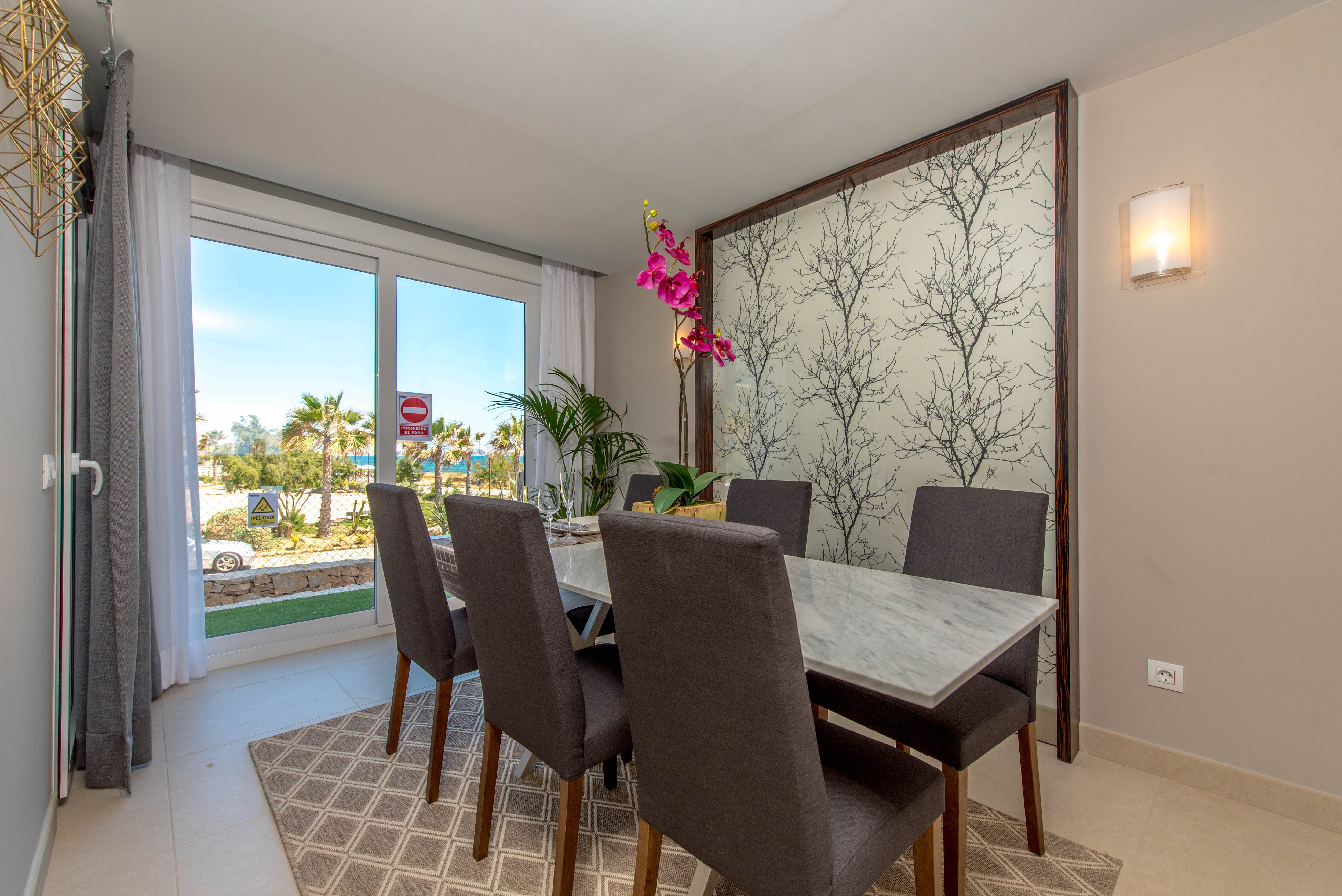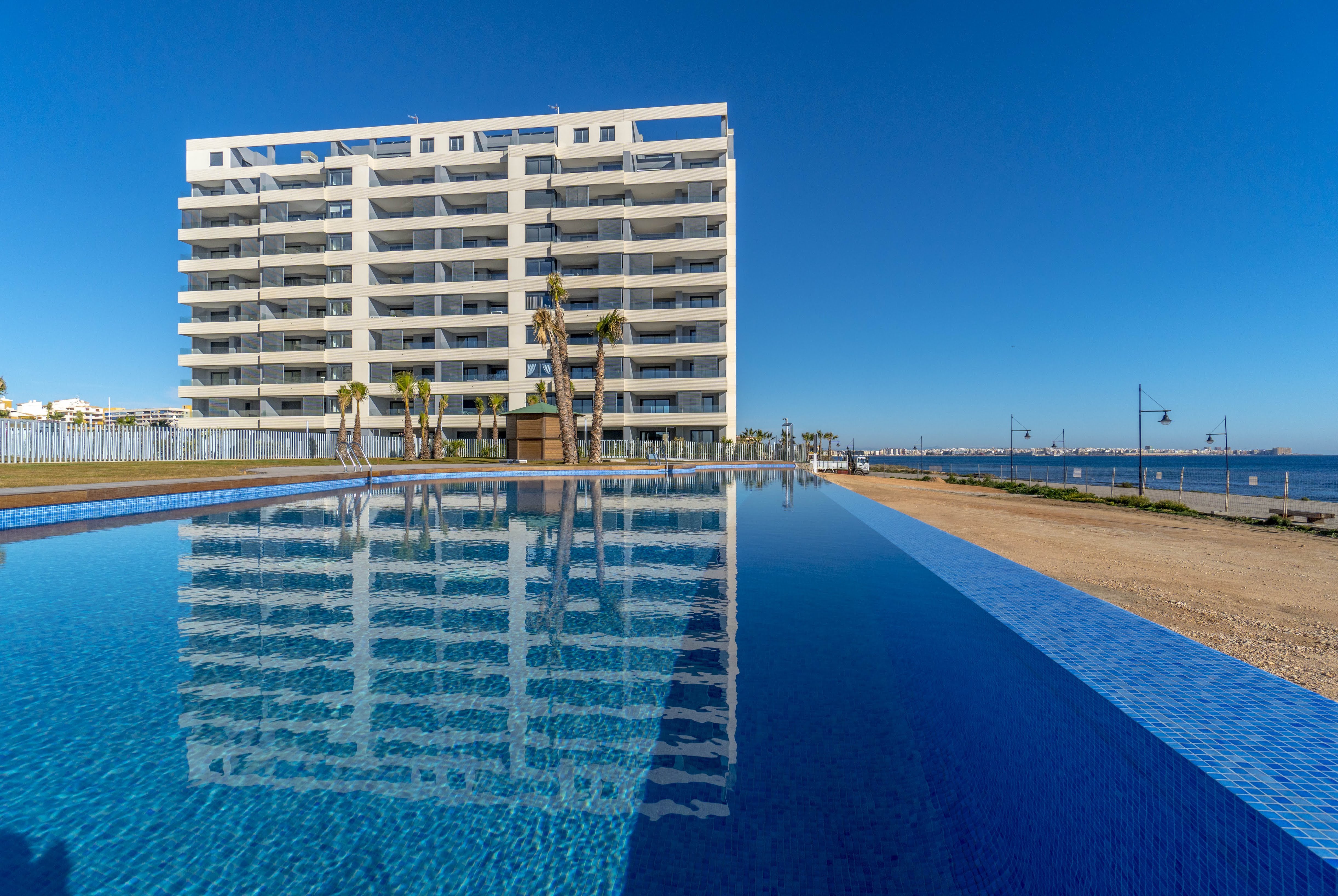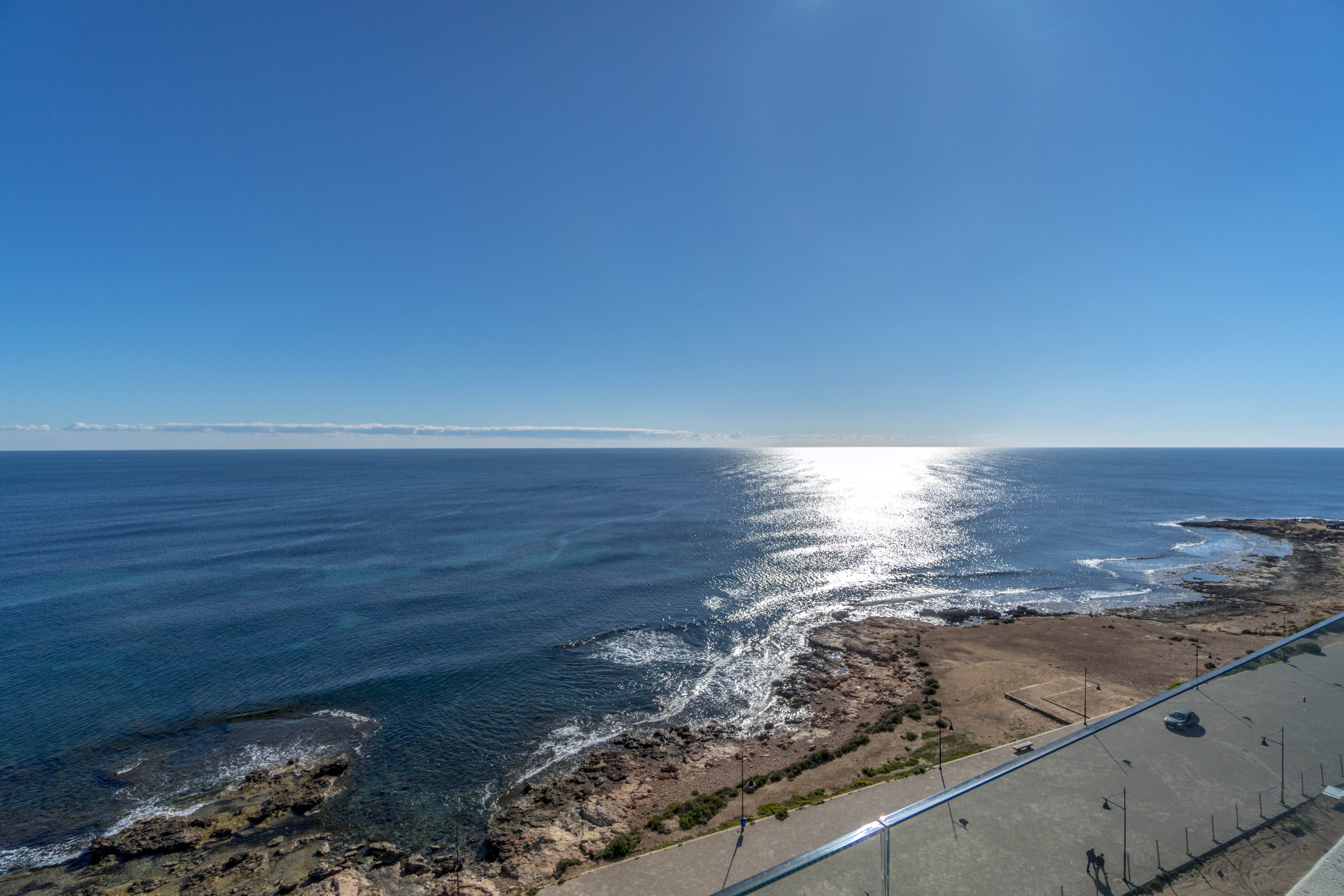 Panorama Mar is a sea front apartment development in Punta Prima, Torrevieja, with spectacular views over the sea and the beach. The residential complex offers 2 and 3 bedroom apartments with 2 bathrooms. All apartments in the first phase are south facing and have good sized terraces and magnificent views over the Mediterranean Sea. The apartments have been designed for comfort and convenience, with excellent qualities and a layout that allows maximum enjoyment of the communal areas of the complex. All units are delivered with an underground parking space and storeroom. Panorama Mar, is a private gated community with closed circuit surveillance. The complex stands out for its ample landscaped areas and complete installations, from which you will be able to enjoy the sun and the sea views; the communal areas boast 3 swimming pools, with one being an infinity pool and a Jacuzzi. The children will be able to play their own paddling pool and playground. The complex also has direct access to the promenade. Punta Prima is only 5 km from Torrevieja and is distinguished by its good communication and health infrastructures, proximity to the Alicante airport and the amount of services available all year round. Only 10 km away we can find the Villamartín, Campoamor, Las Ramblas, Las Colinas and Lo Romero 18-hole golf courses, as well as the La Zenia and Habaneras commercial centres.