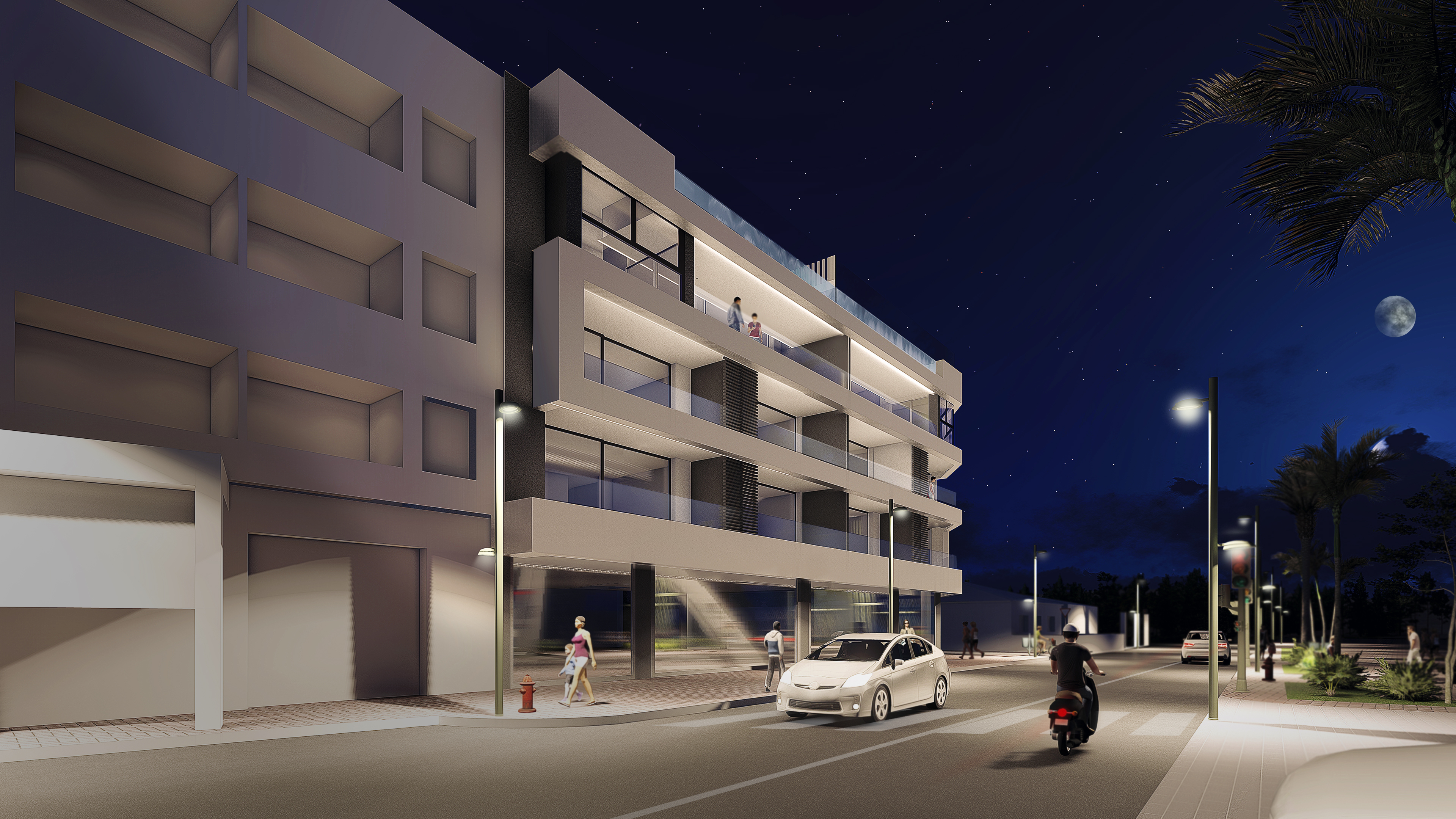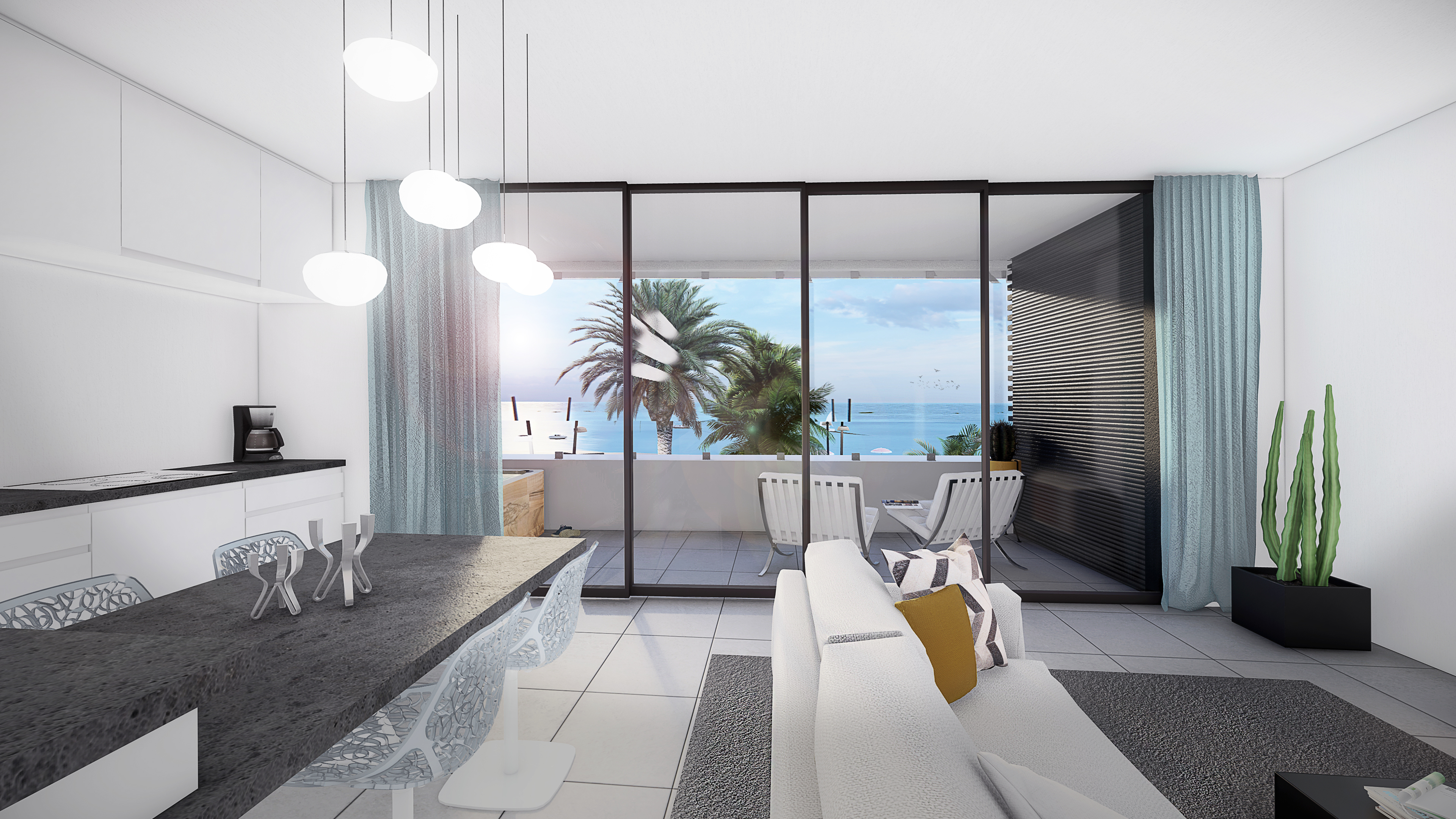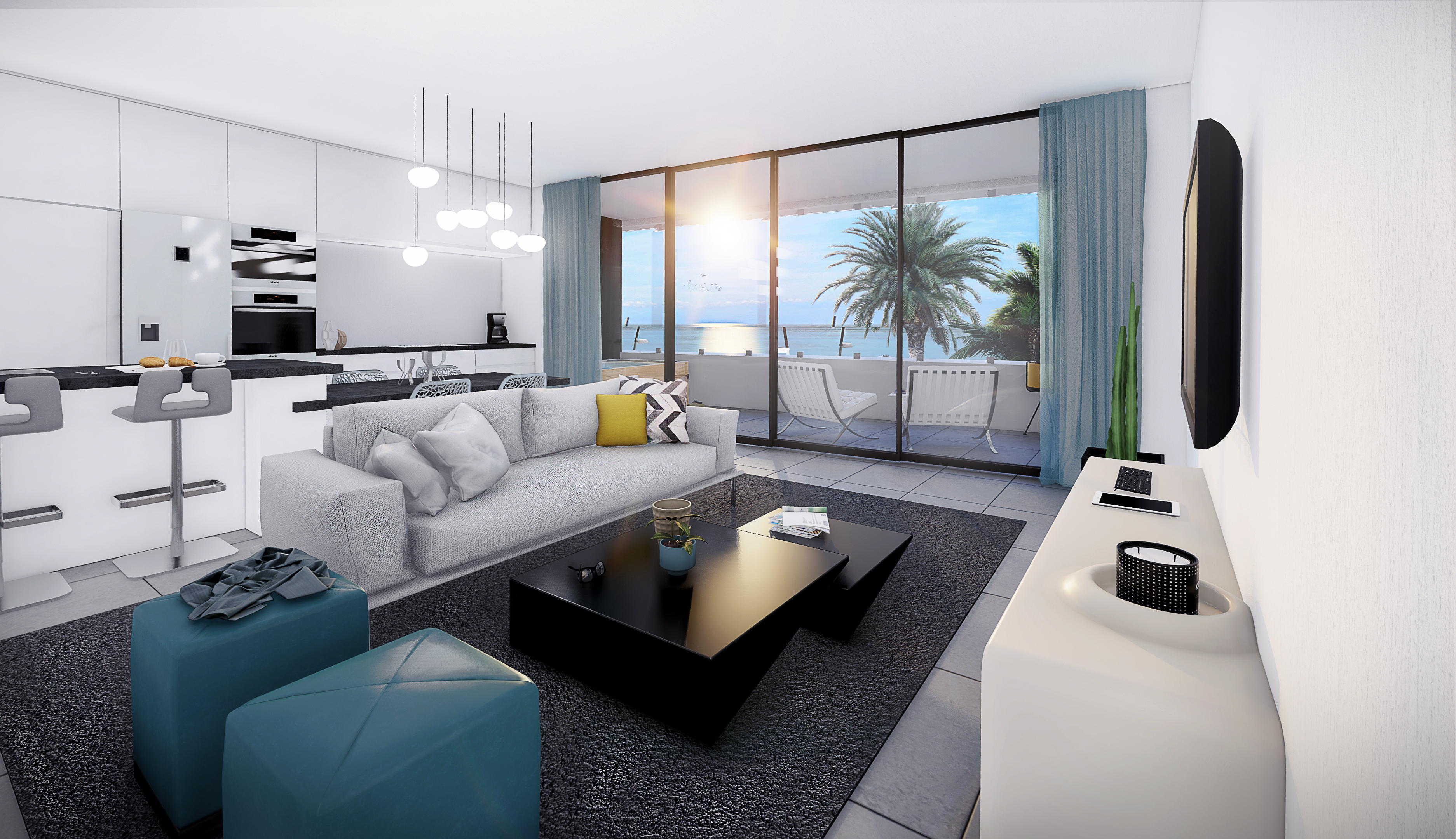Front line to the beaches – One of the best residences in Lo Pagan – here you can choose from either 2 or 3 bedroom layouts, with large front windows looking over the bay.