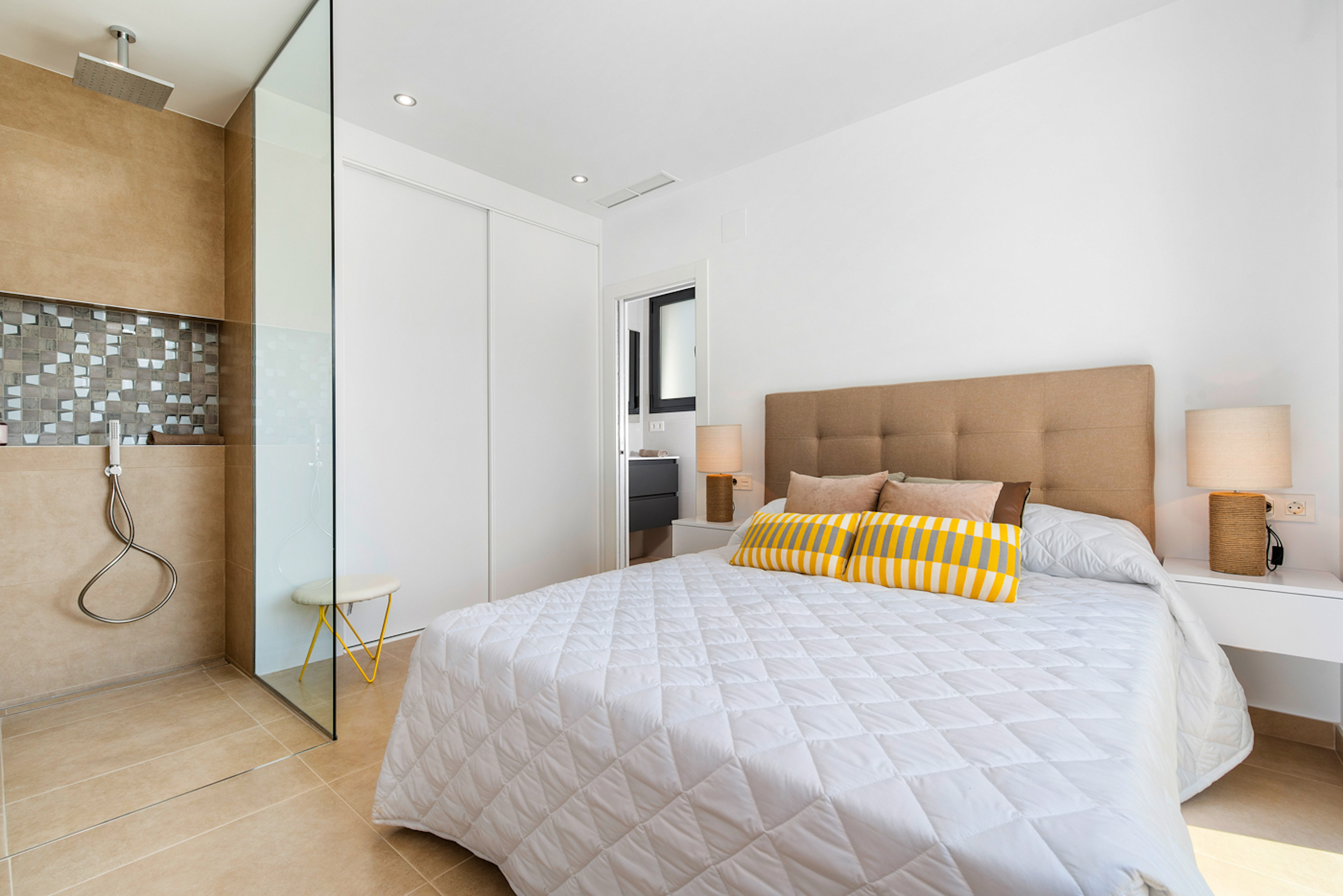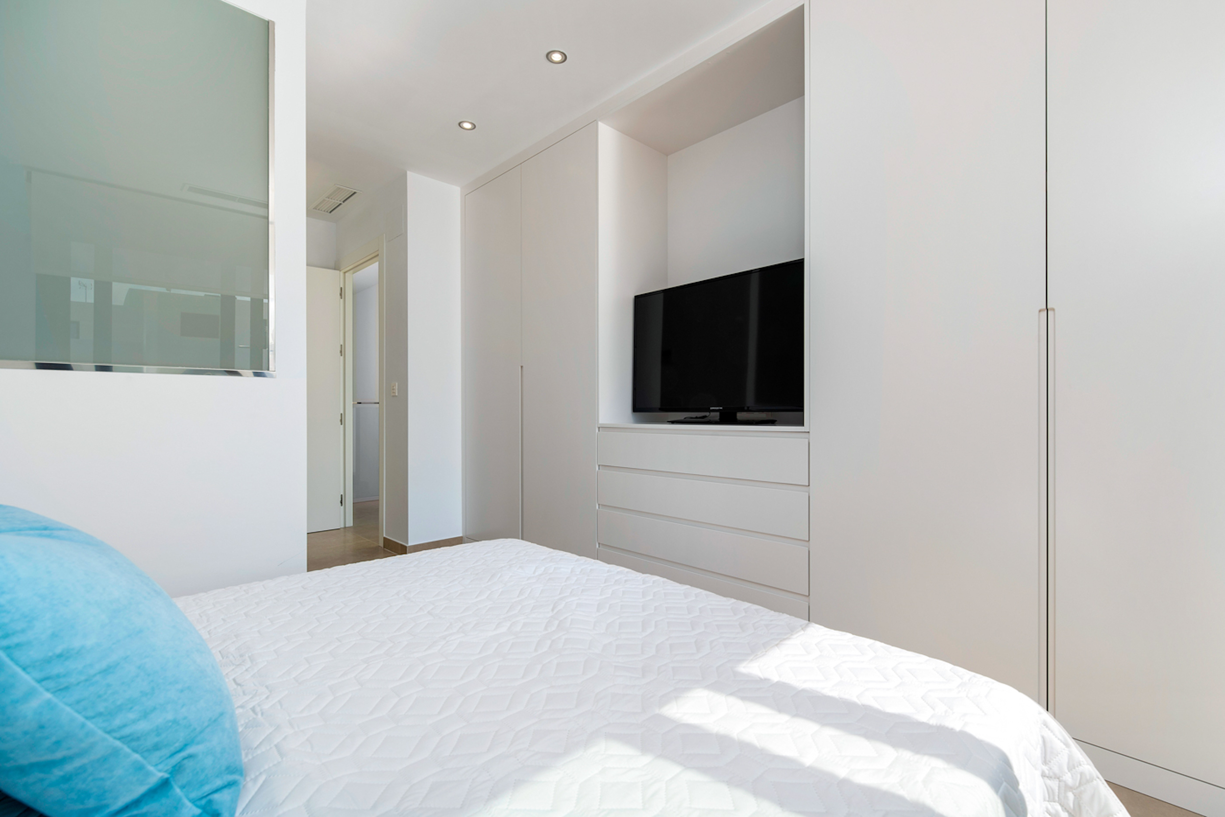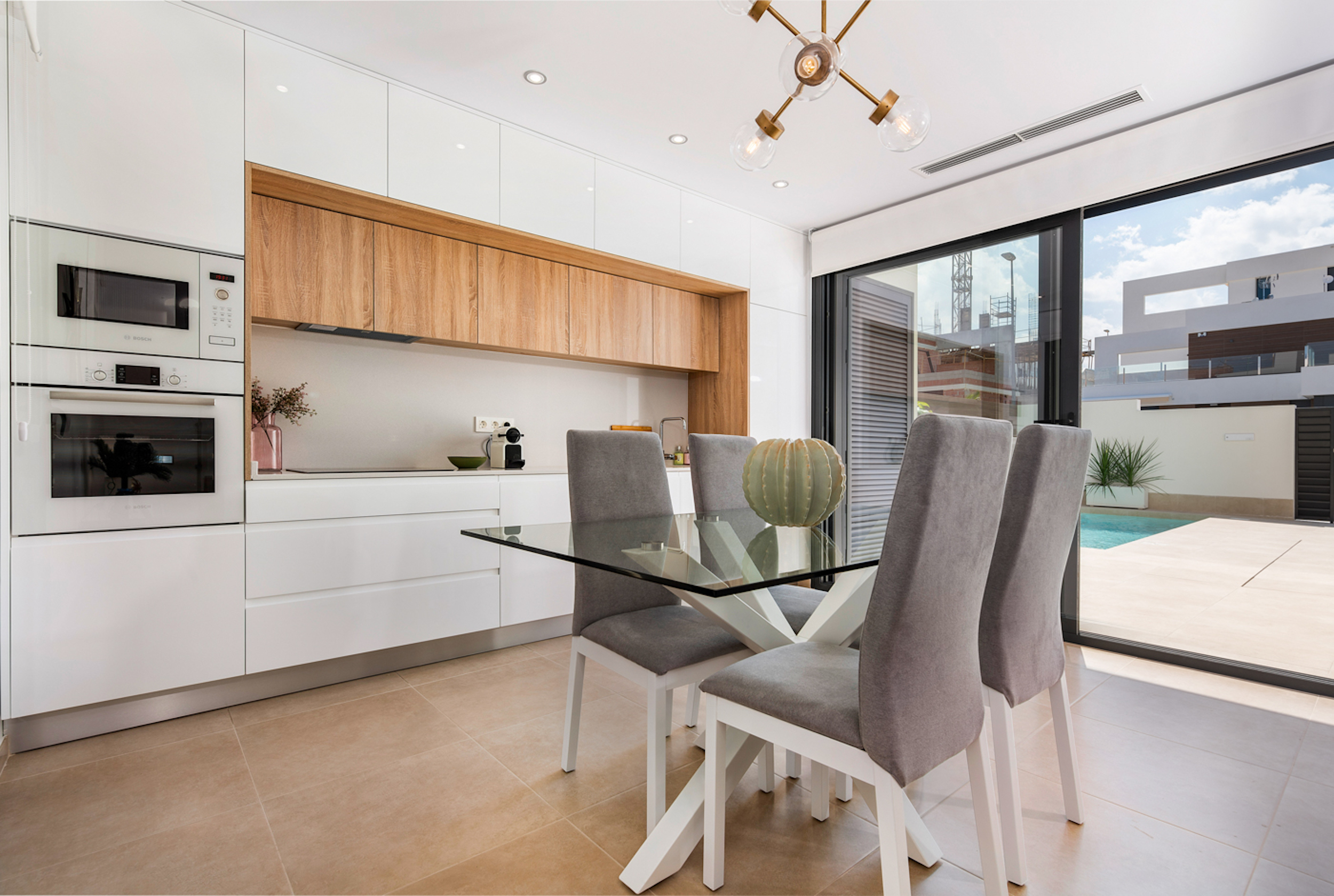 Benijofar is an exceptional area of the Costa Blanca provided with all amenities: 20 minutes away from the airport of Alicante, very close to the beaches of Guardamar and golf courses. The modern style villas consist of a living room, 3 bedrooms (2 of them with bathroom in suite), furnished kitchen and 3 bathrooms. Private terrace and pool, parking area, Mediterranean style garden and two solariums with amazing views.