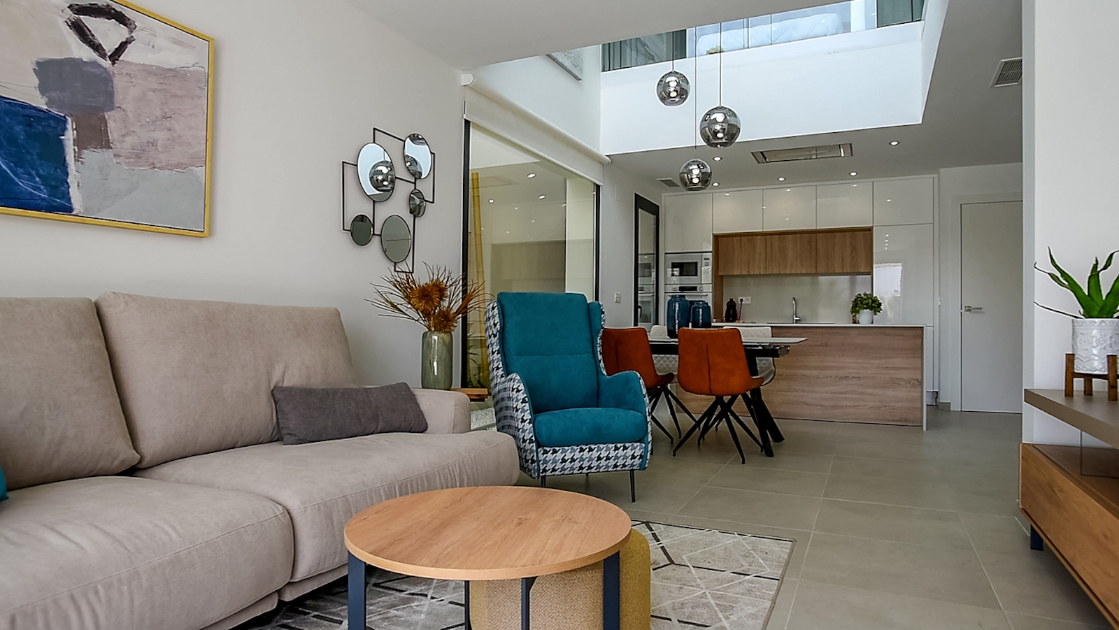 The residential consists of 11 modern style Villas in private plots with terrace, parking area and private pool. They comprise a living room area, fitted kitchen, 3 bedrooms, 2 bathrooms and a double height with great views. All villas have optional solarium and five of them a basement. Carefully designed with high quality materials to satisfy the needs of the most demanding clients.
