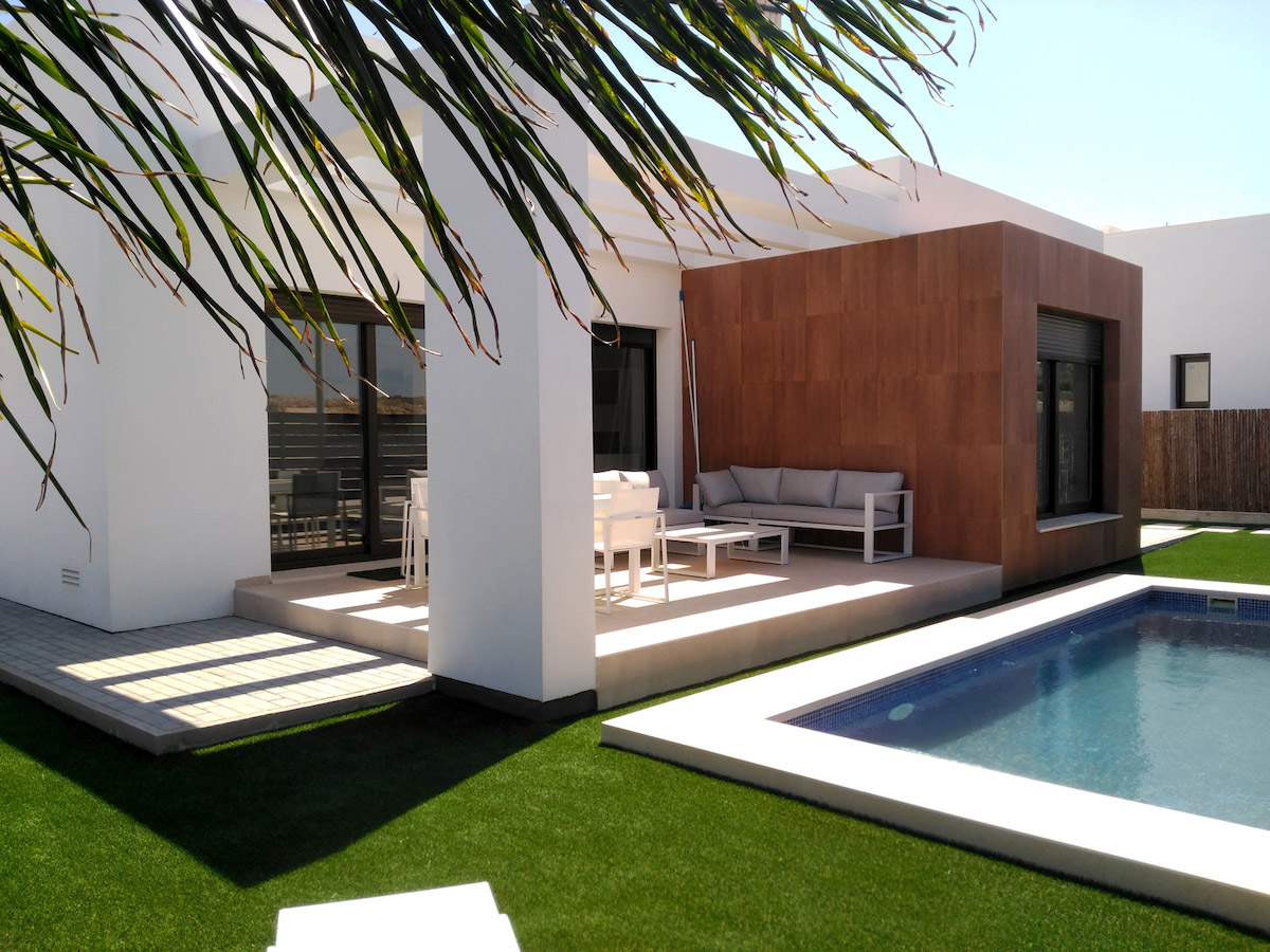 The villa has 3 bedrooms and 2 bathrooms and up to a total of 113 m2 living space, 12 m2 of terrace, Storage room and the possibility of your own private pool and Solarium.