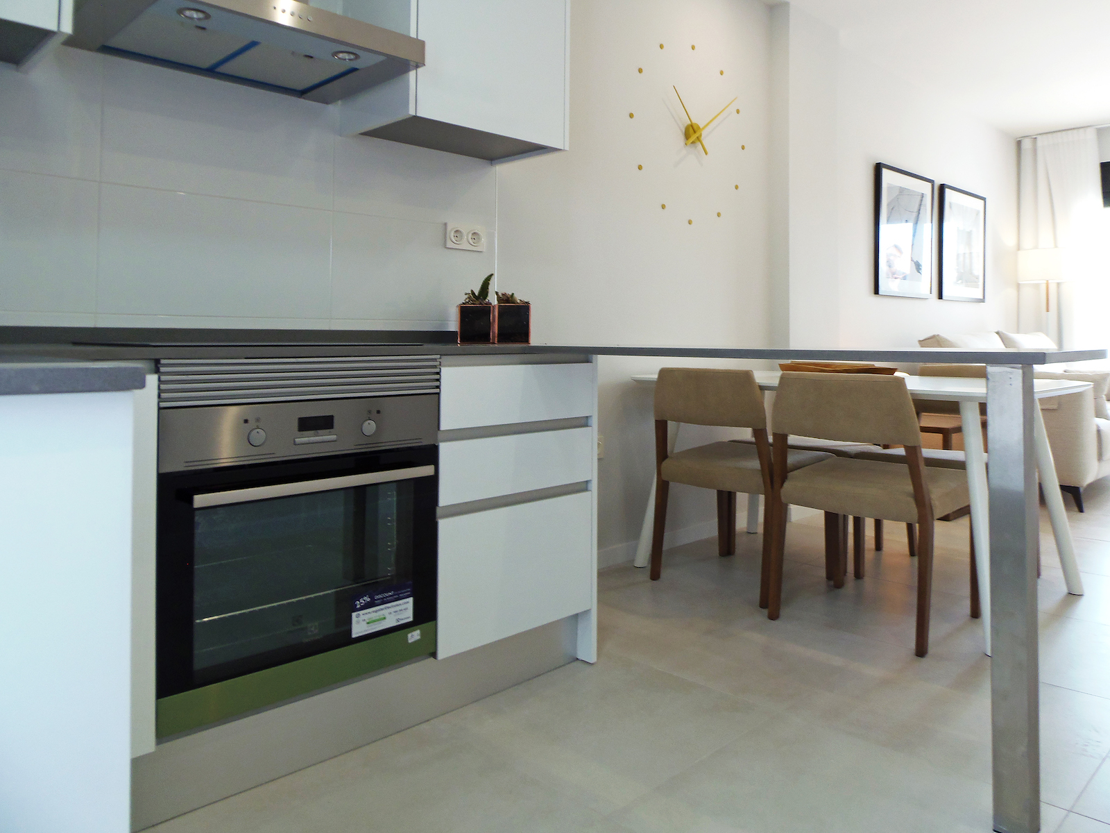 All of them with kitchen equipped with high and low kitchen units, hob, oven and extractor fan. They also have a laundry area and a pre-installation of air conditioning. Possibility of private parking underground 12.000€.