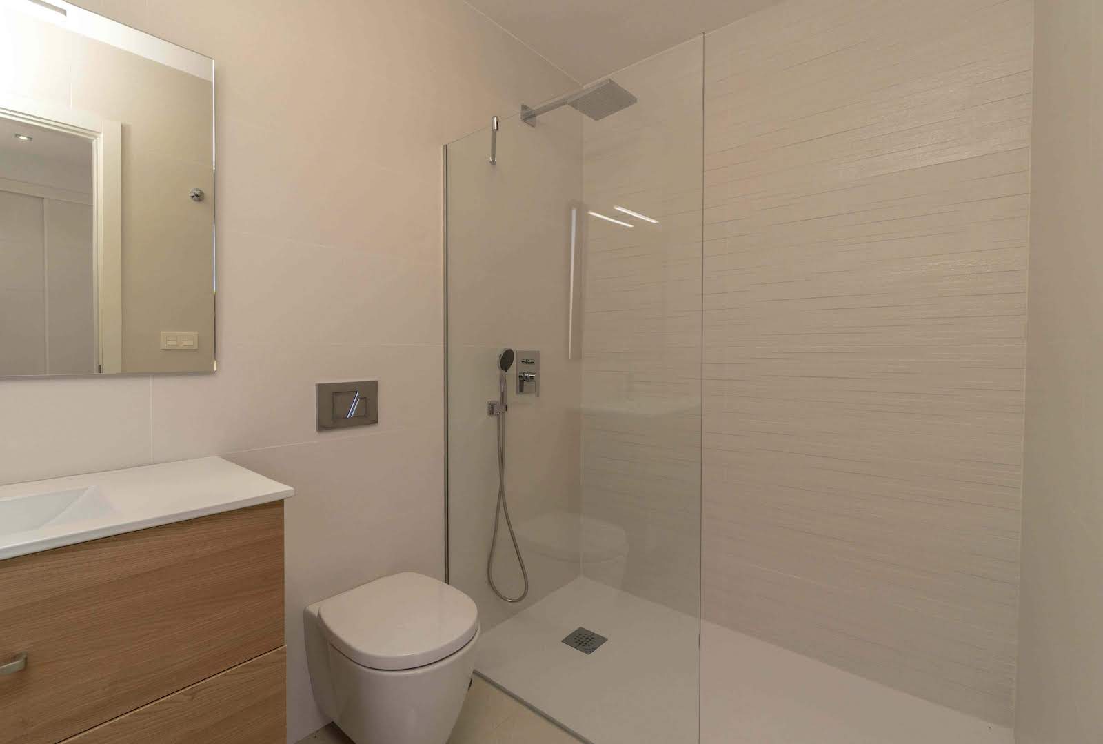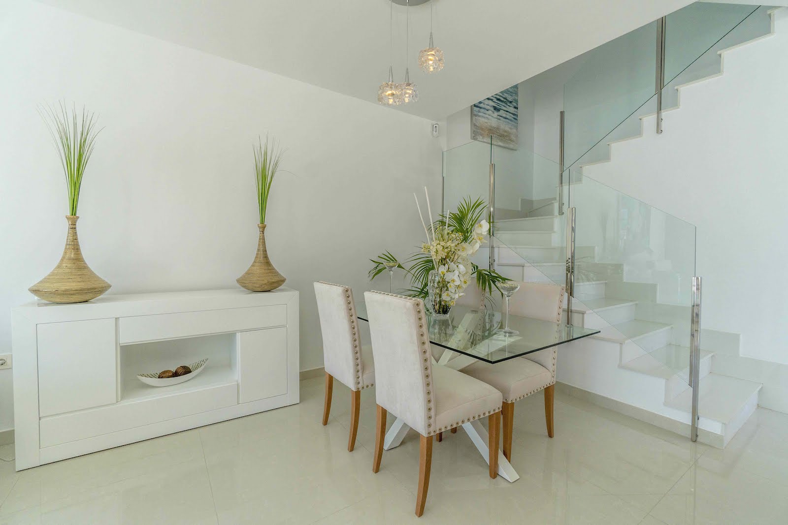 On the outside, these stunning villas feature a private garden with a porch, private parking, an outdoor shower, and a private swimming pool with a waterfall fixed to a gorgeous stone wall. There's also a spacious roof solarium for enjoying the clear sea views whilst soaking up the Spanish sunshine.