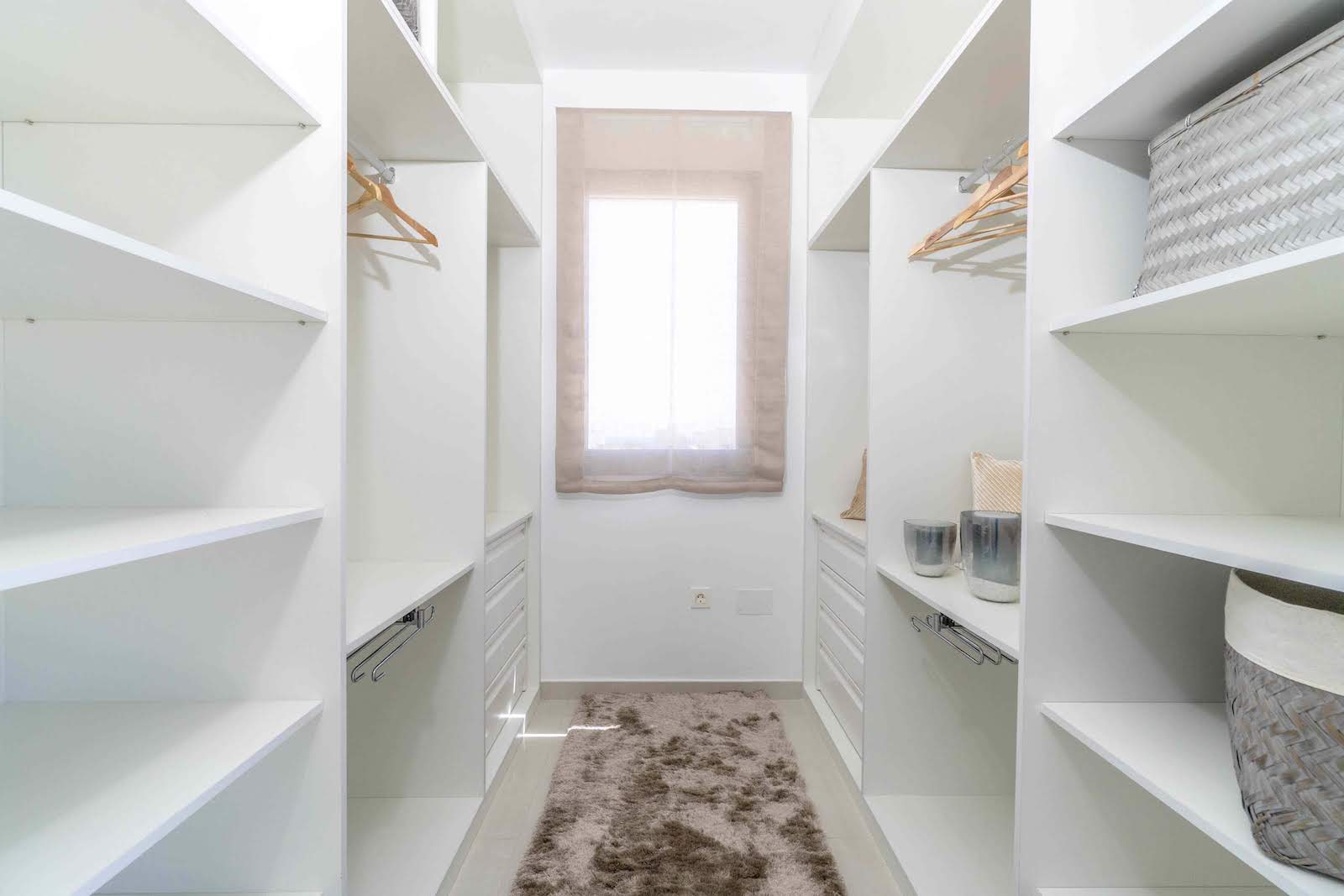 The first-floor offers two bedrooms with en-suite bathrooms. The master bedroom boasts a large dressing room installed with plenty of shelves, drawers, and clothing racks. This bedroom also offers access to a spacious balcony overlooking the garden and pool.