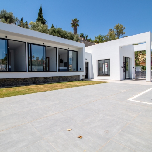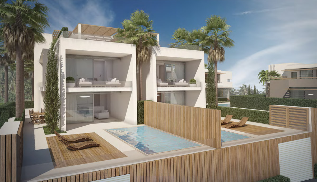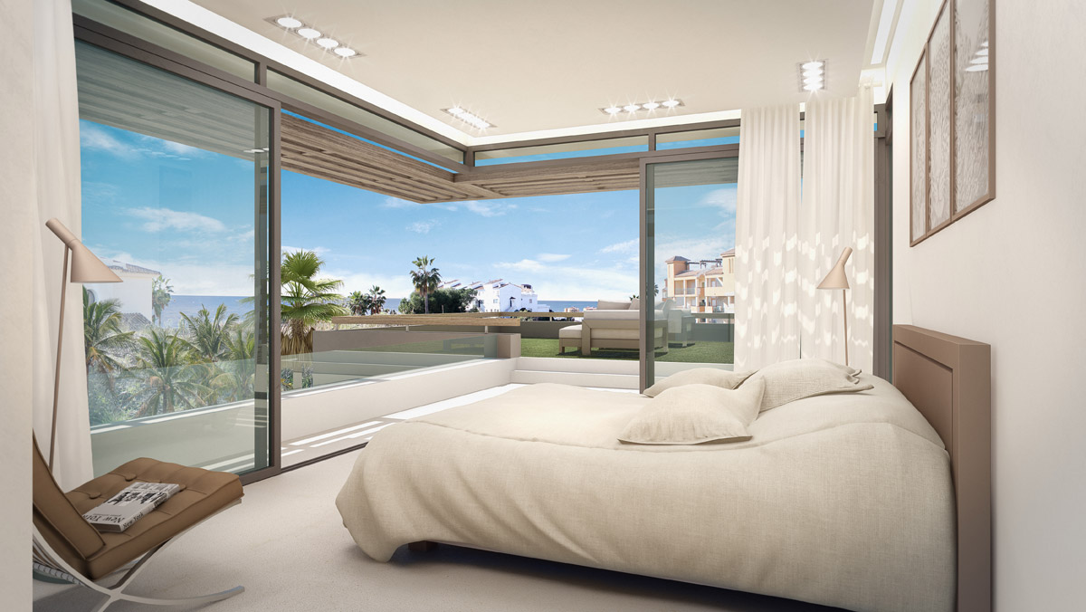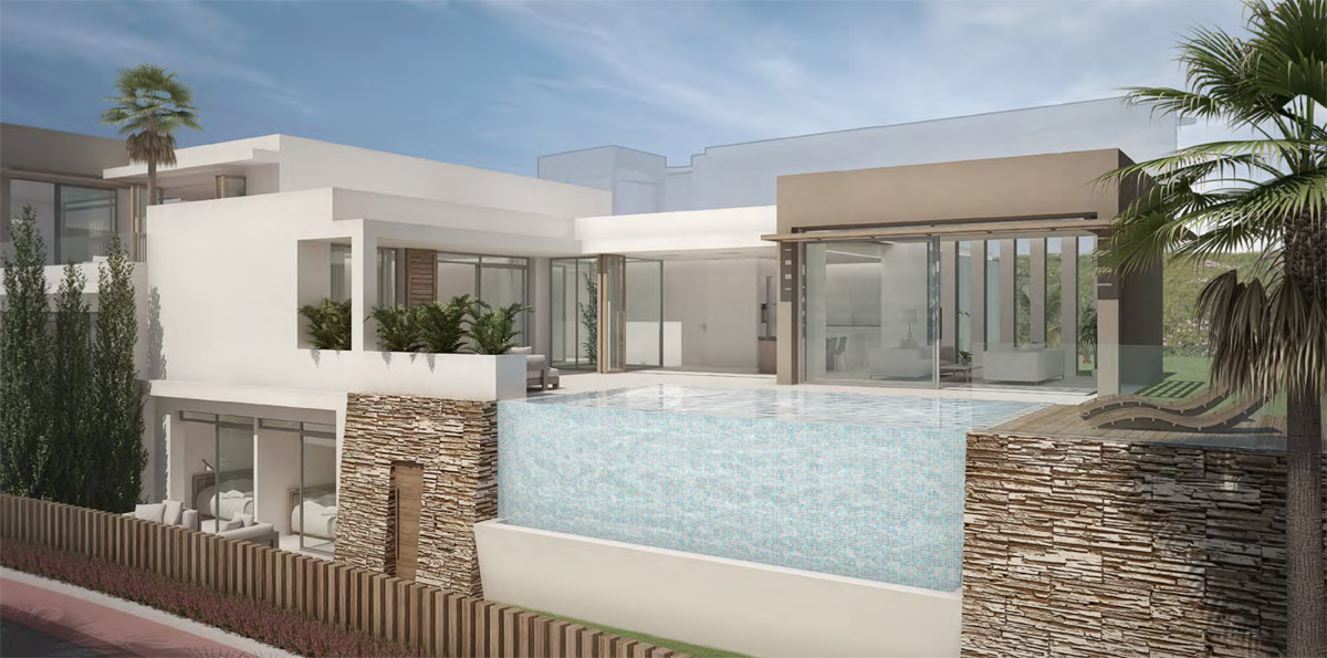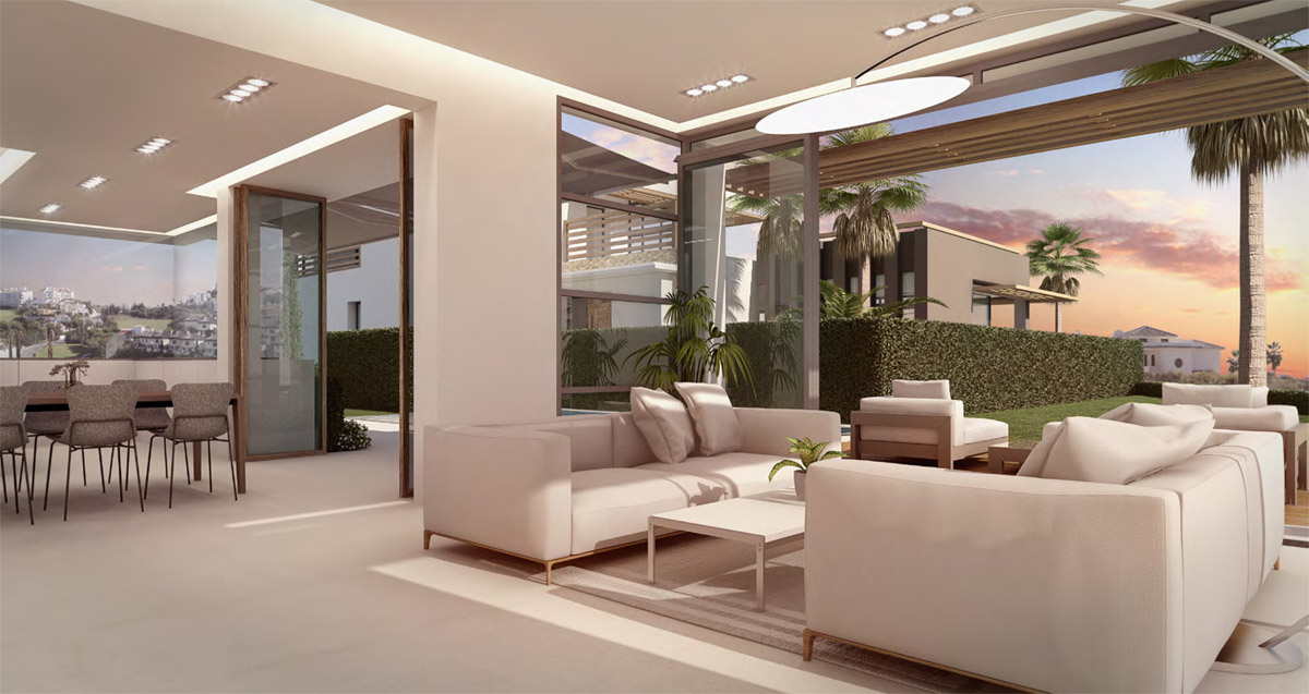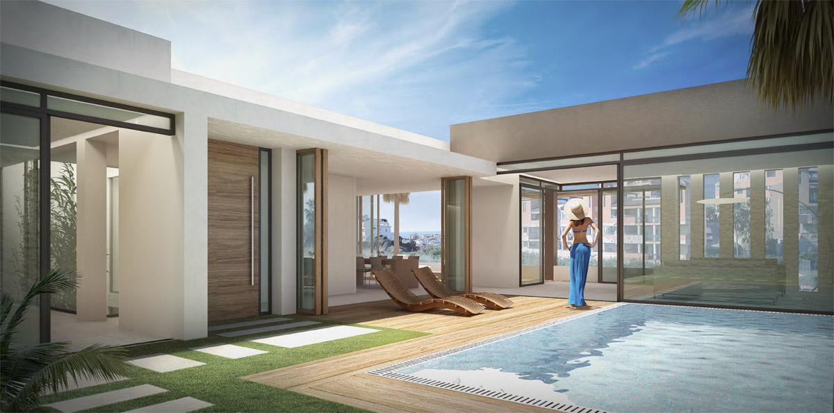 We have designed our villas to offer only the best in luxury, comfort and modern design. Each villa is developed around large expanses of glass windows, sliding and folding glass doors to seamlessly connect the indoor and outdoor areas. The villas have tailored gardens and terraces with private pools and water features. Each bedroom with en-suite bathroom, modern kitchens with pantry, porcelain floors, wall tiles and much more. Riviera del Sol sits on the Costa del Sol in Southern Spain midway between Marbella and Fuengirola. Riviera del Sol is situated only a few minutes from the AP7 motorway access, and the national coast road the A7 (formerly the N-340), allowing easy access to Malaga airport in 25 minutes. Riviera del Sol is a mixed residential and holiday area enjoying all the facilities and services needed to enjoy life comfortably. Banks, restaurants, shops, supermarkets, chemists and a health centre located in the neighbourhood. The number two and three holes of the Miraflores golf club are literally a wedge away. A short hop in the car eastward and you find La Cala village, Miramar shopping mall, Fuengirola town centre and the city of Malaga. Go west and you will discover exclusive beach clubs, La Cañada shopping mall, Marbella town centre and Puerto Banus. A daytrip into the country takes you to breathtaking Ronda (a favourite of Orson Wells and Ernest Hemingway), Seville, Granada and even to Sierra Nevada’s picturesque ski resort Monachil. The coast is also a paradise for anyone who loves outdoor activities with beautiful mountain ranges for trails and hiking, on and off road bicycling, all sorts of water sports, tennis, not least more than 70 golf courses to choose from, and much, much more. We are building twelve exclusive design villas with private pools only a short walk from the beach. The BlueSky Riviera residential concept is a gated community with three and four bedroom modern luxury design villas. 5 SkyPlus Villas - four beds, full basement and double garage 5 SkyEasyliving Villas - three beds, parking for two cars 2 SkyHigh Villas - three beds, two car garage The villas have been positioned carefully on the plot to ensure extensive views from both indoor and outdoor areas. At the same time the design and direction of the villas gives good private spaces on terraces and pool areas. All villas have spacious terraces with private pools and sub tropical garden features.